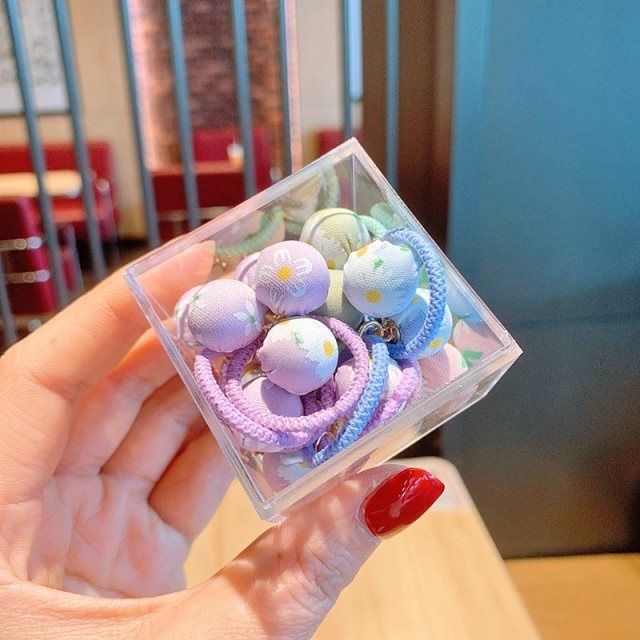 • 6호 핑크 블루 옐로우 작은 꽃무늬 고무줄 하드 박스 10개 세트