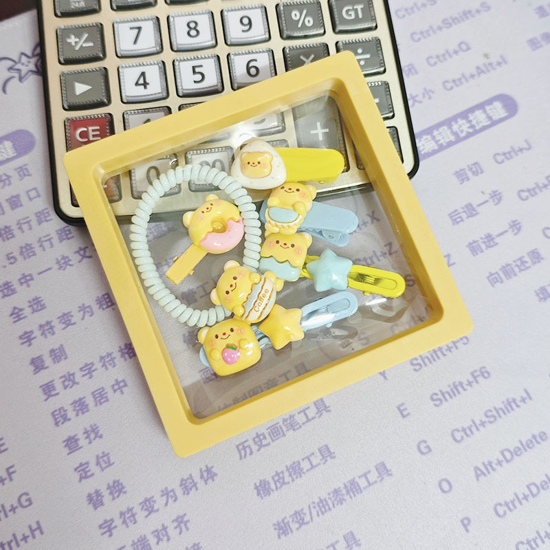 • 카툰 큐브 고양이 쿠키 헤어핀/머리끈 6종 세트 [케이스 포장]