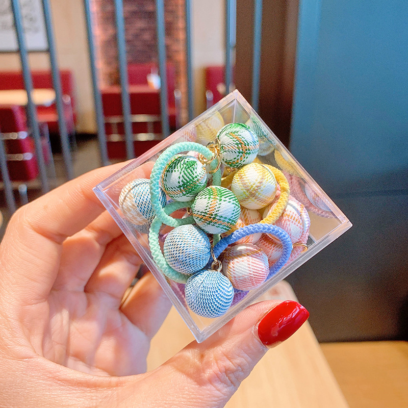 • 4호 그린, 핑크 작은 체크무늬 고무줄 하드박스 10개 세트