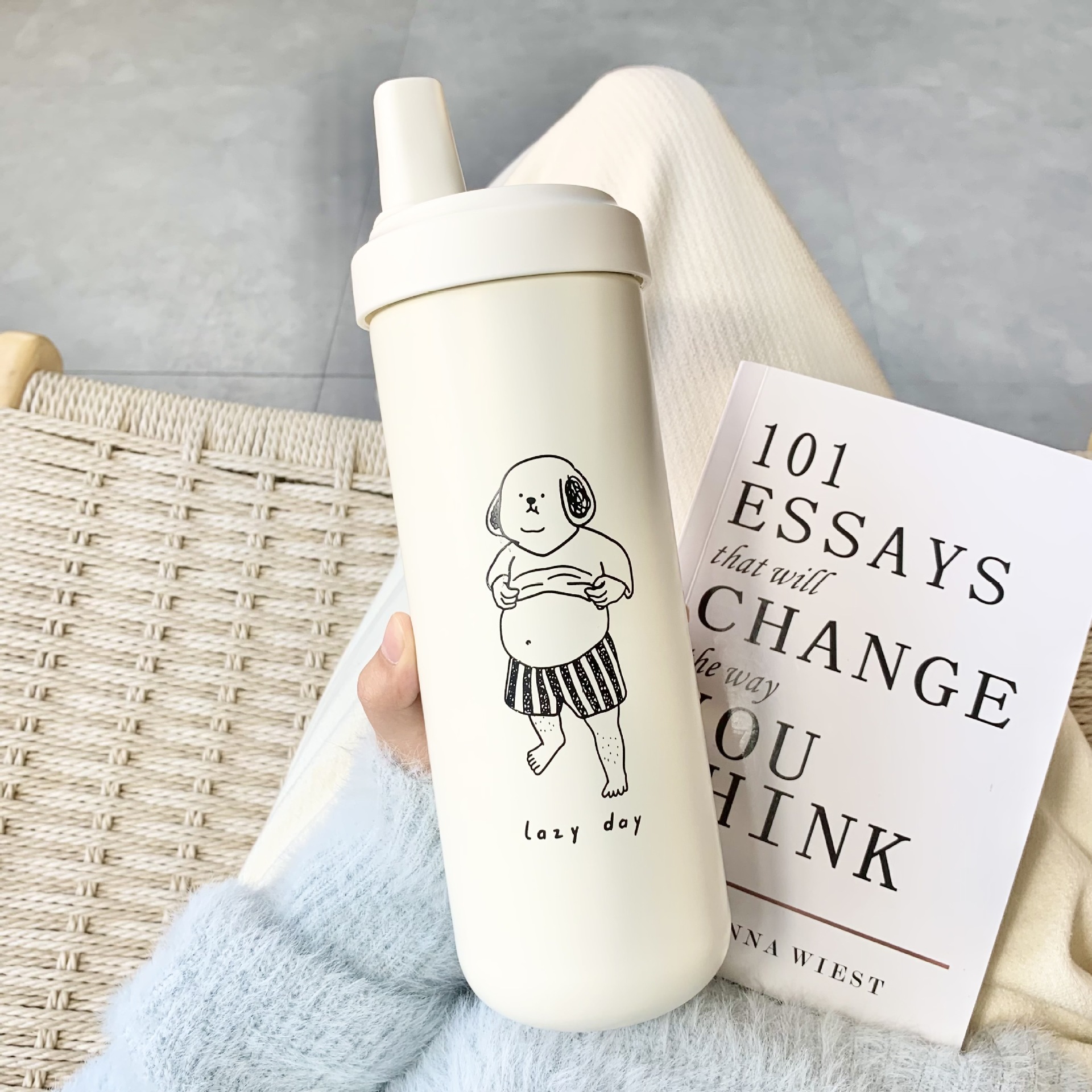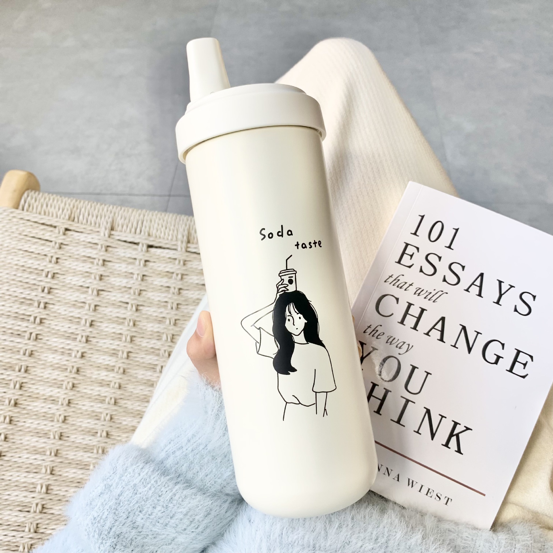 우유 차 보온병 750ml 개인화 된 커피 소녀 컵 두꺼운 짚 흡입 거품 차 컵
