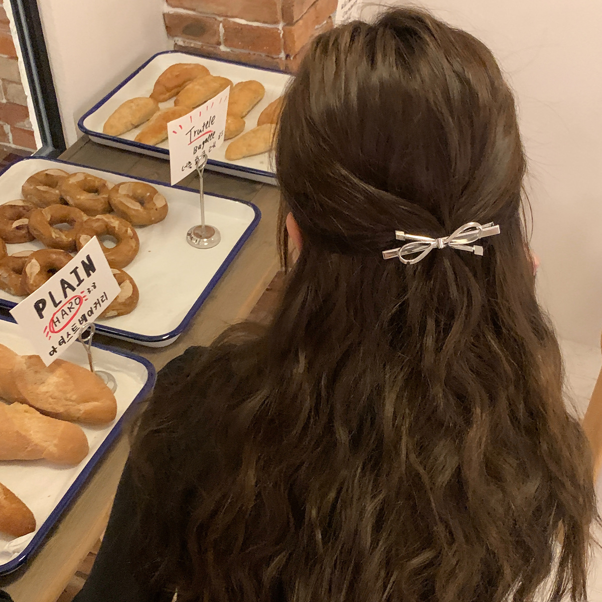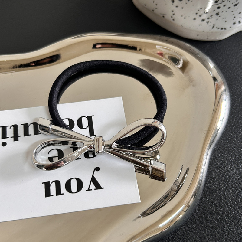 Ins 간단한 활 머리핀 헤어밴드 사이드 뱅 클립 우아한 헤어 로프 여성 고무 밴드 높은 포니 테일 헤드 로프스토어 가기