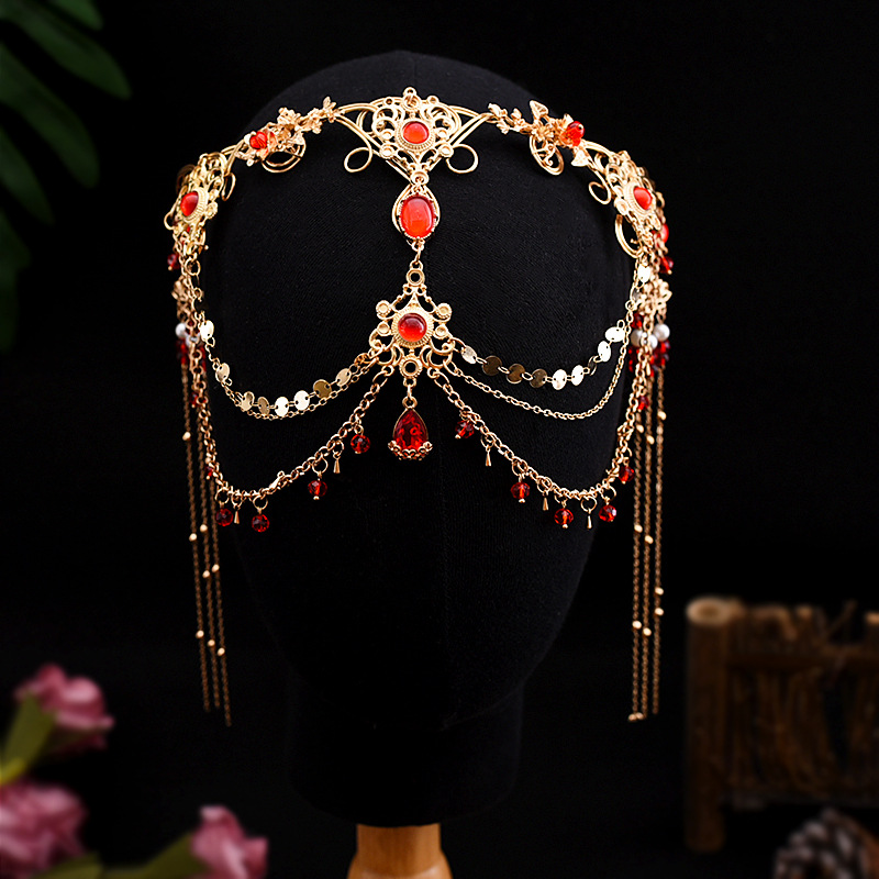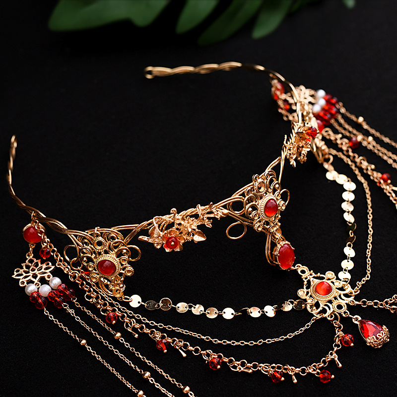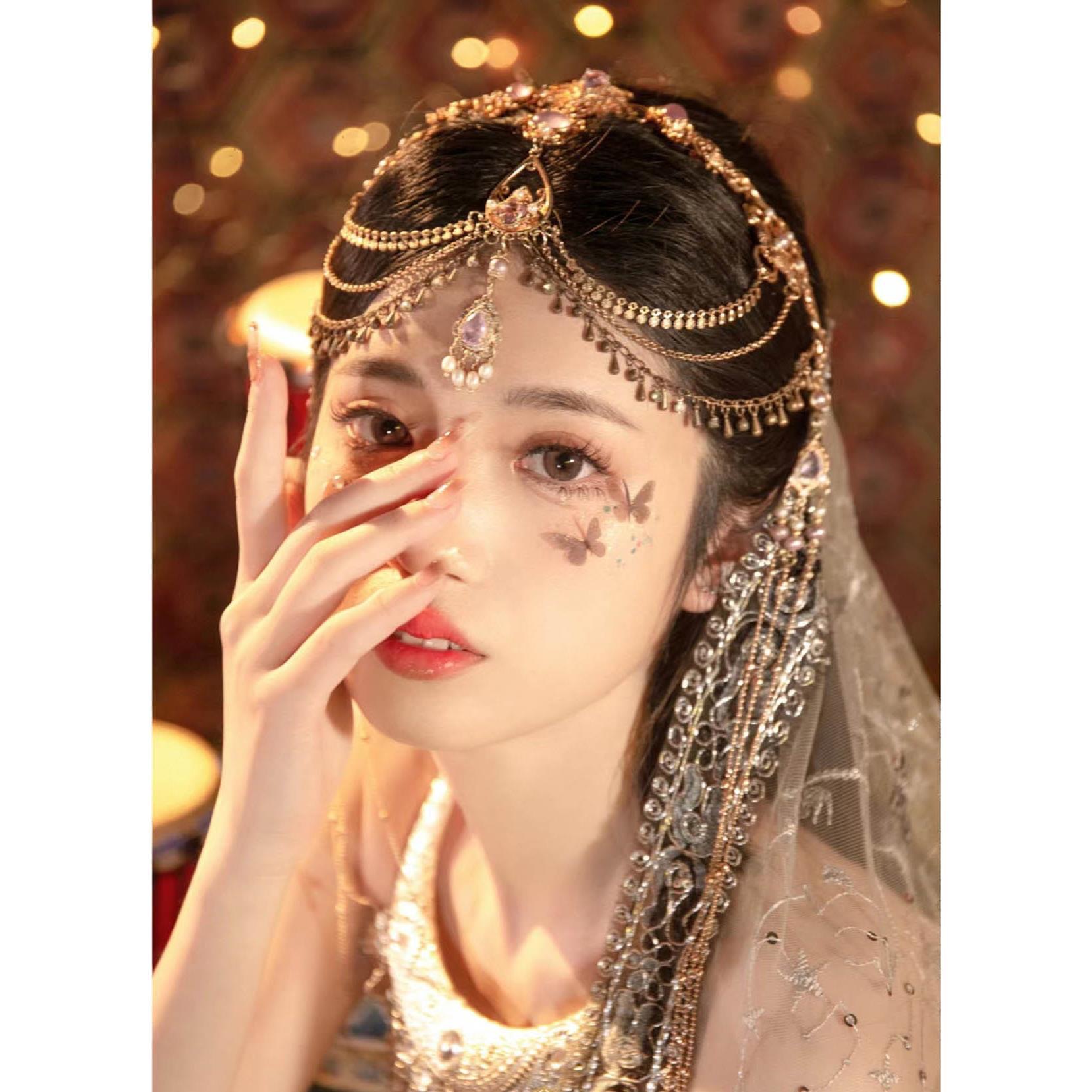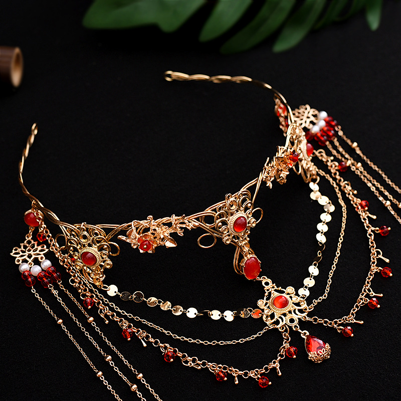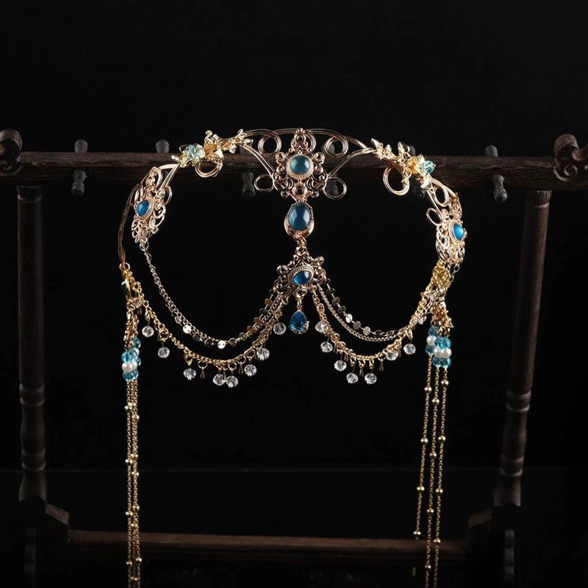 서양 이국적인 스타일 둔황 헤어 밴드 고대 의상 요정 스타일 술 눈썹 펜던트 골동품 한푸 소수 민족 신부 머리 장식
