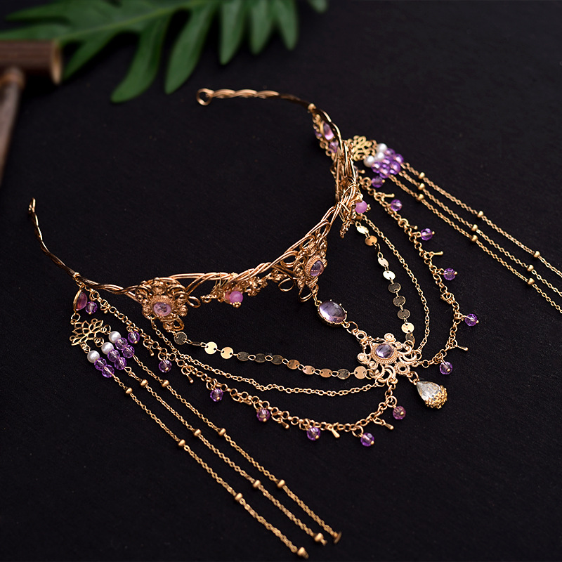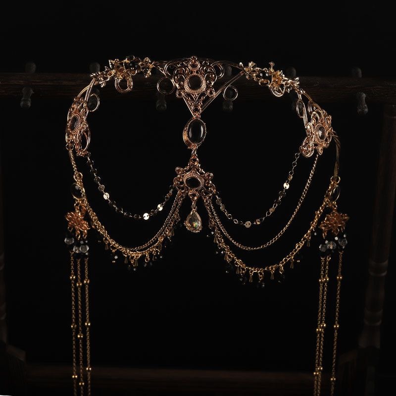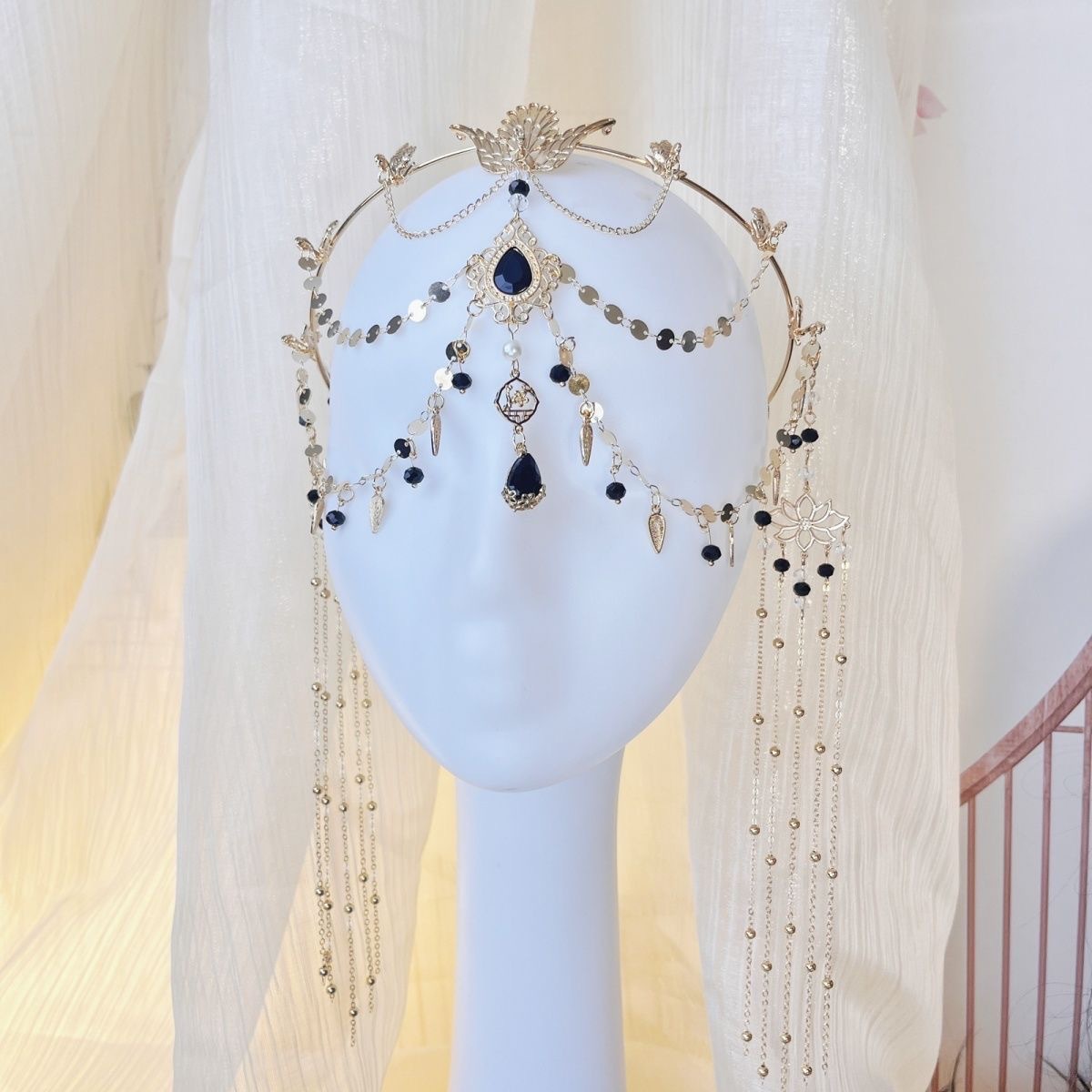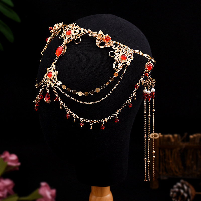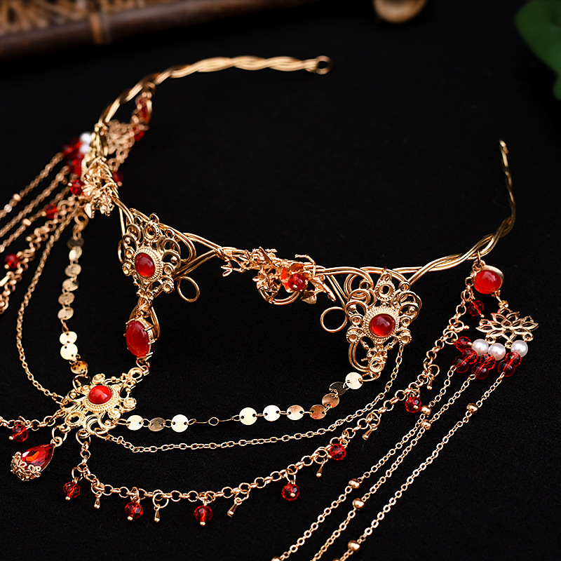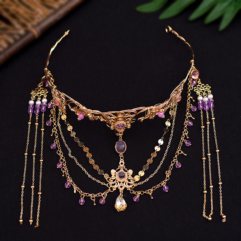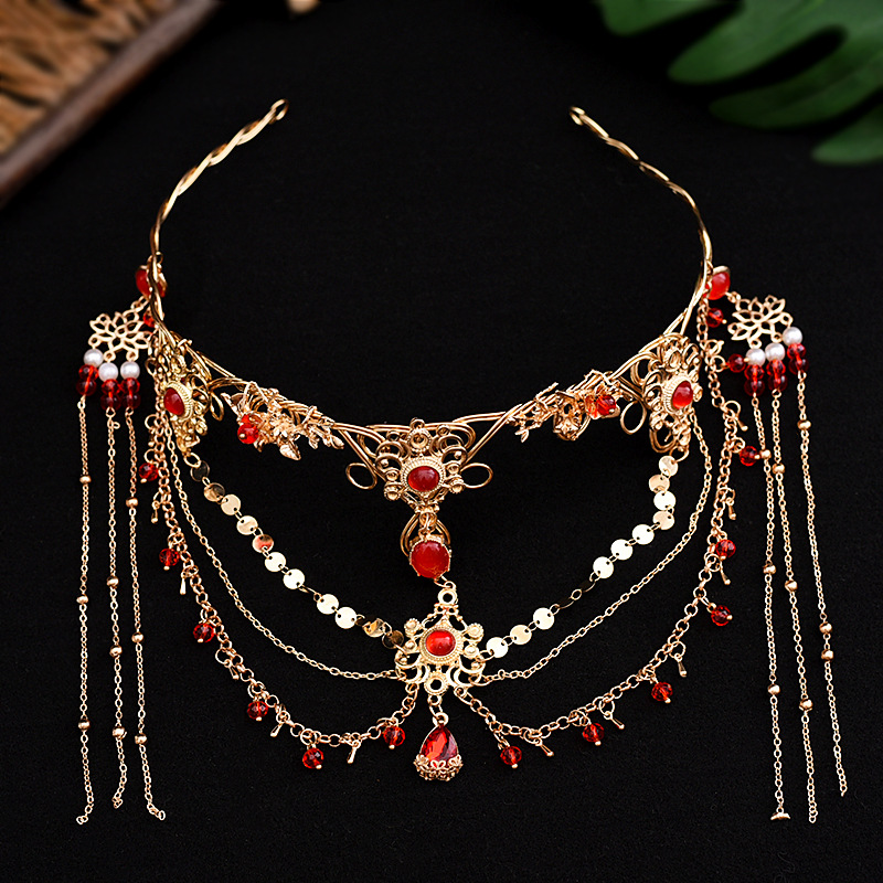 서양 이국적인 스타일 둔황 헤어 밴드 고대 의상 요정 스타일 술 눈썹 펜던트 골동품 한푸 소수 민족 신부 머리 장식