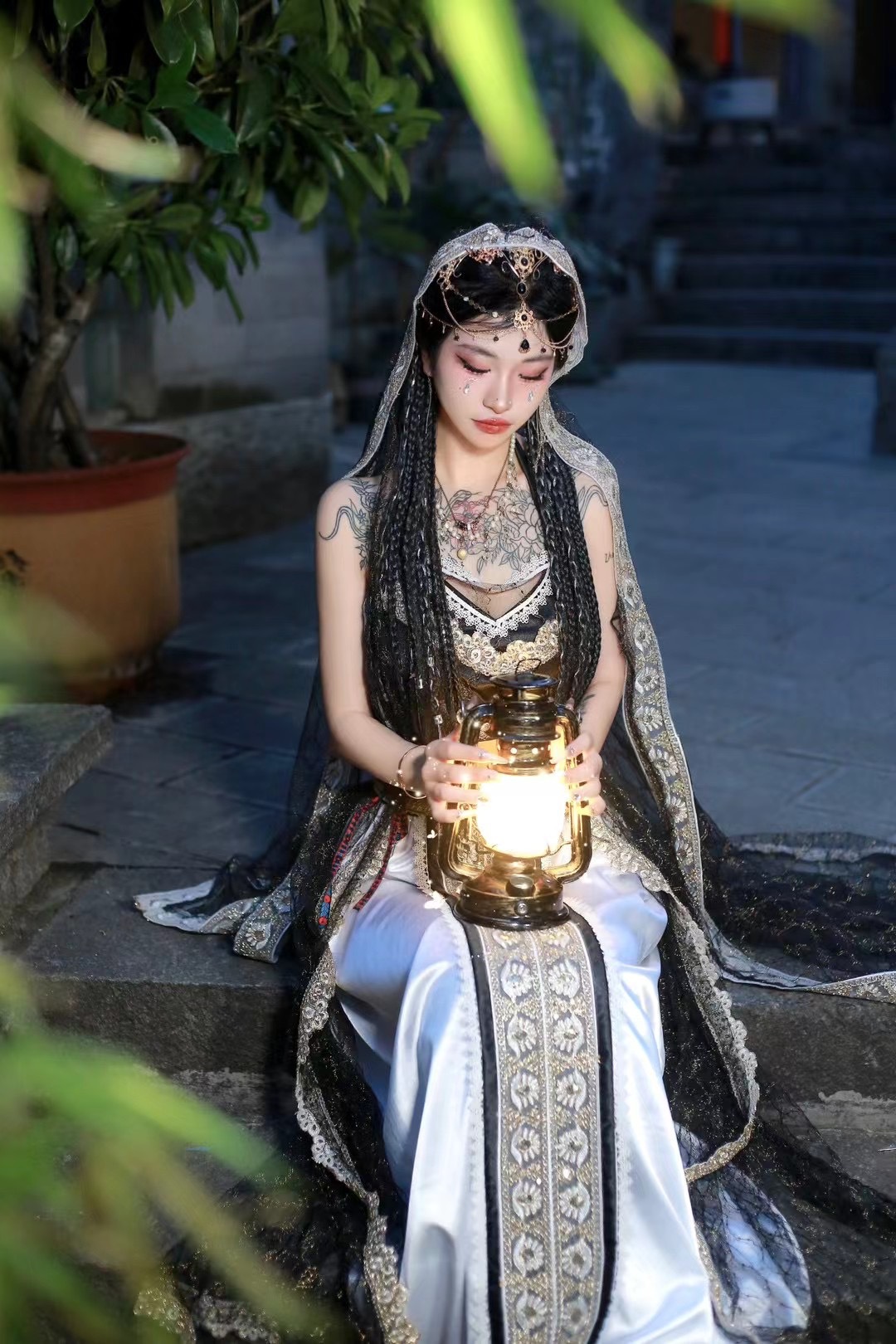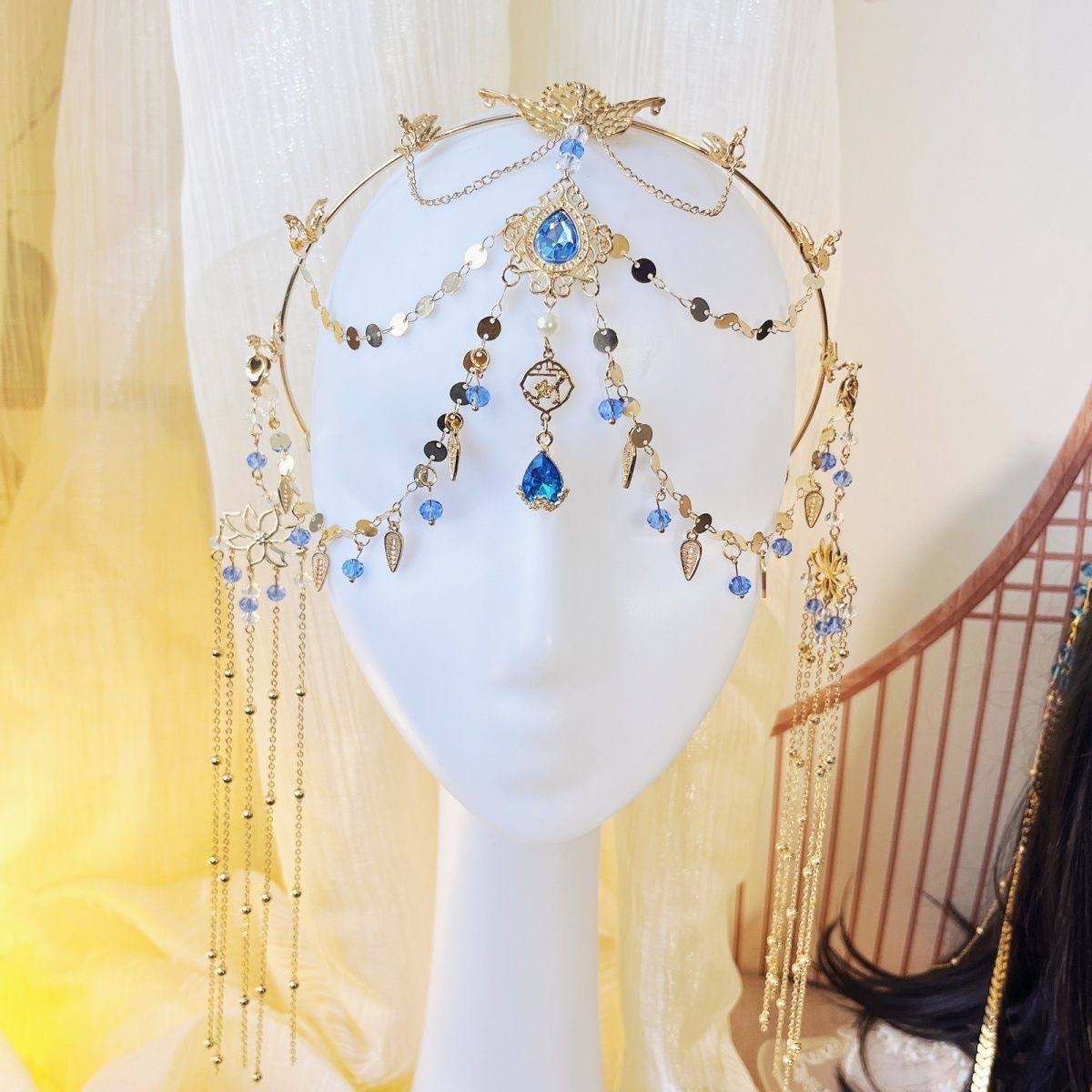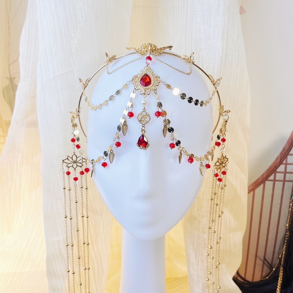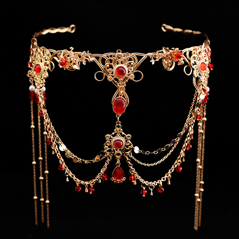 서양 이국적인 스타일 둔황 헤어 밴드 고대 의상 요정 스타일 술 눈썹 펜던트 골동품 한푸 소수 민족 신부 머리 장식