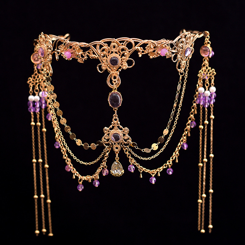 서양 이국적인 스타일 둔황 헤어 밴드 고대 의상 요정 스타일 술 눈썹 펜던트 골동품 한푸 소수 민족 신부 머리 장식스토어 가기