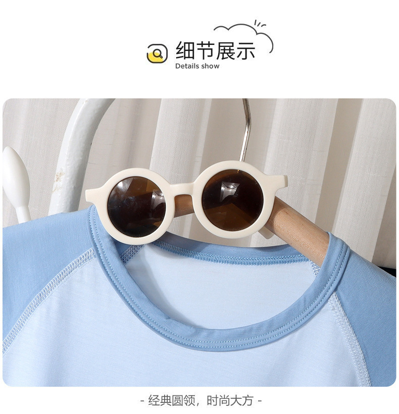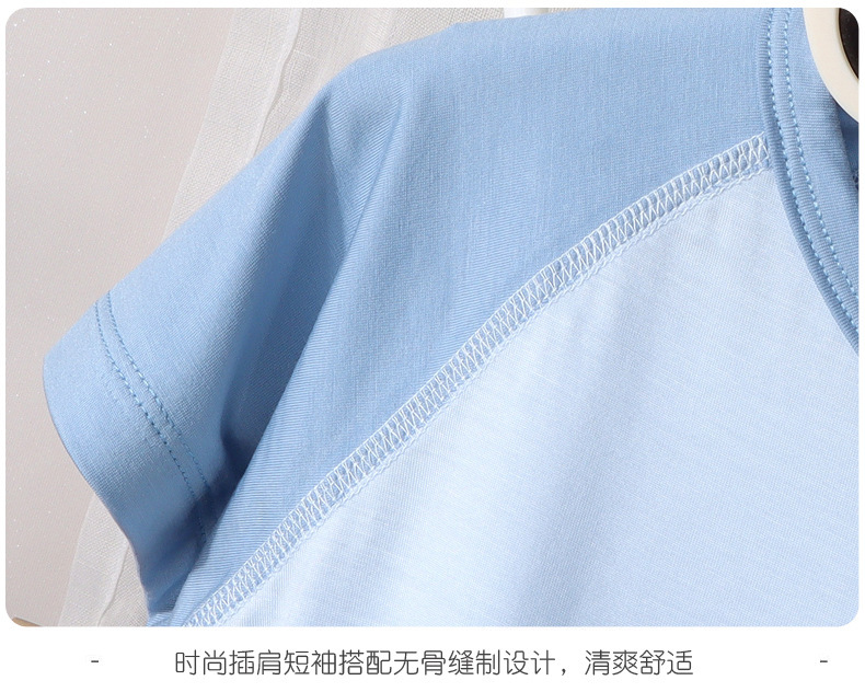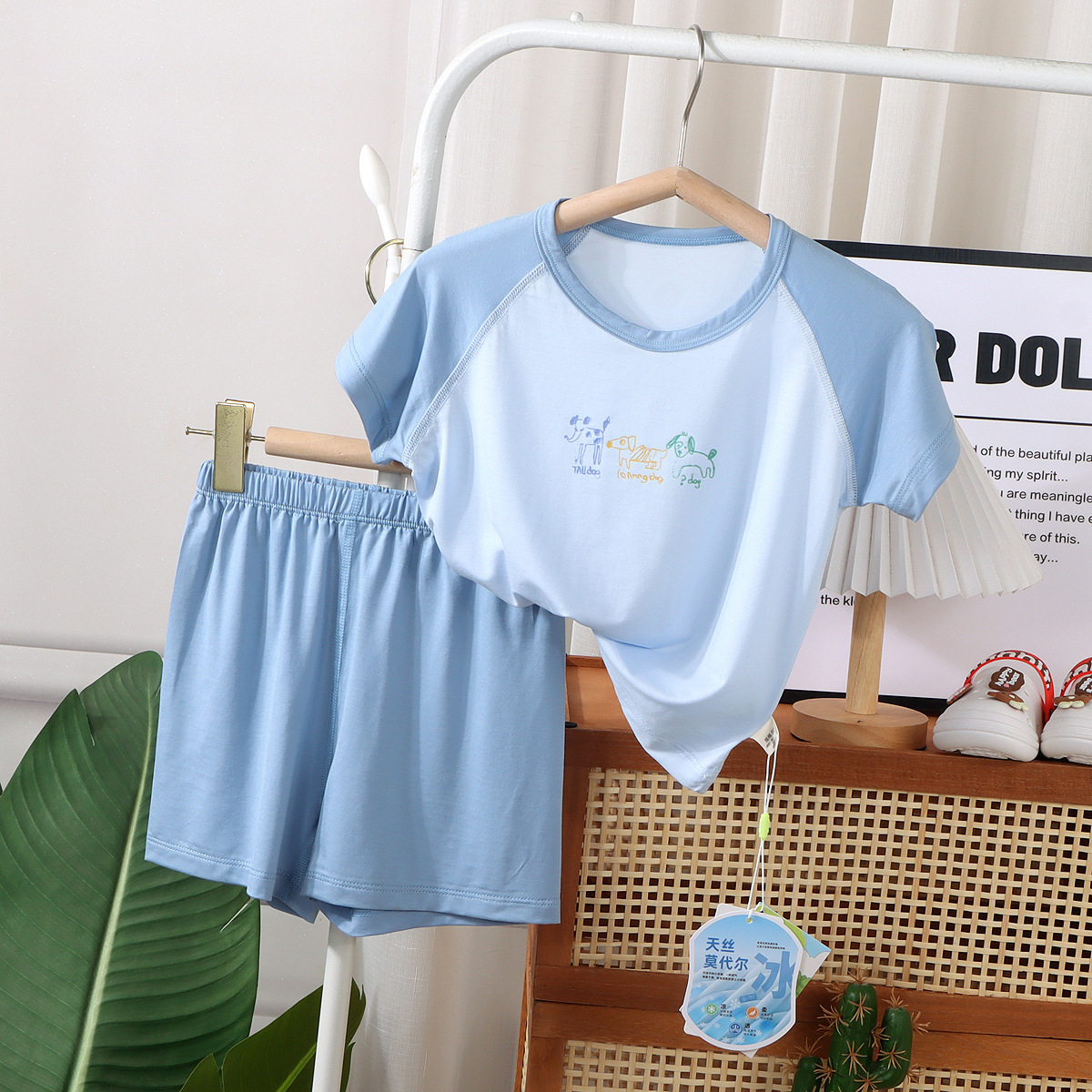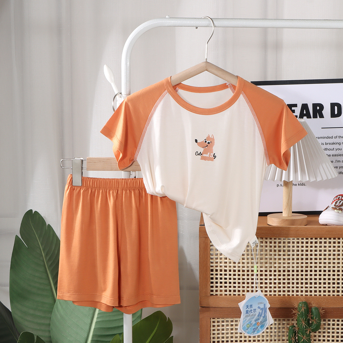 어린이 가정 의류 세트 2024 새 클래스 A 뼈없는 모달 반팔 소녀 에어컨 의류 세트스토어 가기
