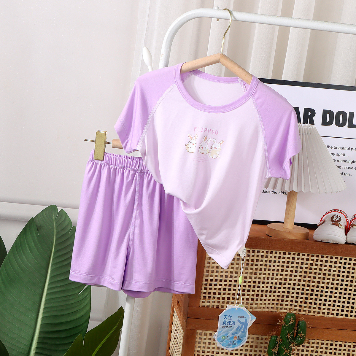 어린이 가정 의류 세트 2024 새 클래스 A 뼈없는 모달 반팔 소녀 에어컨 의류 세트