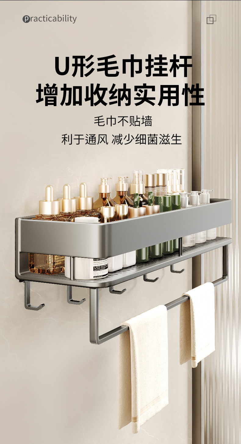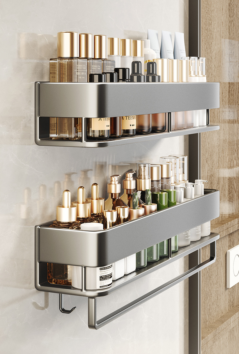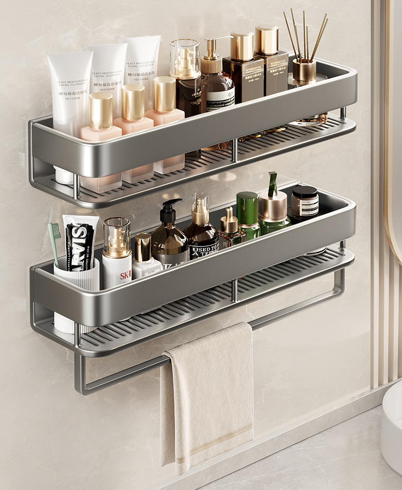 화장실 수건 선반 저장 선반 통합 구멍없는 구멍이없는 높은 화장실 세척 및 세척 테이블 저장 교수형 막대스토어 가기