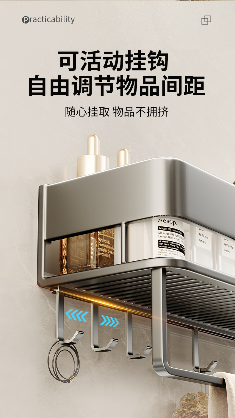 화장실 수건 선반 저장 선반 통합 구멍없는 구멍이없는 높은 화장실 세척 및 세척 테이블 저장 교수형 막대
