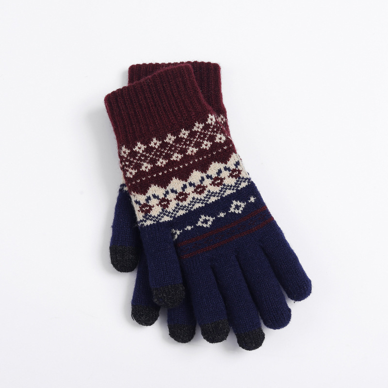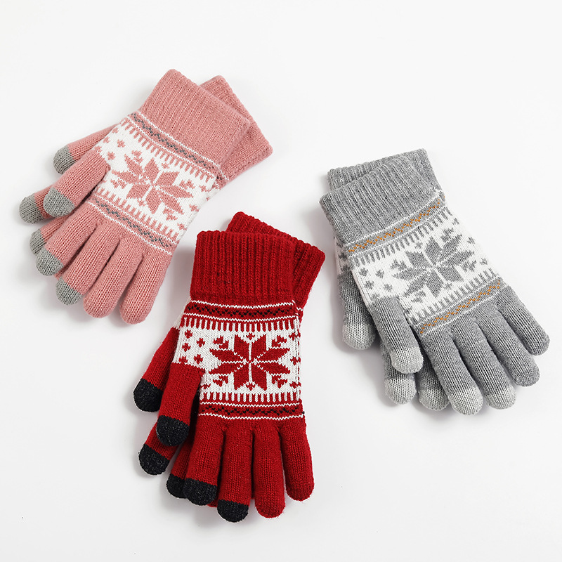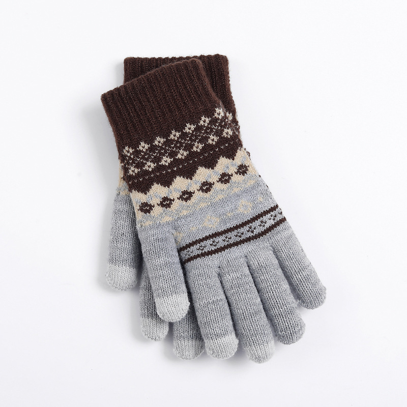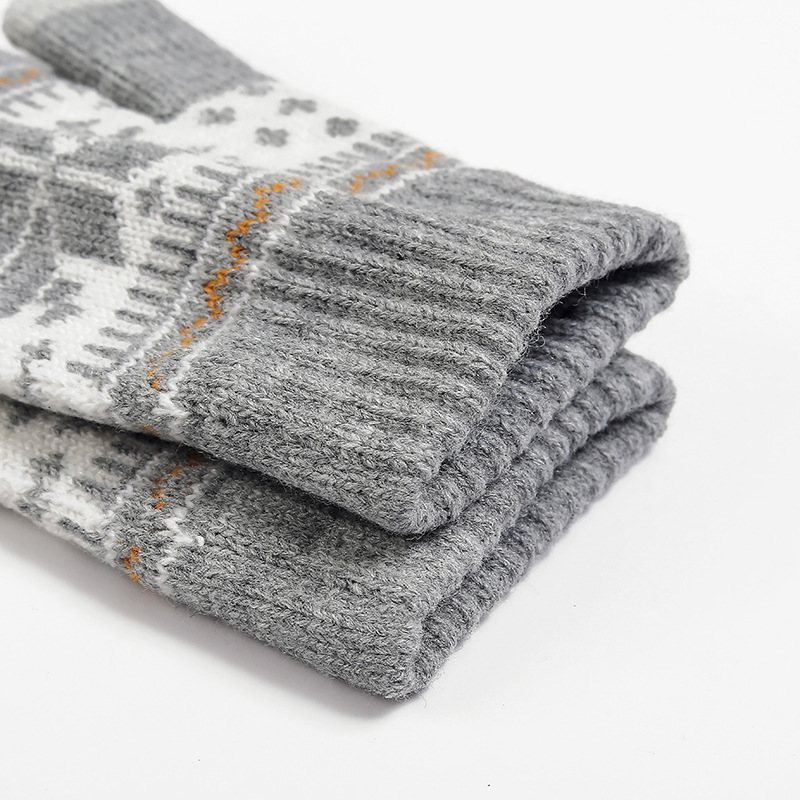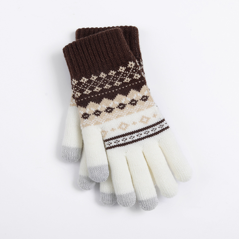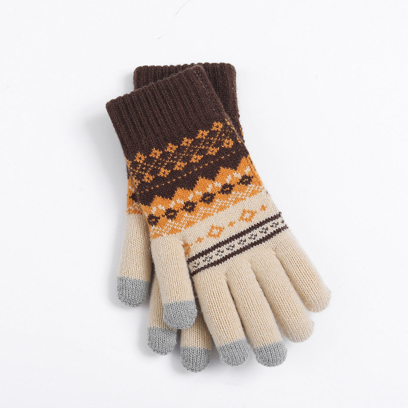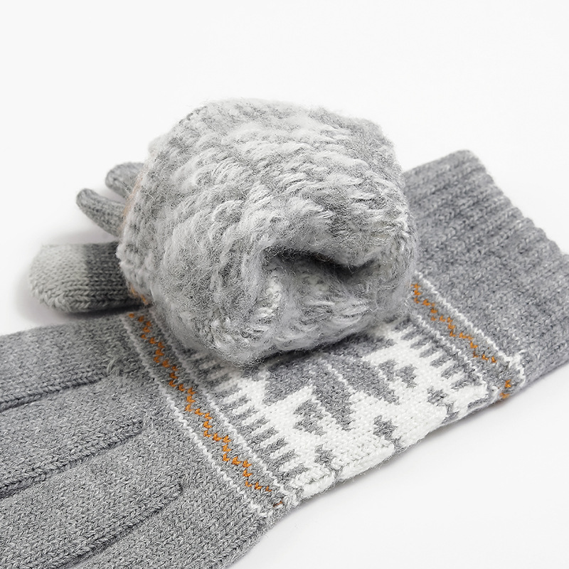 가을과 겨울 성인 따뜻한 장갑 여성용 자카드 니트 터치 스크린 기모 두껍게 냉찜질 울 손가락 장갑