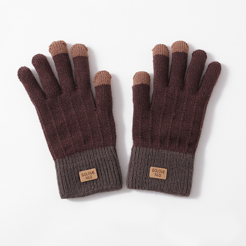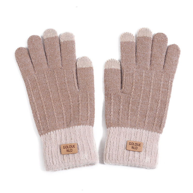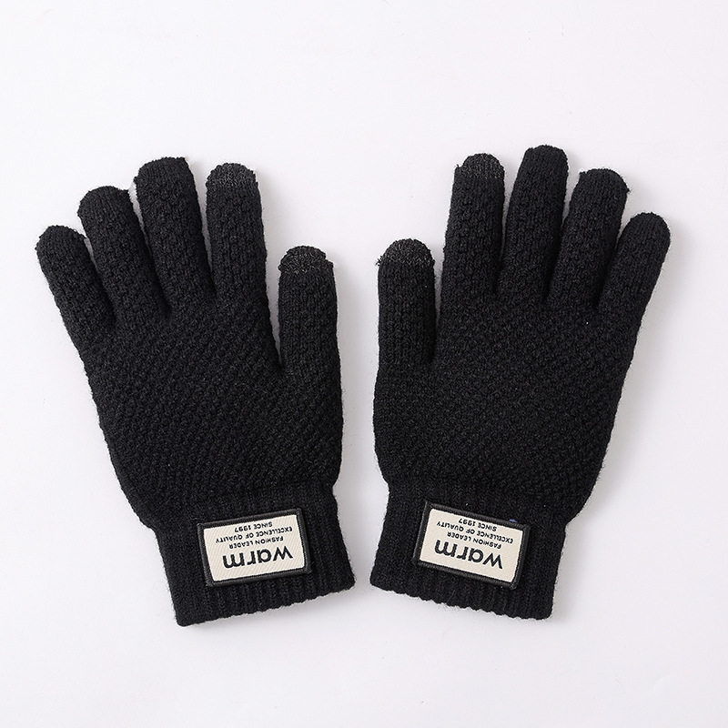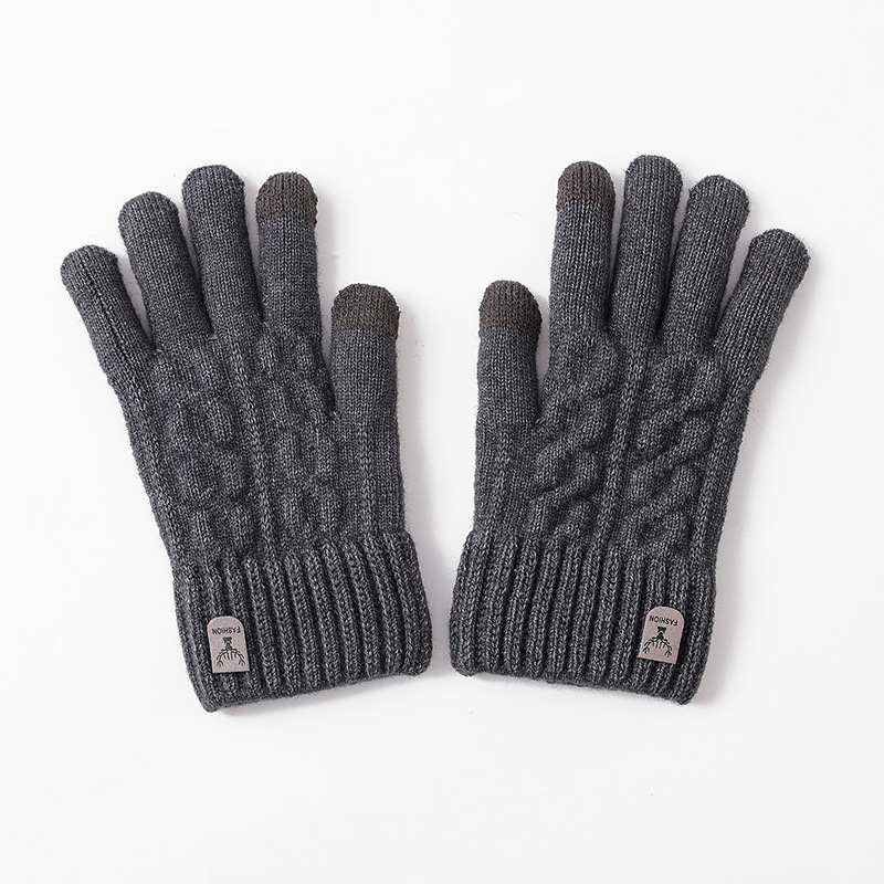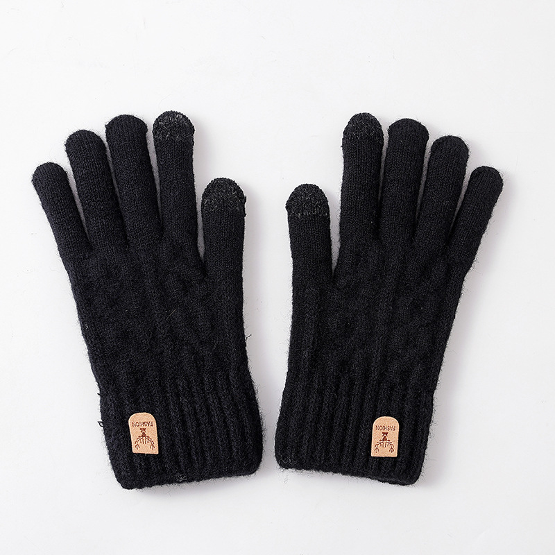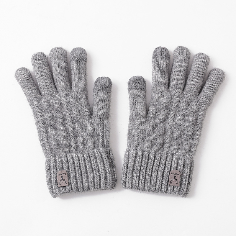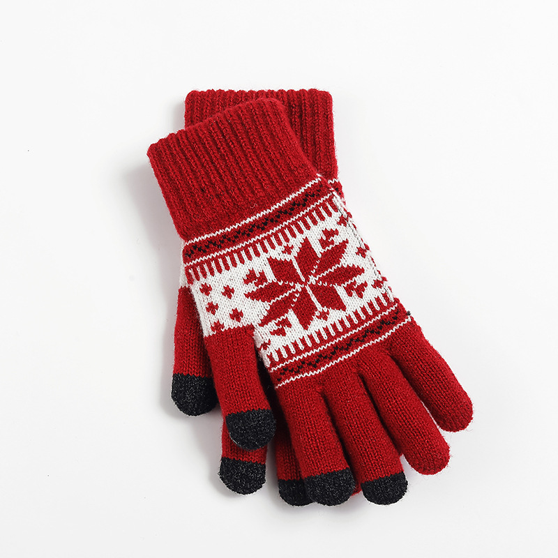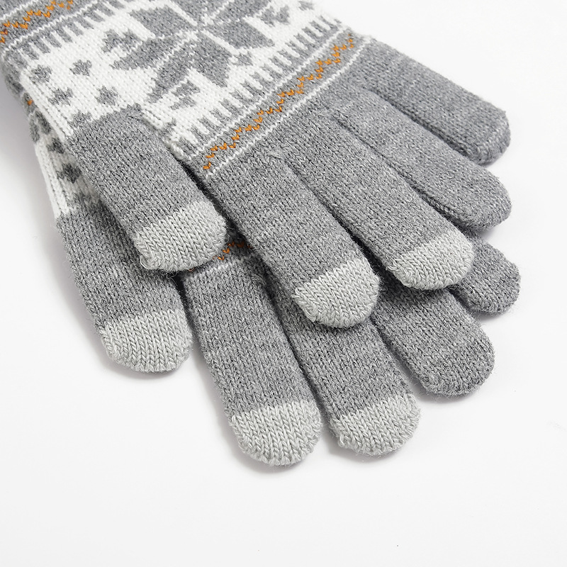 가을과 겨울 성인 따뜻한 장갑 여성용 자카드 니트 터치 스크린 기모 두껍게 냉찜질 울 손가락 장갑
