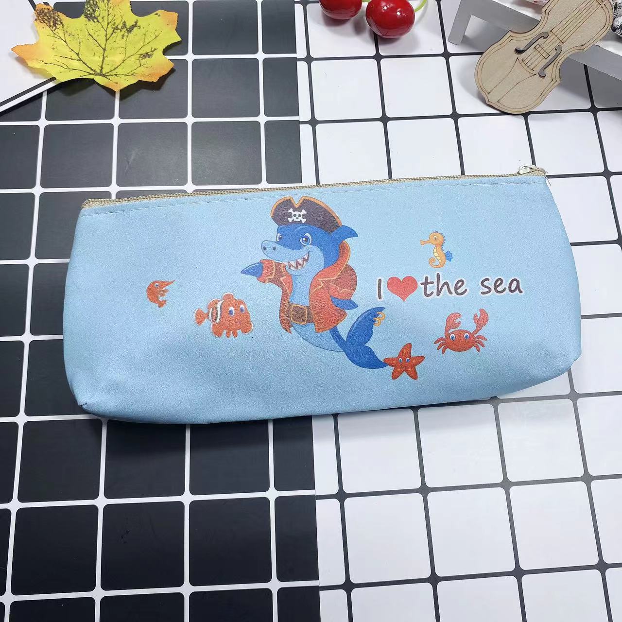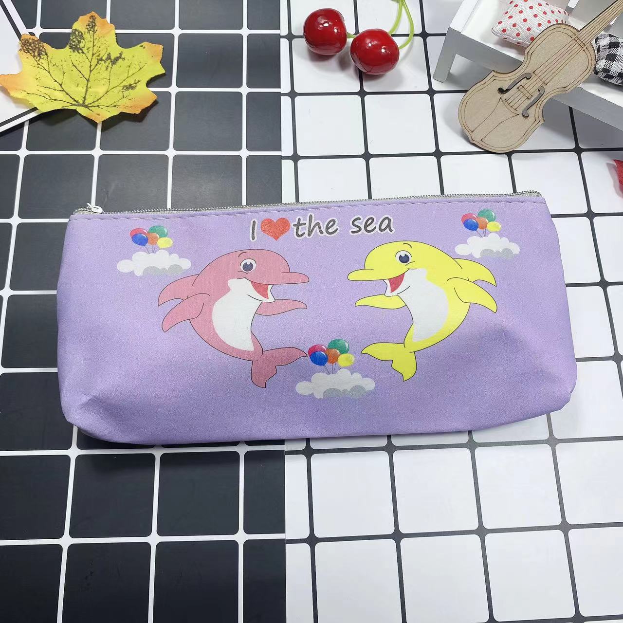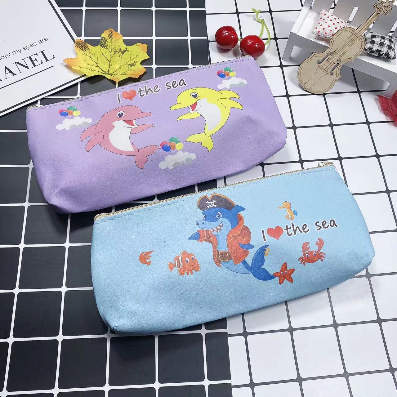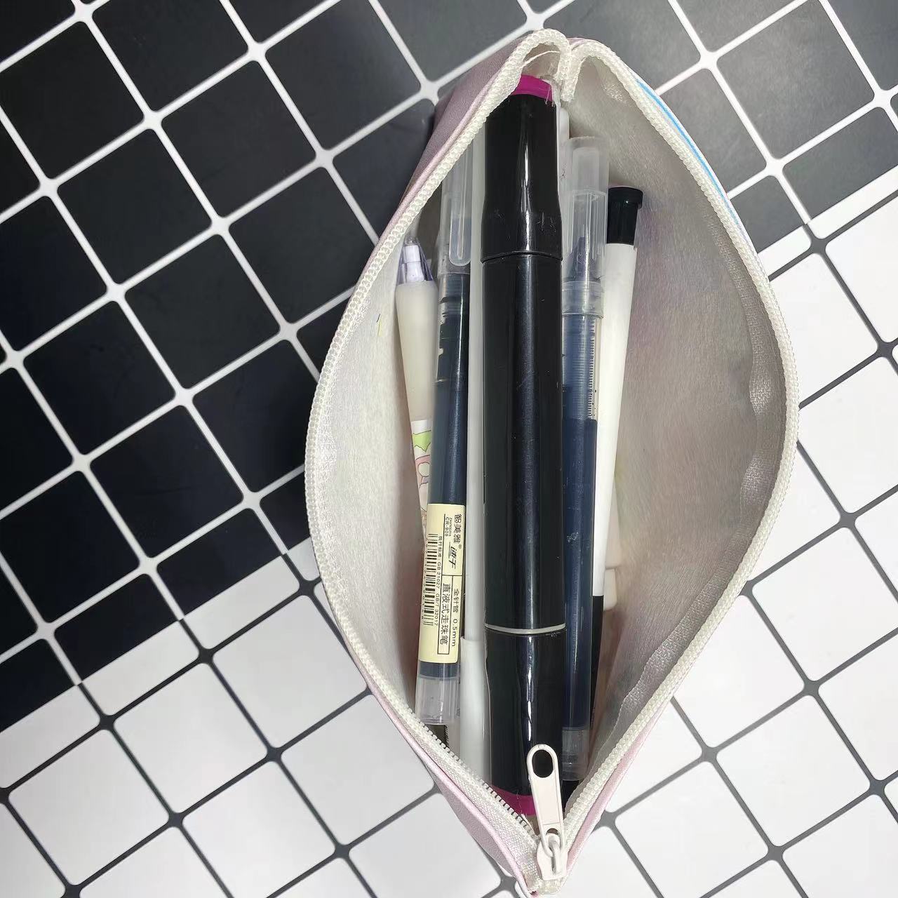 만화 간단한 남성과 여성의 연필 가방 학생 문구 보관 가방 삼각형 대용량 귀여운 연필 가방 인쇄 가능