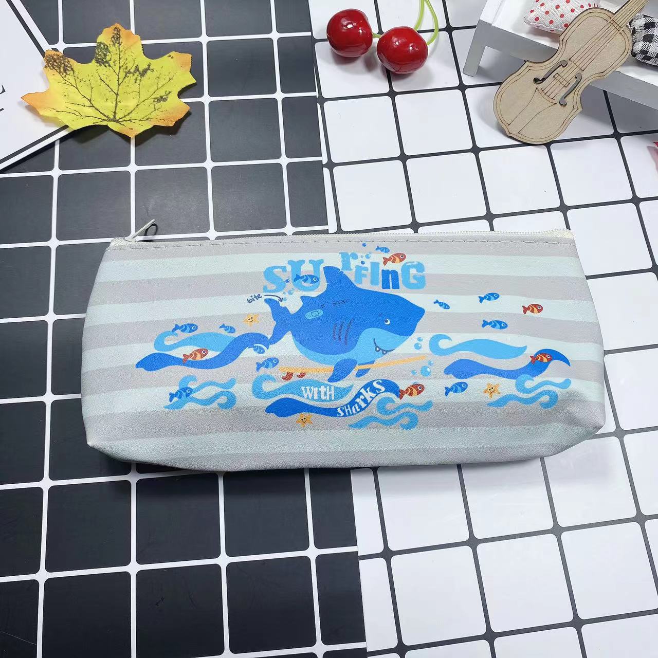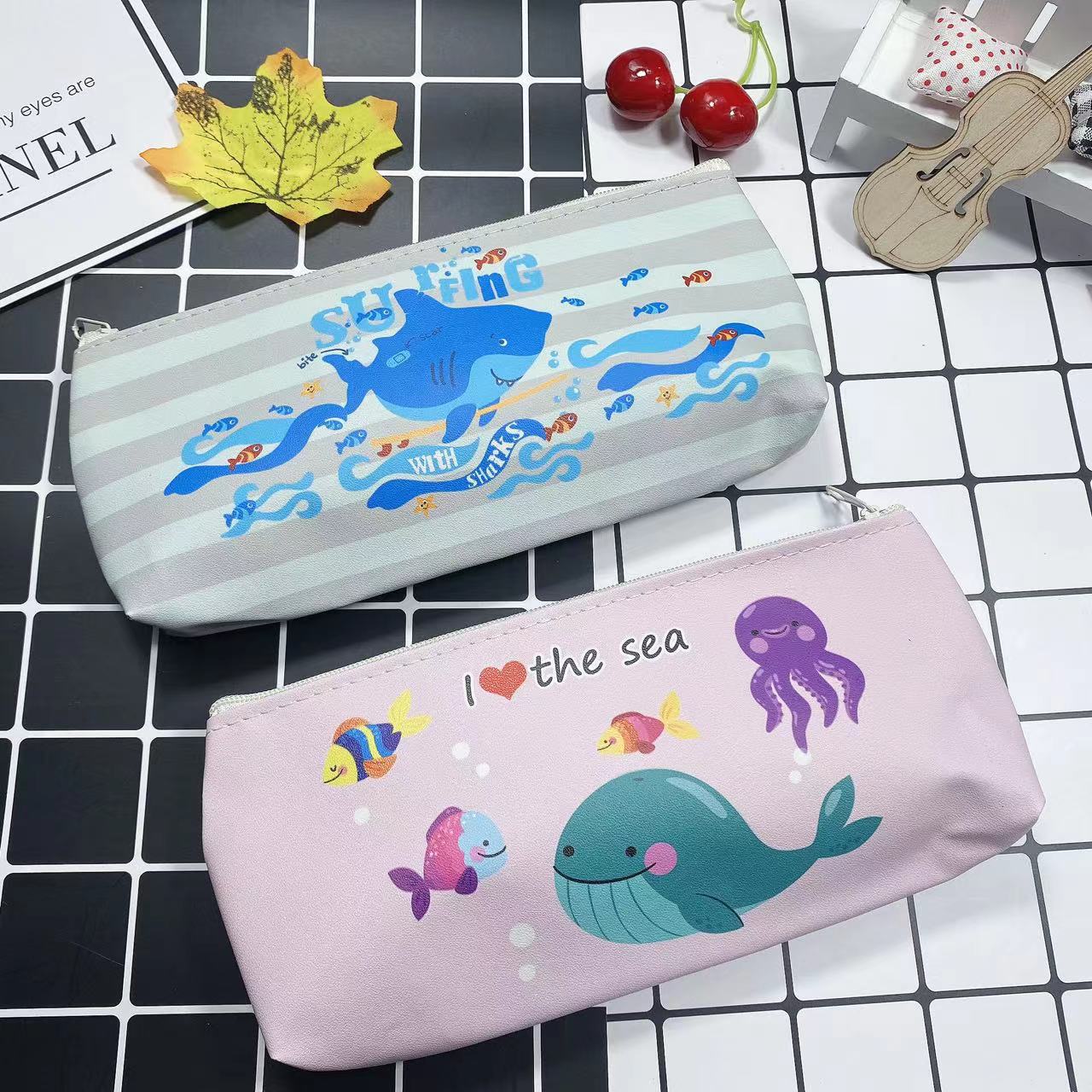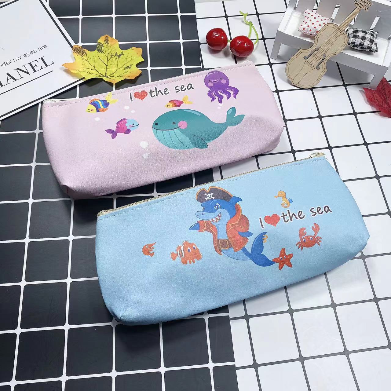 만화 간단한 남성과 여성의 연필 가방 학생 문구 보관 가방 삼각형 대용량 귀여운 연필 가방 인쇄 가능