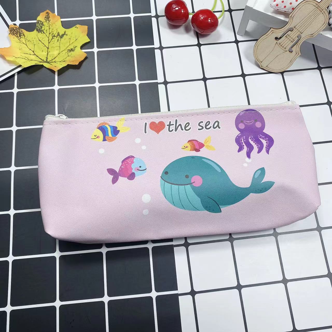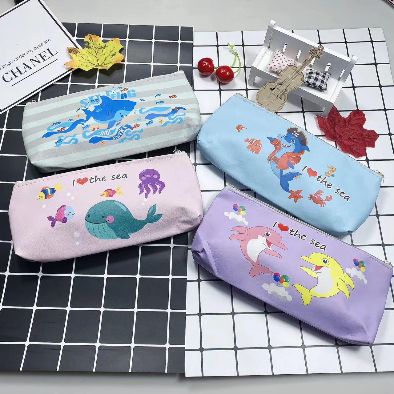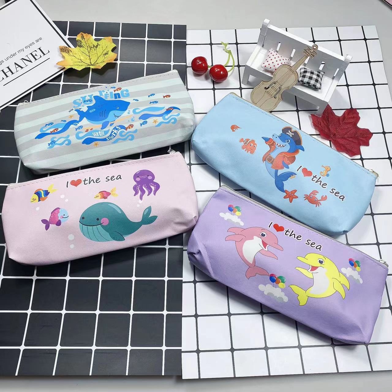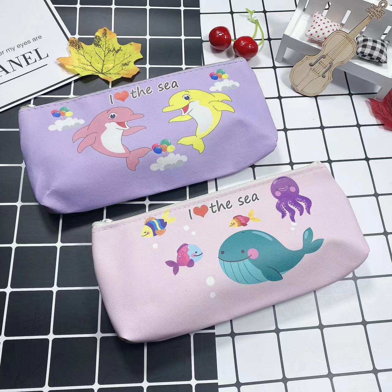 만화 간단한 남성과 여성의 연필 가방 학생 문구 보관 가방 삼각형 대용량 귀여운 연필 가방 인쇄 가능