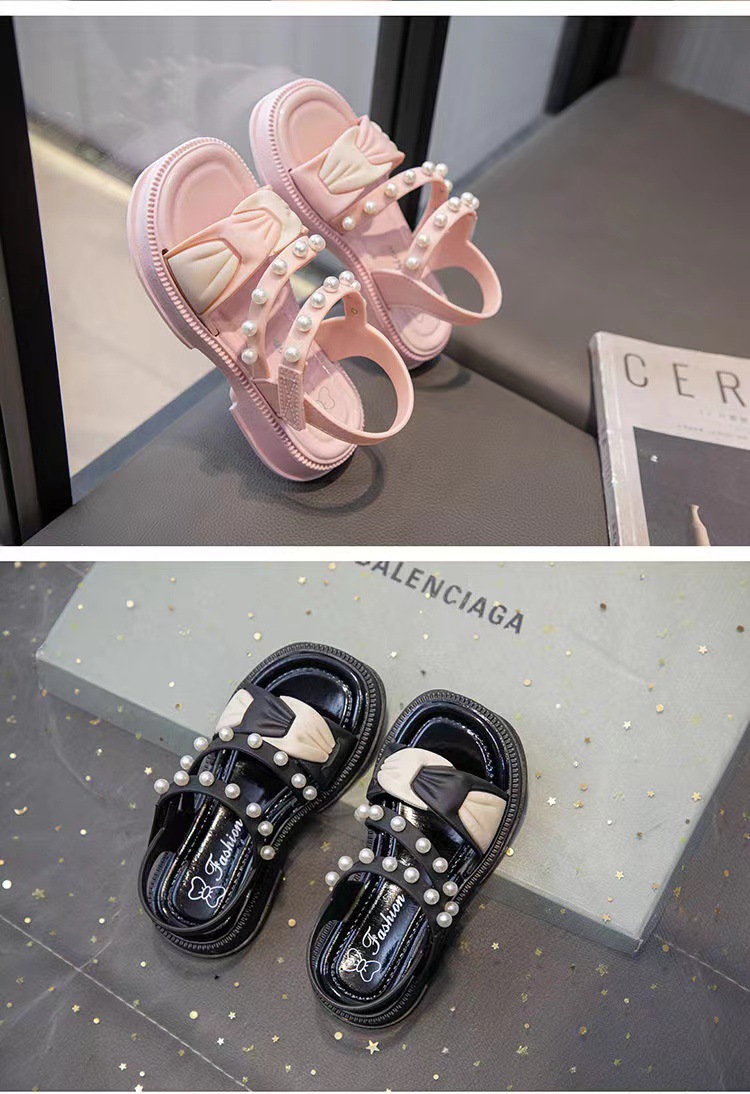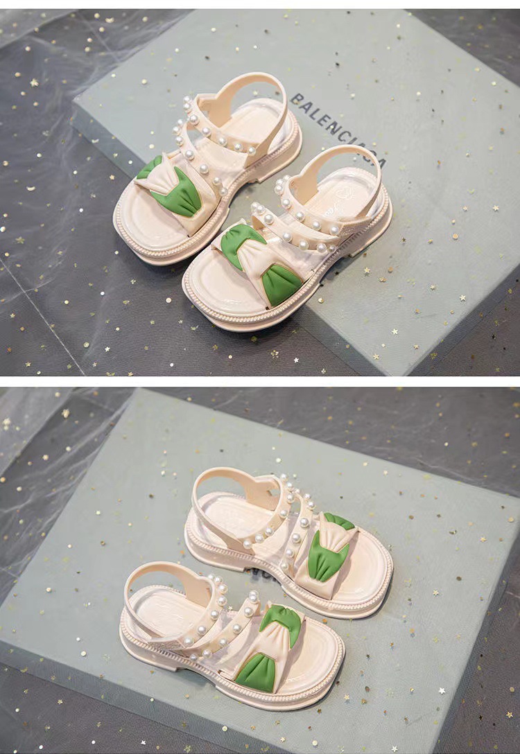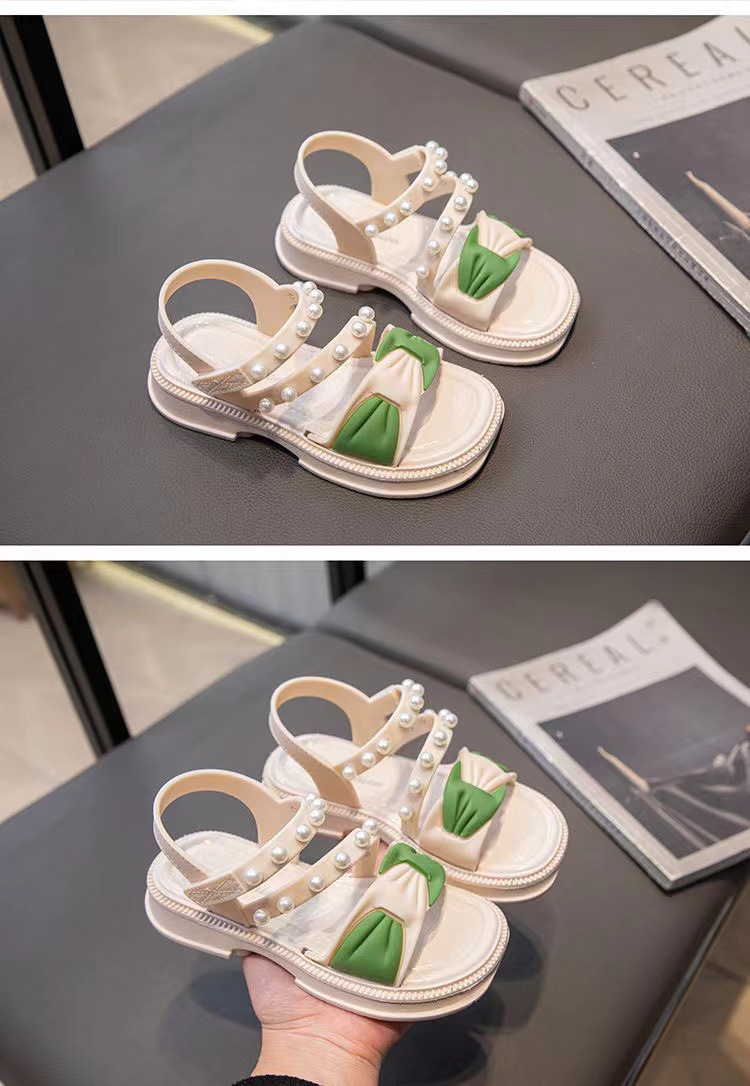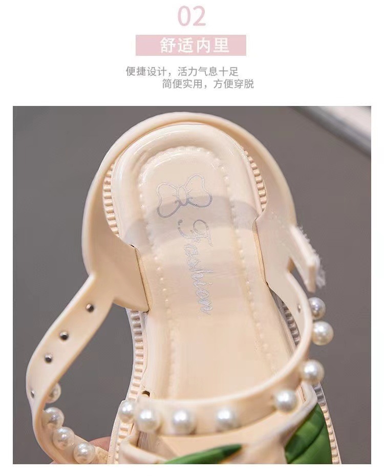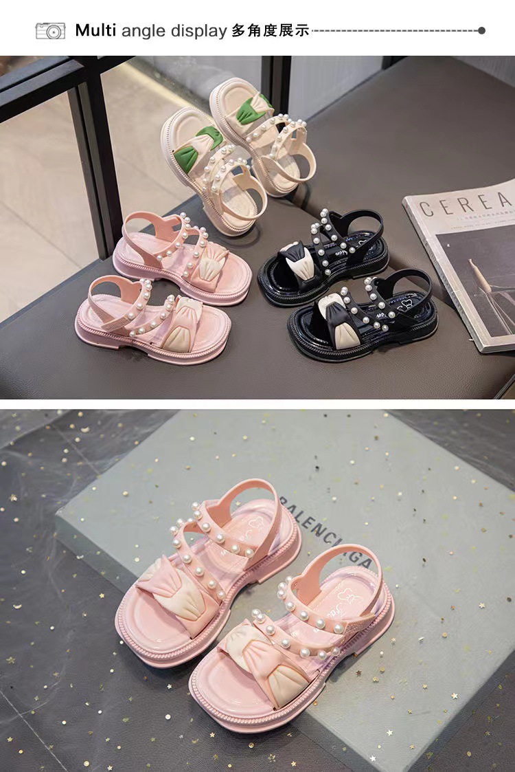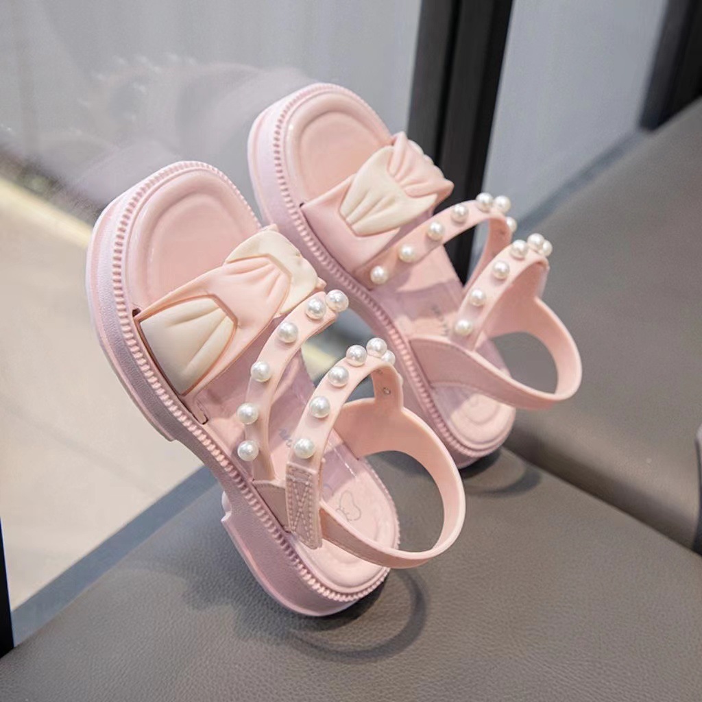 2024 여름 새 소녀 미끄럼 방지 부드러운 바닥 진주 공주 신발 어린이 중소 어린이 소녀 해변 신발 샌들