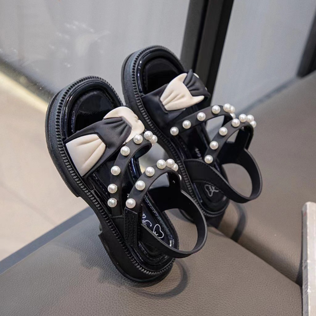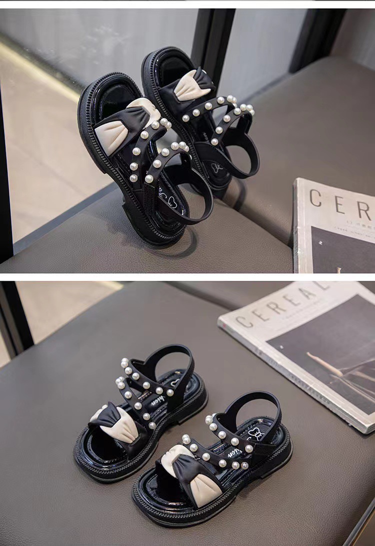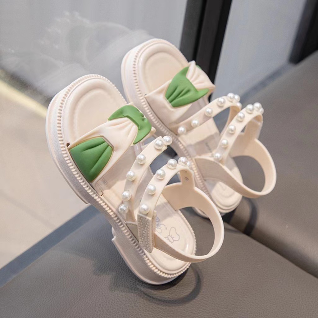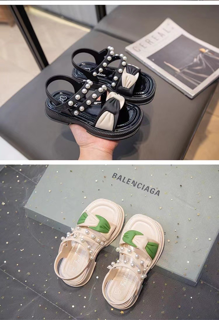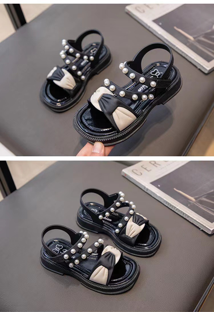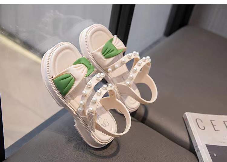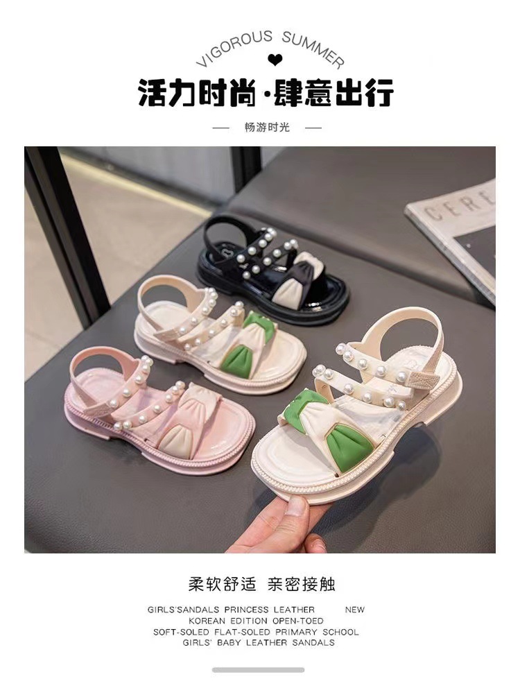 2024 여름 새 소녀 미끄럼 방지 부드러운 바닥 진주 공주 신발 어린이 중소 어린이 소녀 해변 신발 샌들
