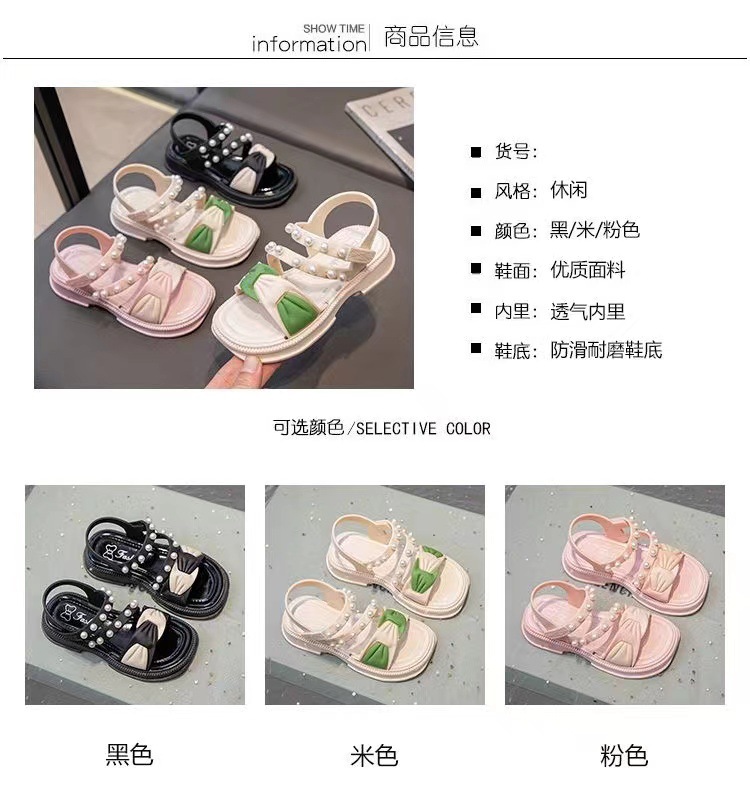 2024 여름 새 소녀 미끄럼 방지 부드러운 바닥 진주 공주 신발 어린이 중소 어린이 소녀 해변 신발 샌들스토어 가기