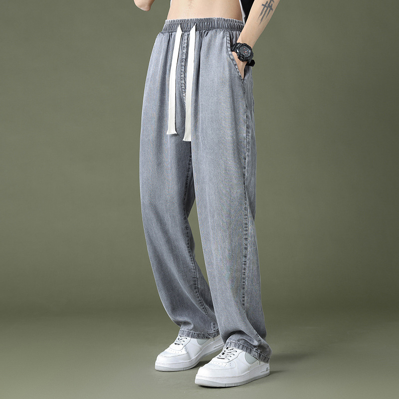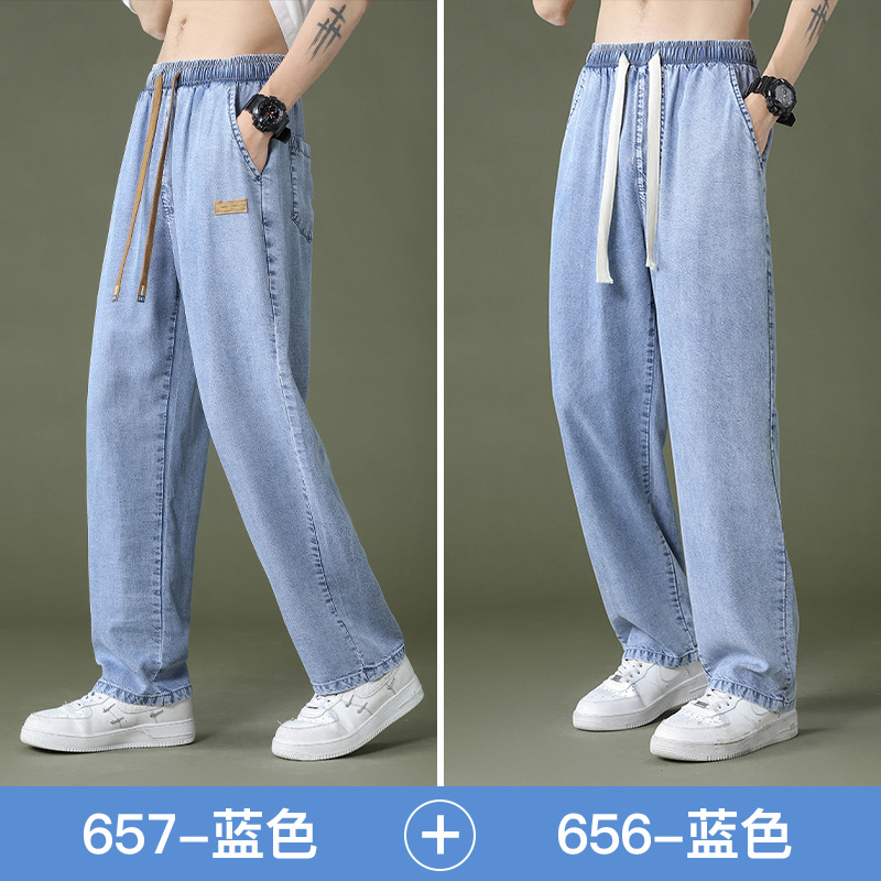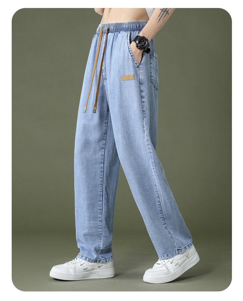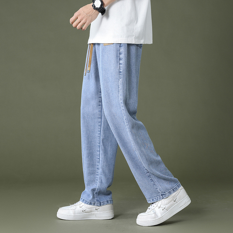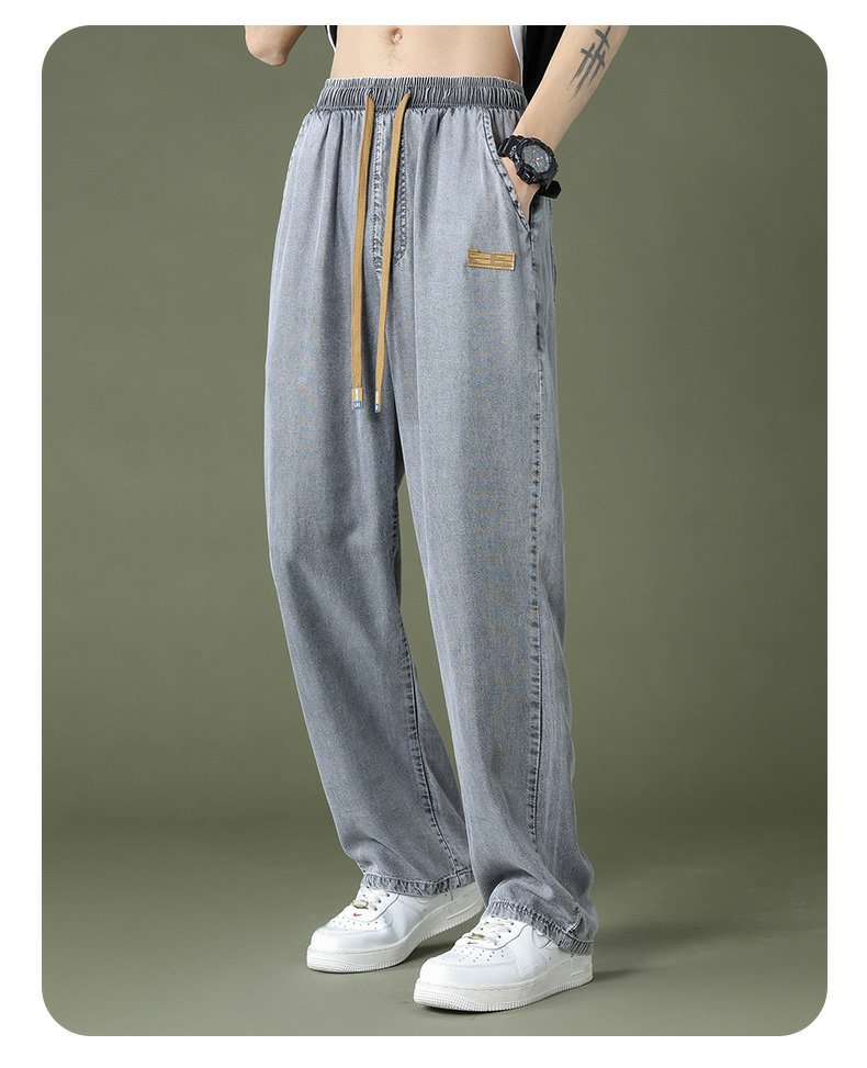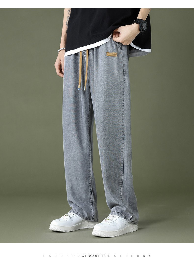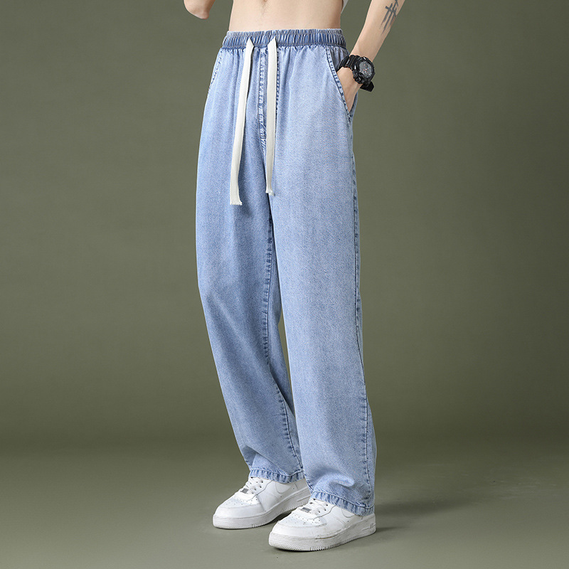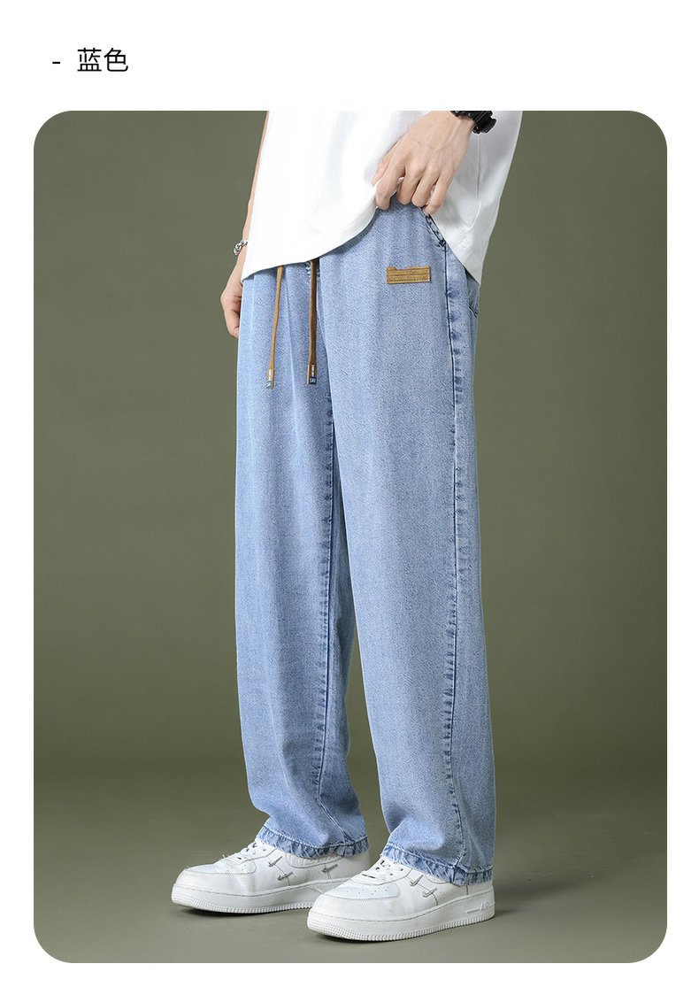 NASA 아이스 실크 블루 청바지 남성 여름 얇은 느슨한 스트레이트 와이드 레그 캐주얼 바지 미국 패션 브랜드 바지스토어 가기
