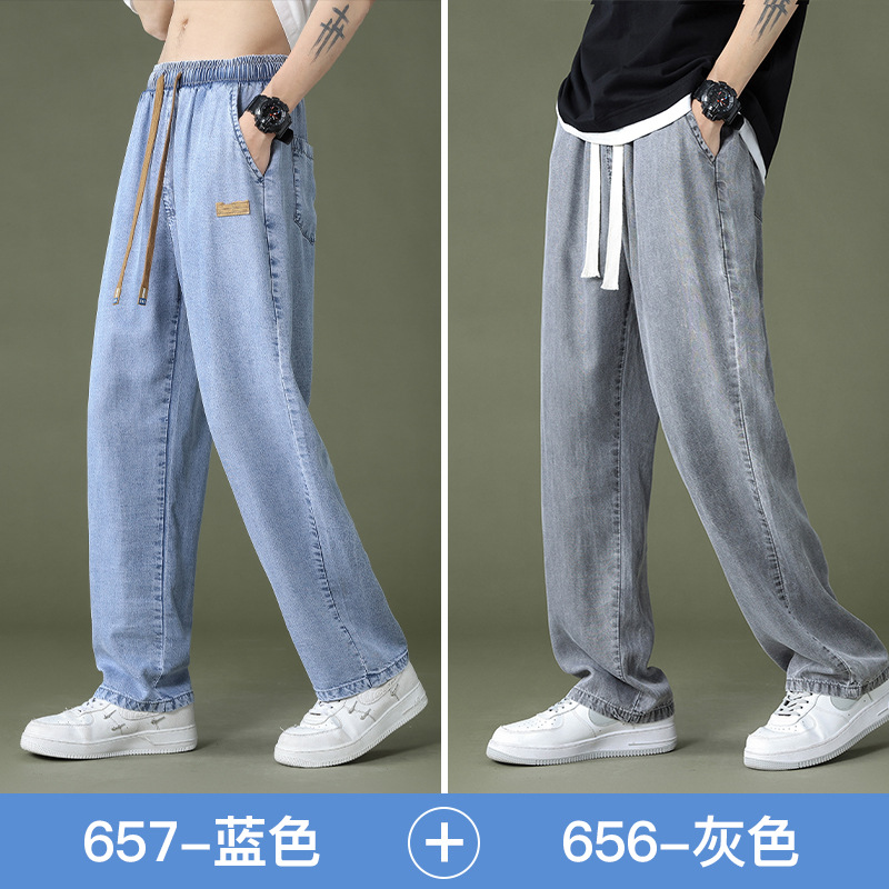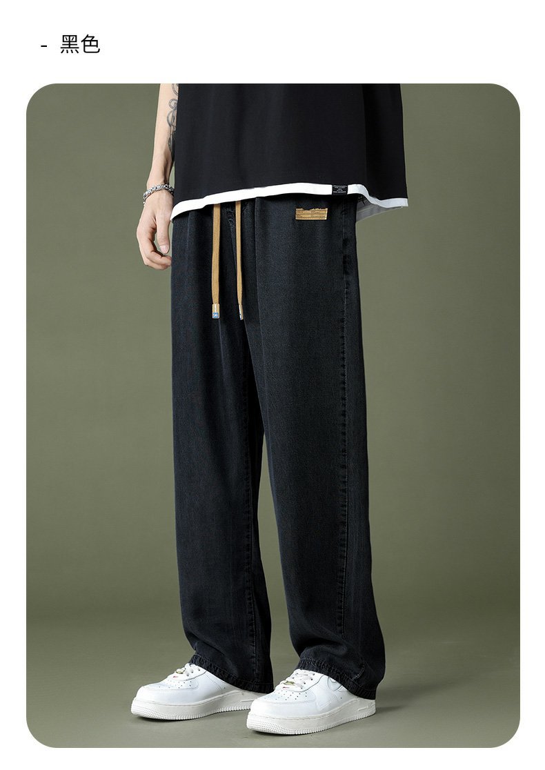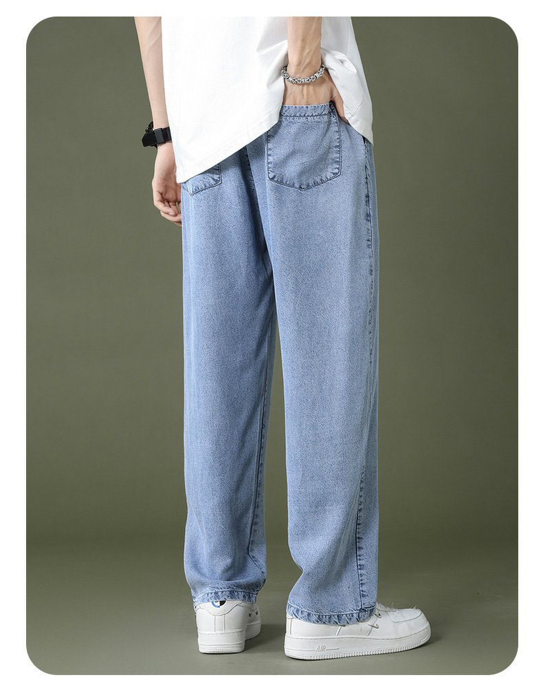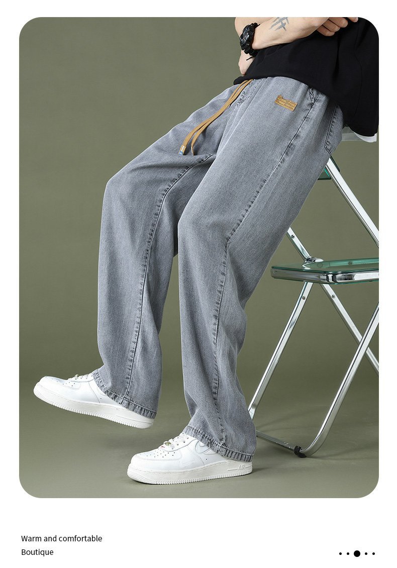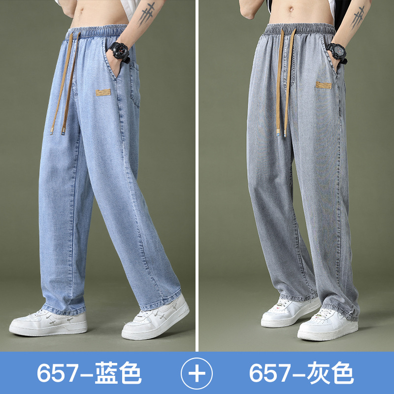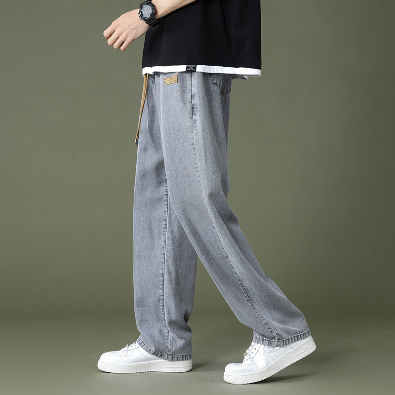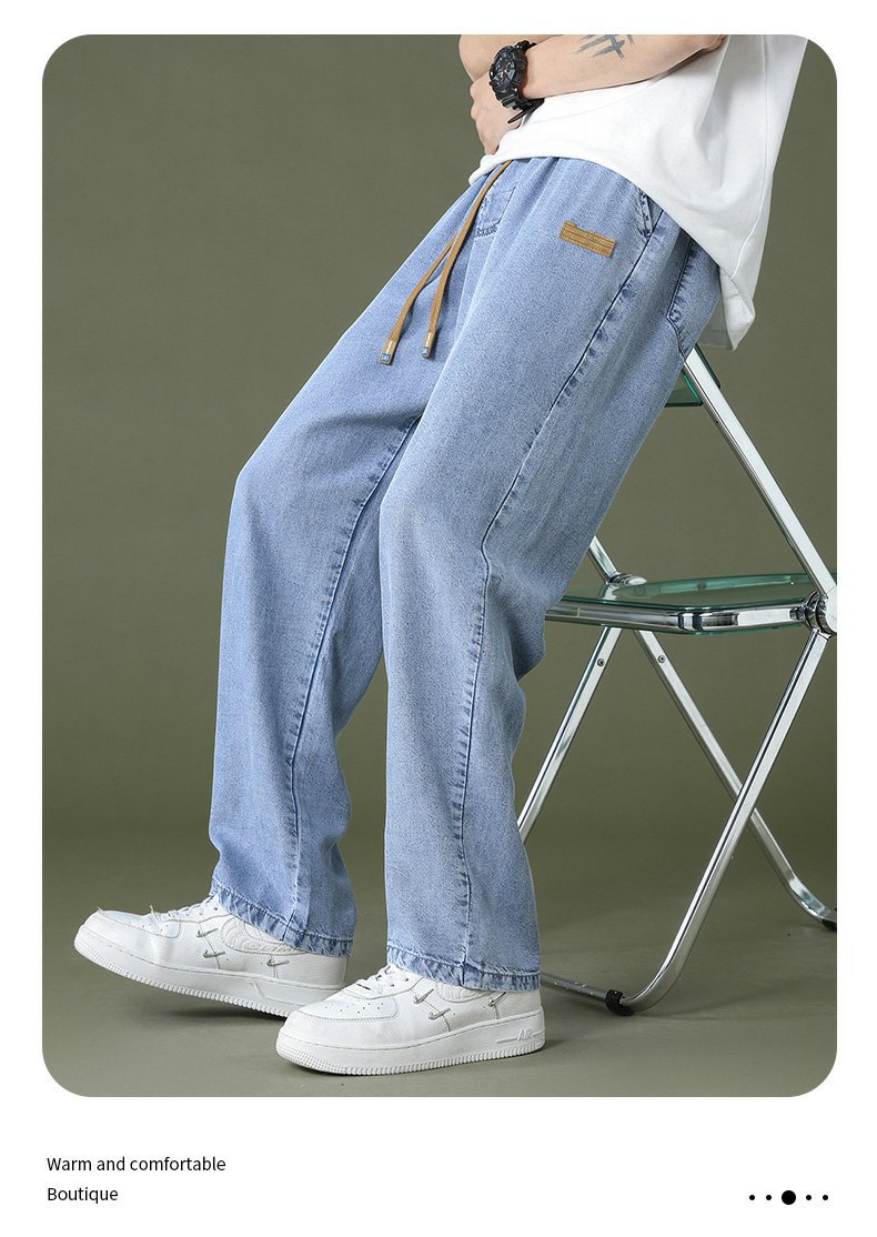 NASA 아이스 실크 블루 청바지 남성 여름 얇은 느슨한 스트레이트 와이드 레그 캐주얼 바지 미국 패션 브랜드 바지스토어 가기