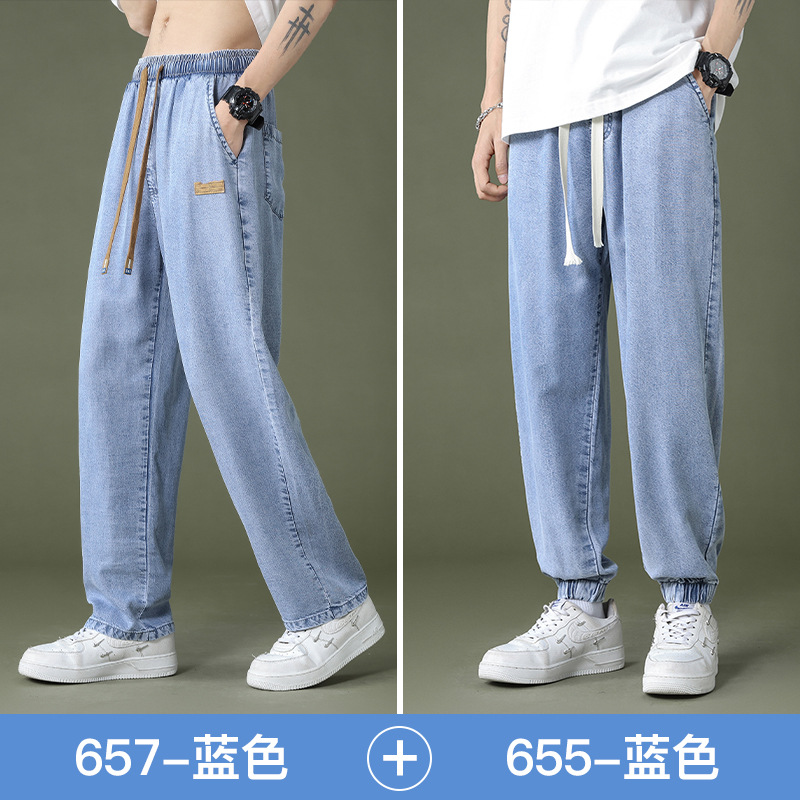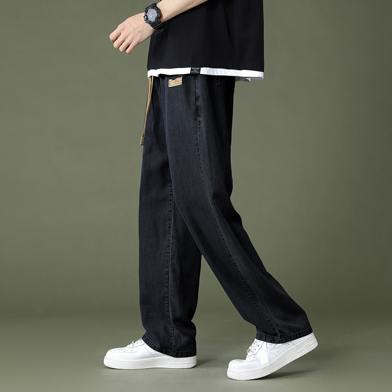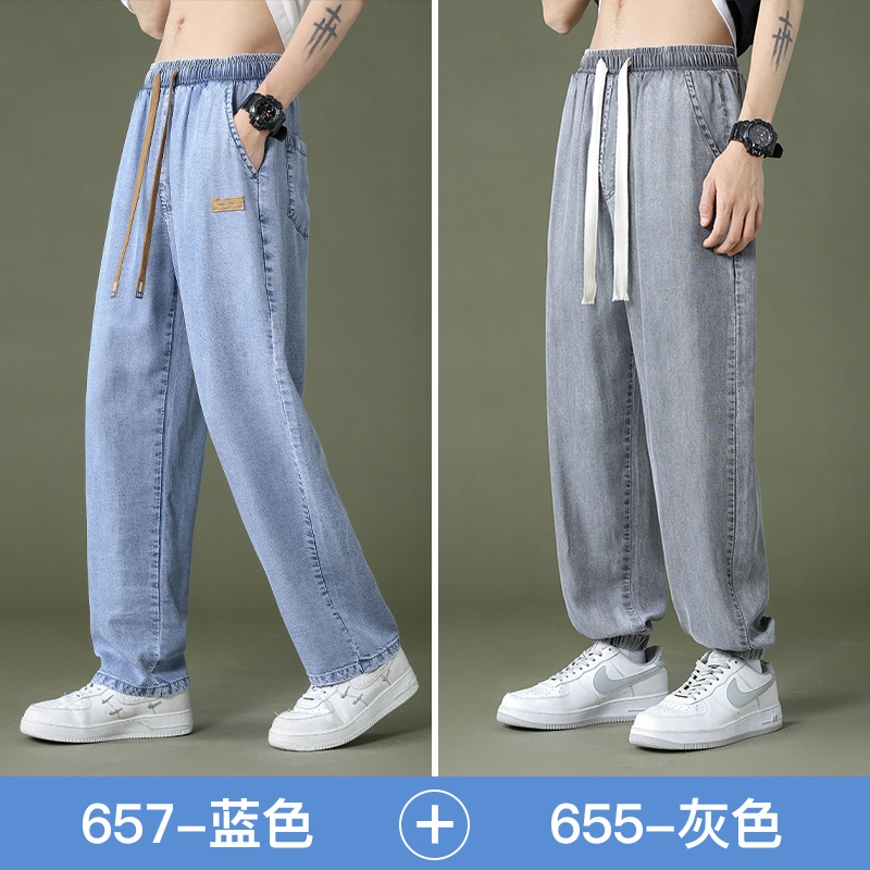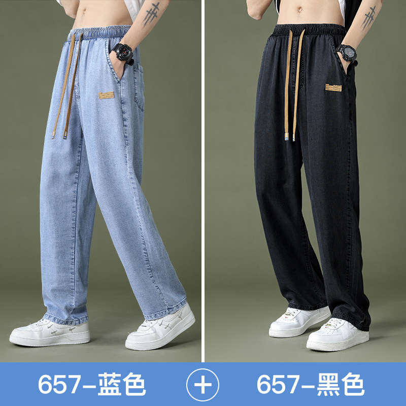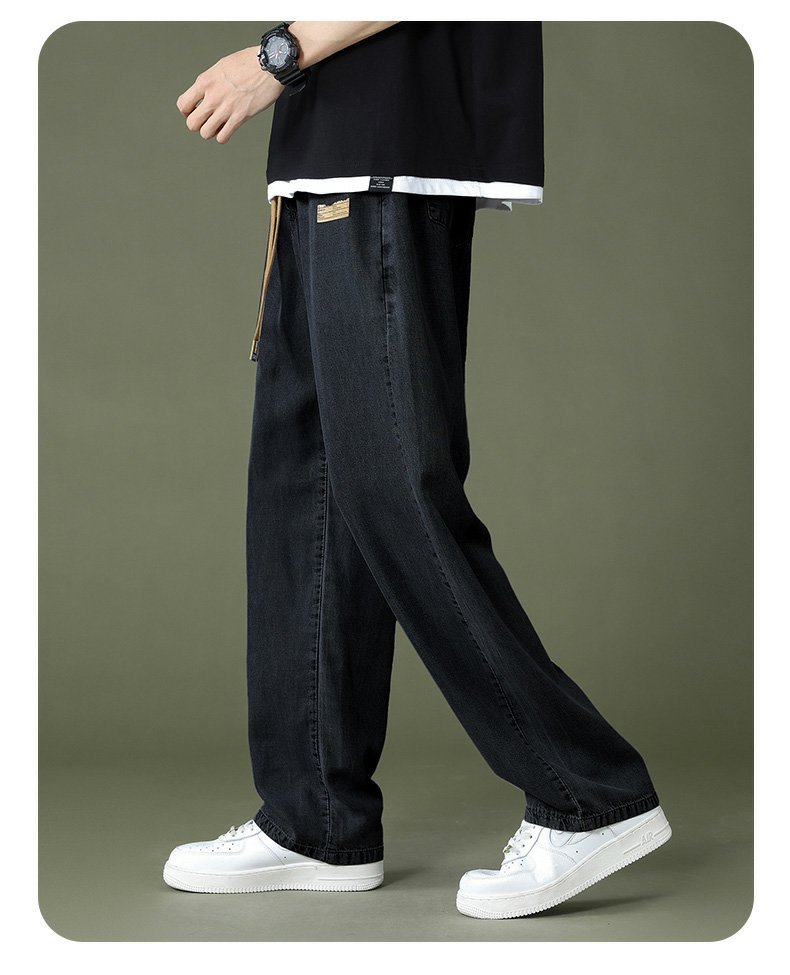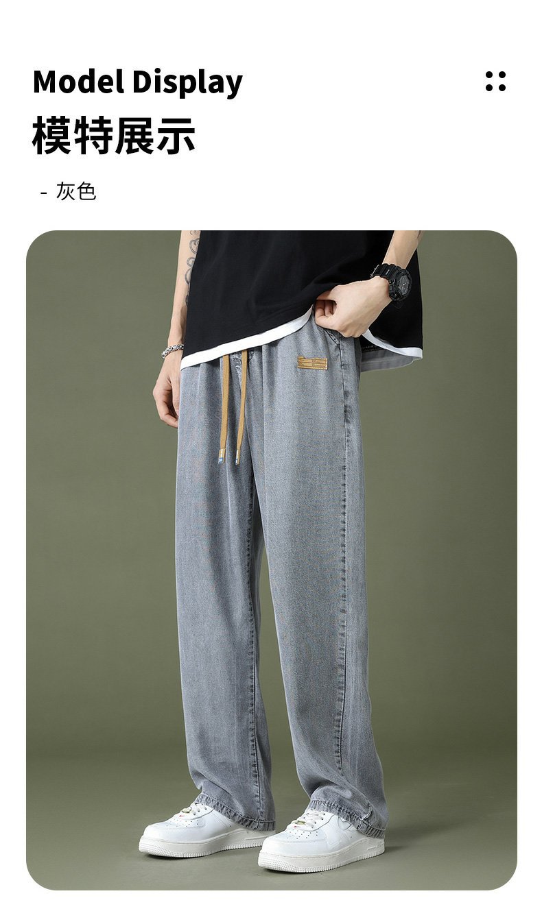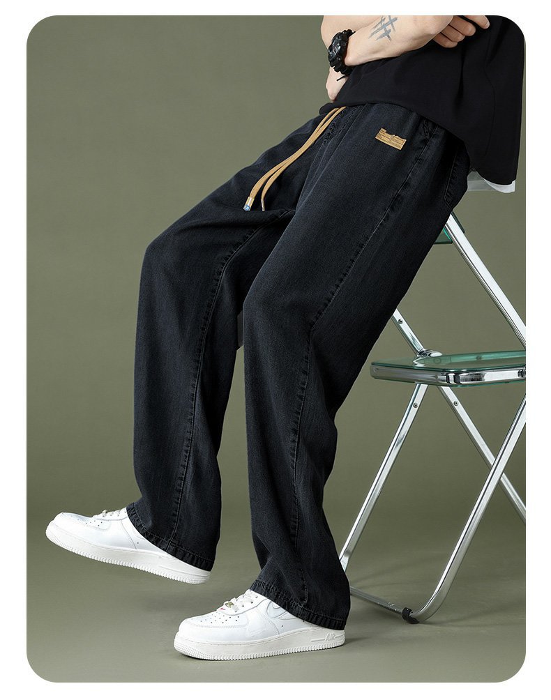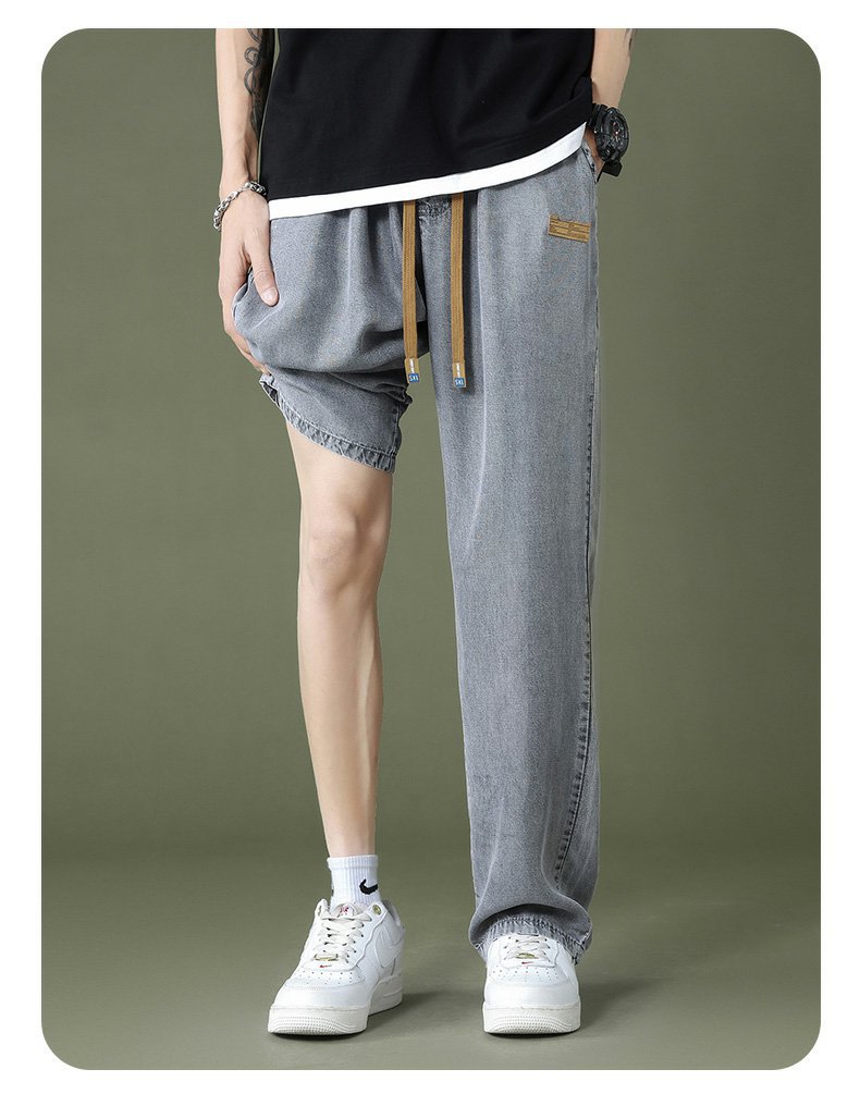 NASA 아이스 실크 블루 청바지 남성 여름 얇은 느슨한 스트레이트 와이드 레그 캐주얼 바지 미국 패션 브랜드 바지스토어 가기