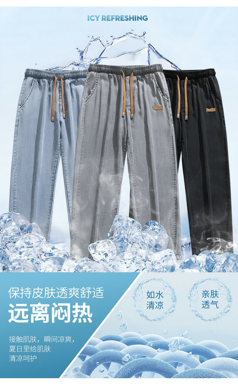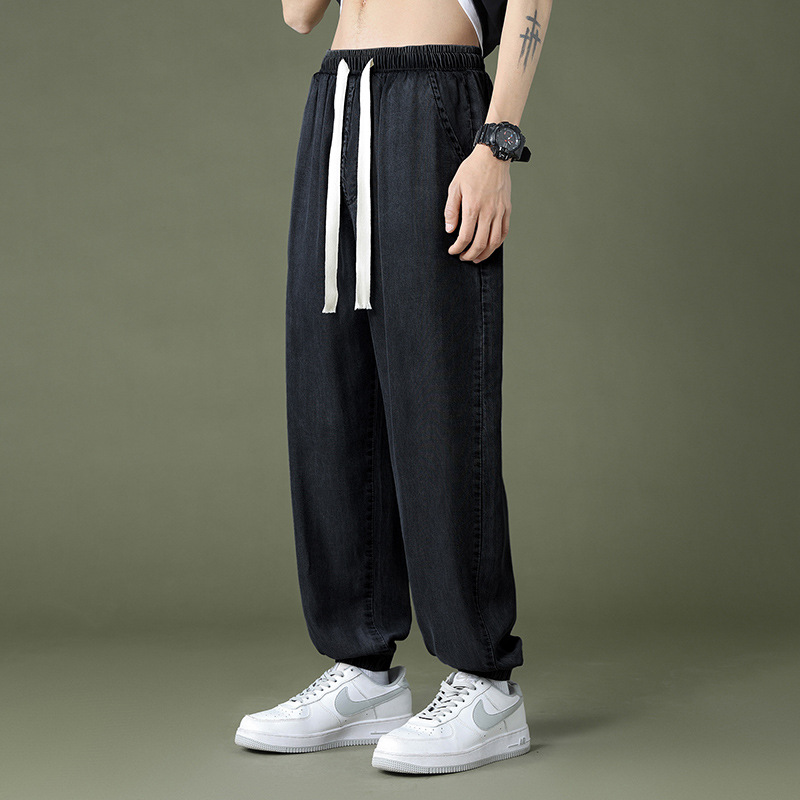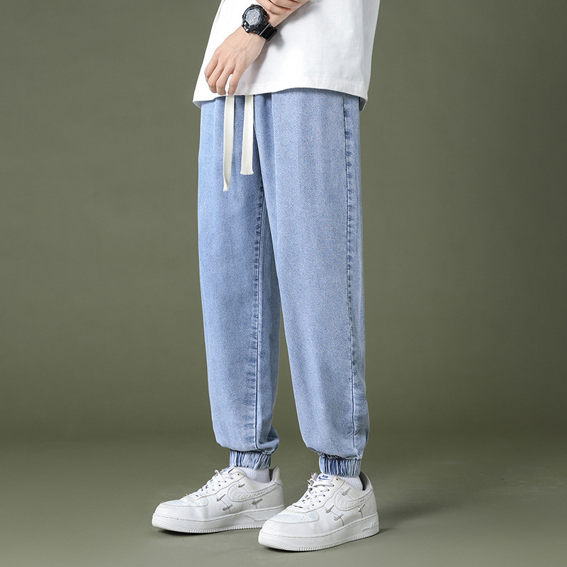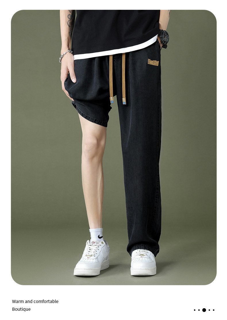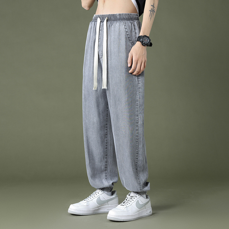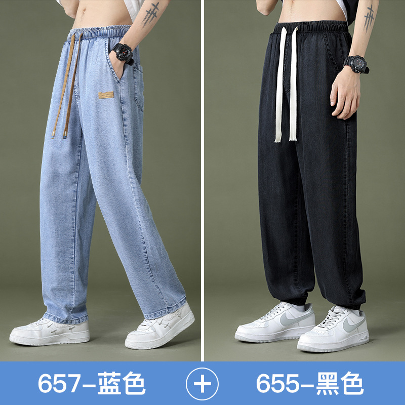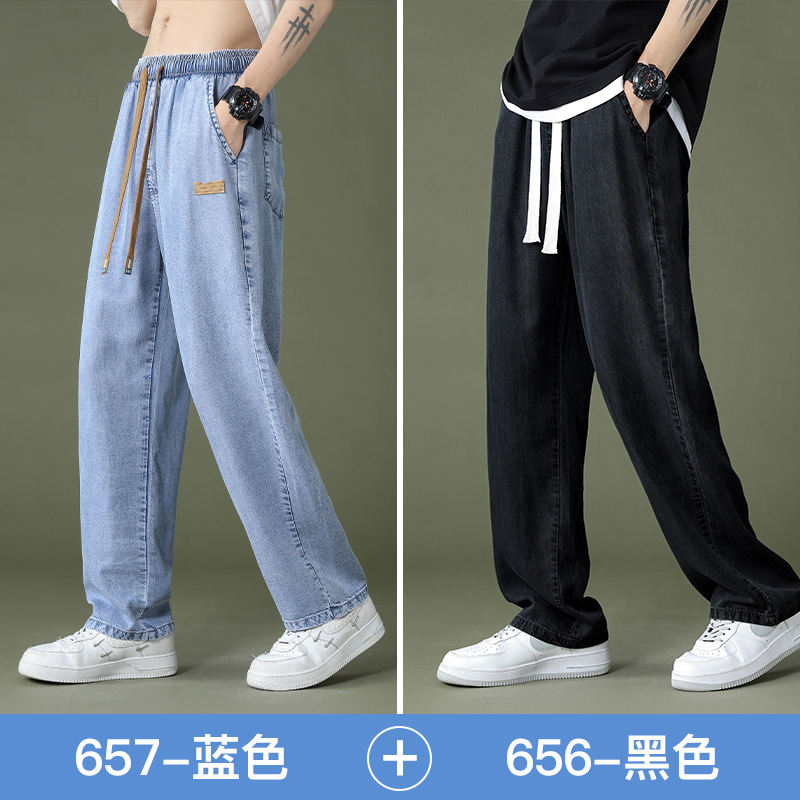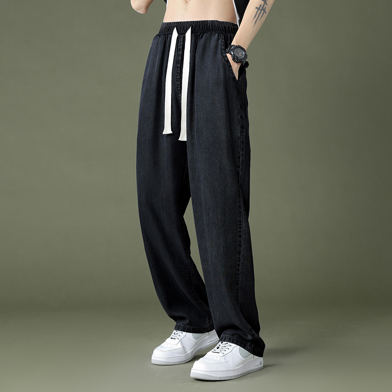 NASA 아이스 실크 블루 청바지 남성 여름 얇은 느슨한 스트레이트 와이드 레그 캐주얼 바지 미국 패션 브랜드 바지스토어 가기