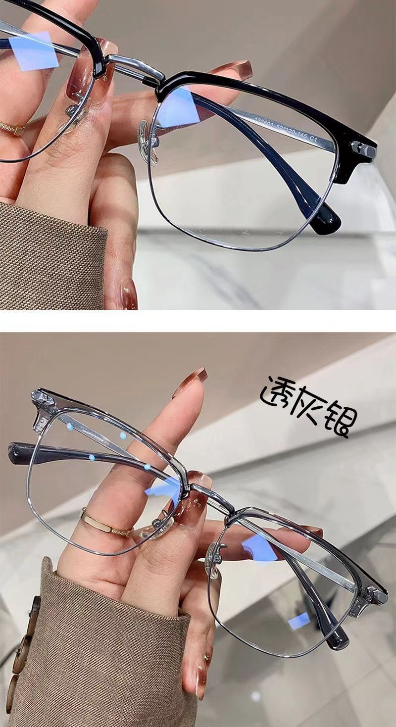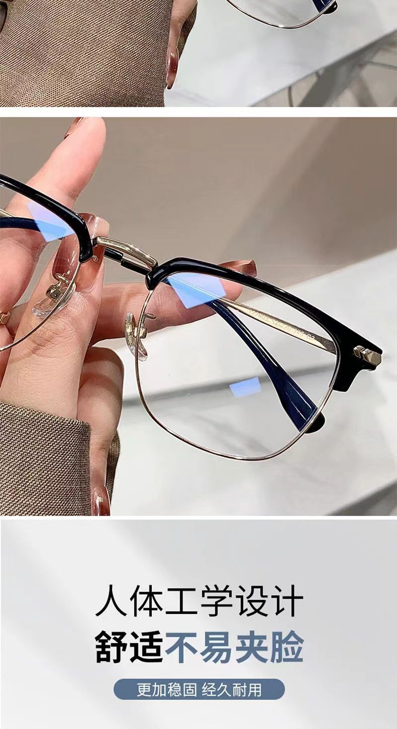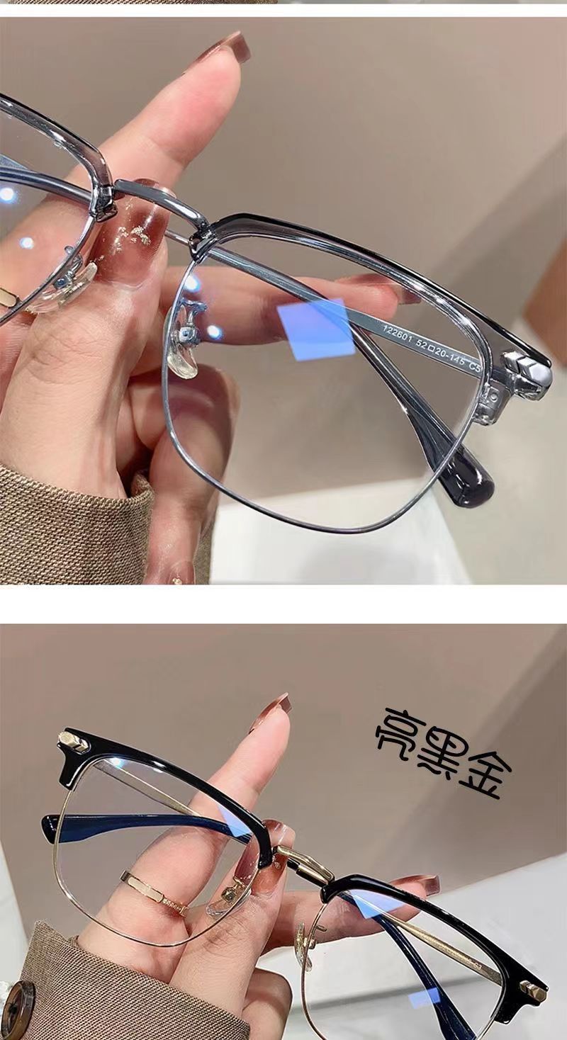 울트라 라이트 하프 프레임 패션 안티 블루 라이트 플랫 미러 남성과 여성의 조절 정도 근시 안경 프레임 장식 평면 안경 프레임스토어 가기