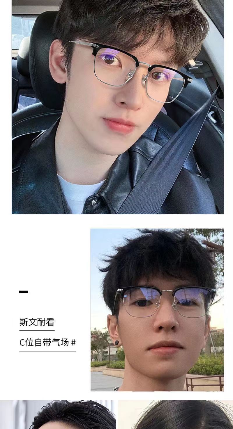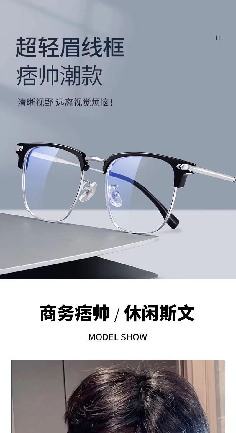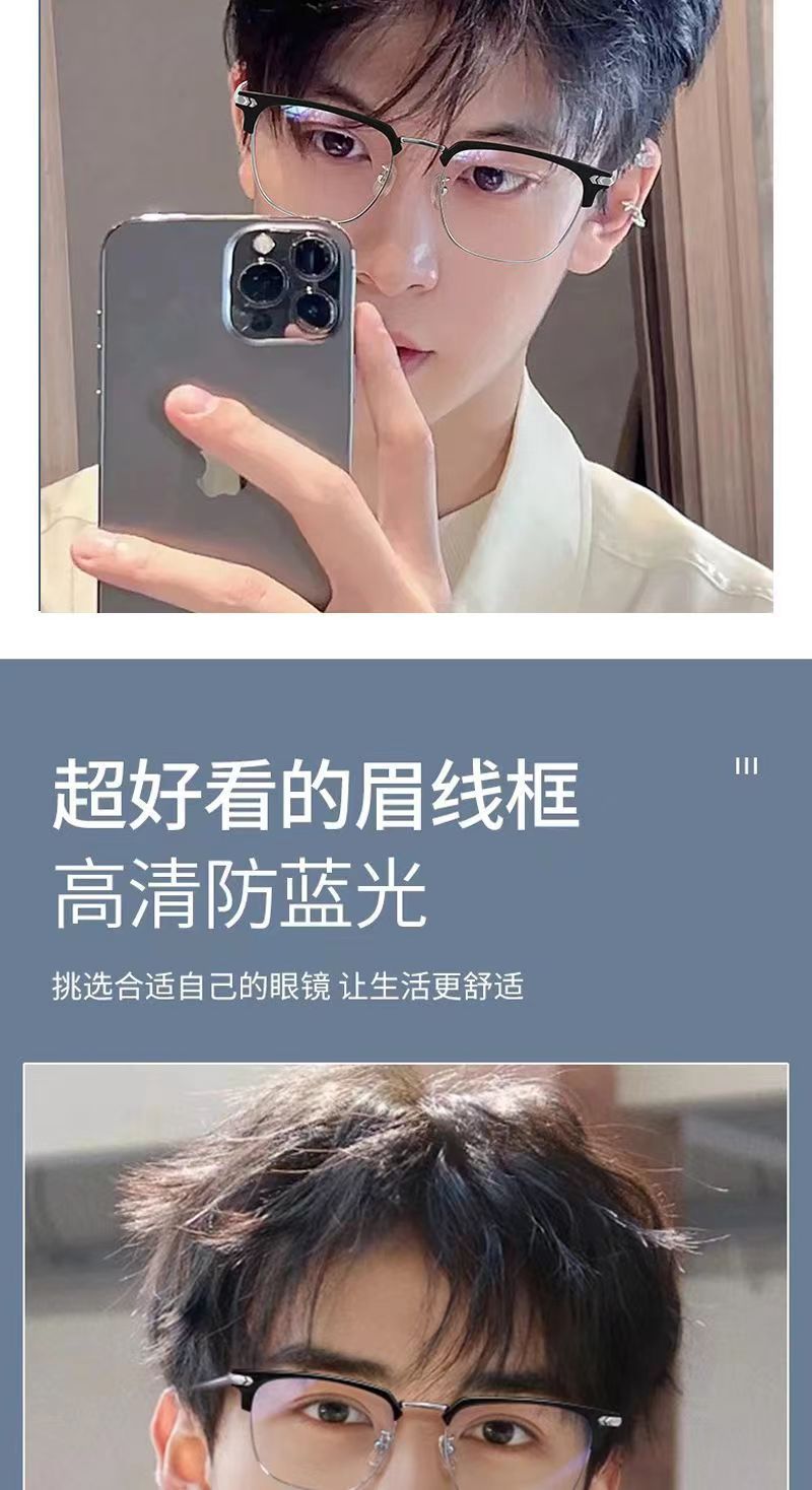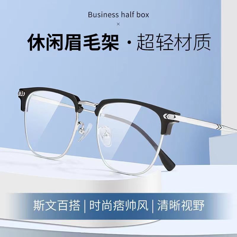 울트라 라이트 하프 프레임 패션 안티 블루 라이트 플랫 미러 남성과 여성의 조절 정도 근시 안경 프레임 장식 평면 안경 프레임스토어 가기