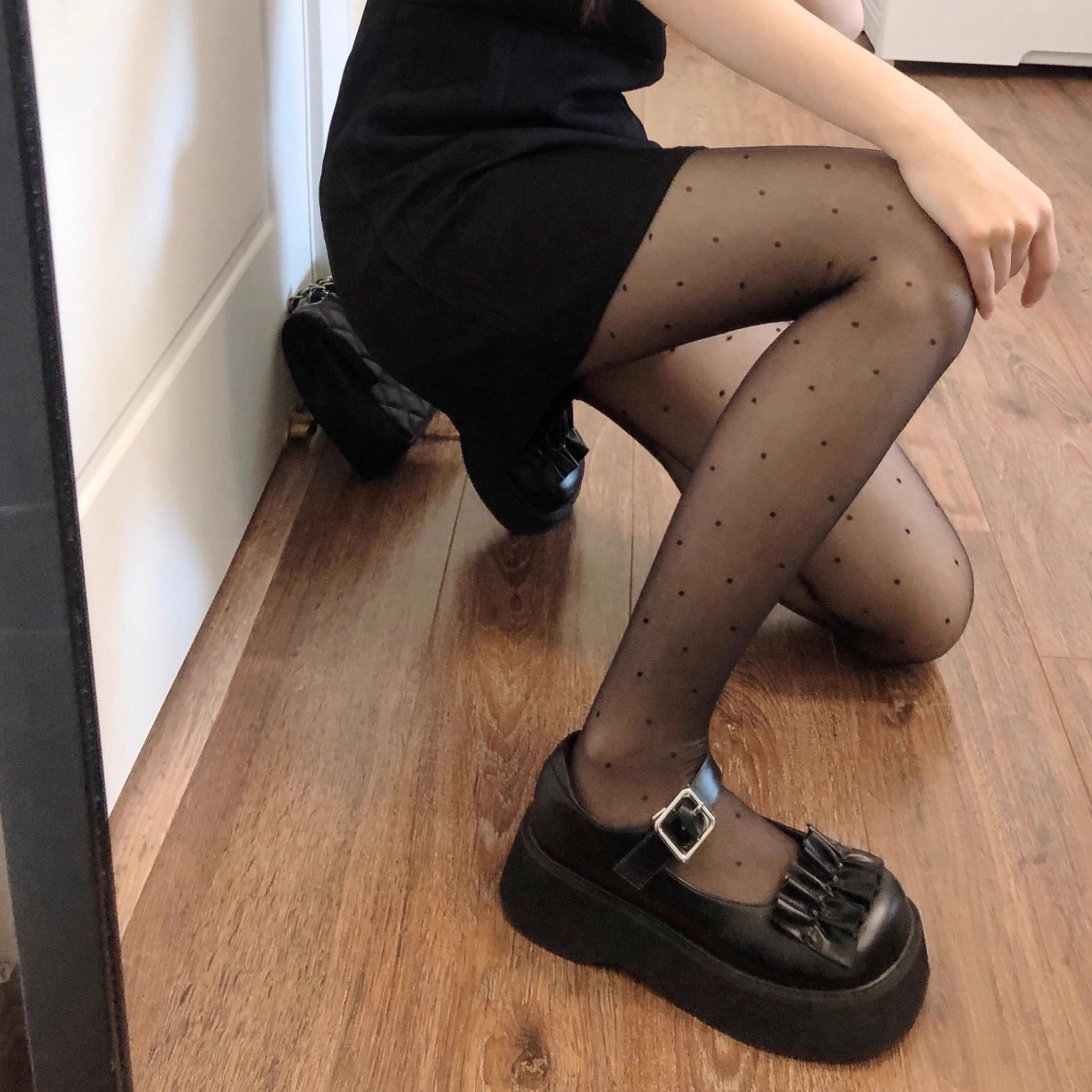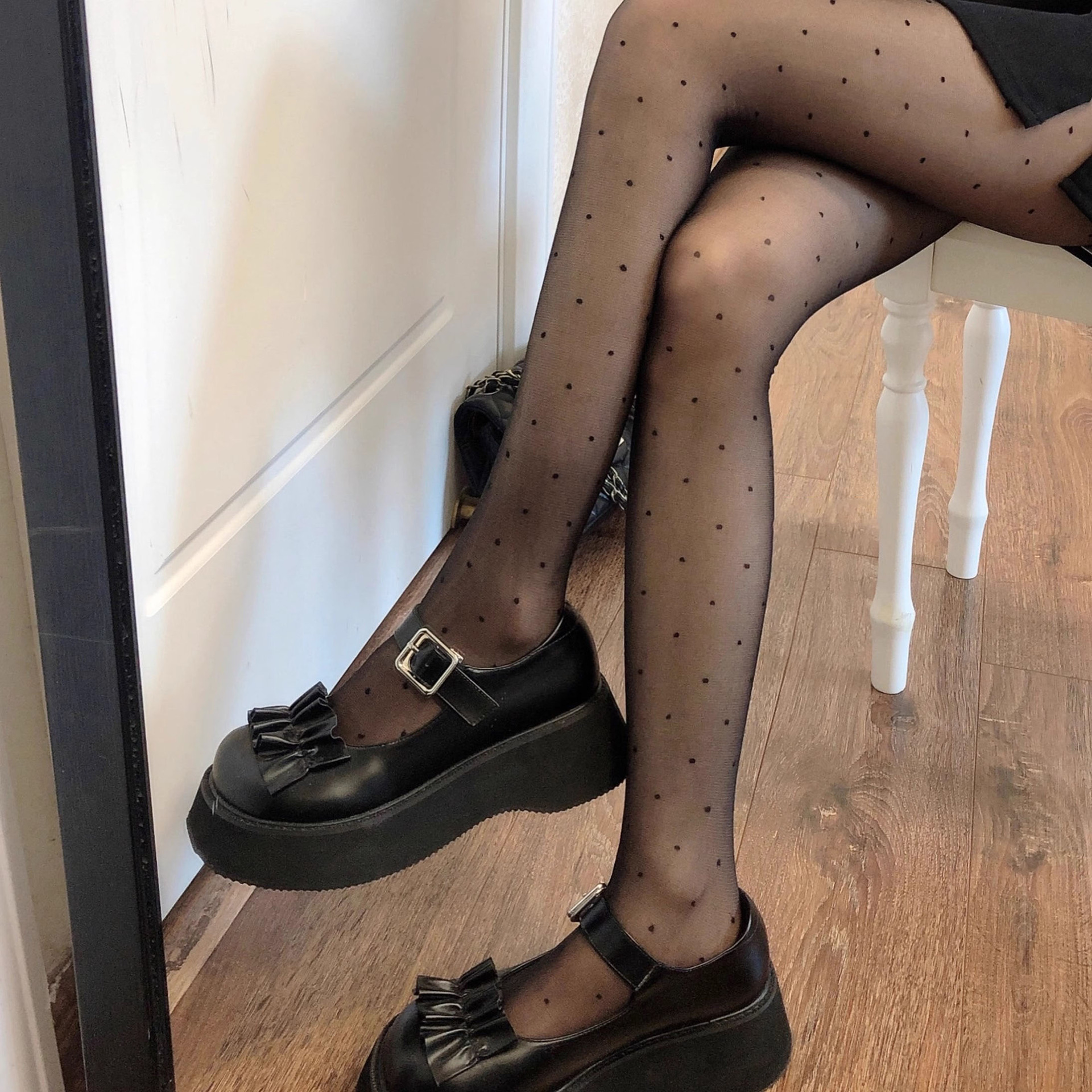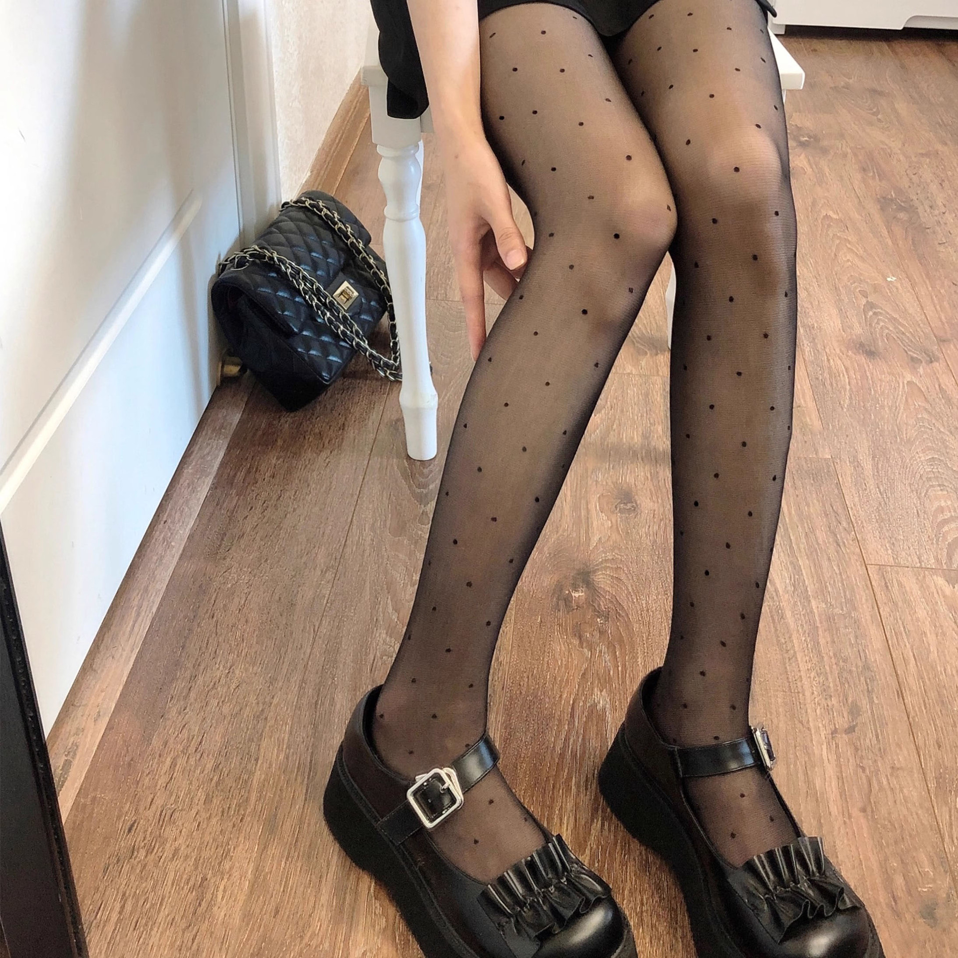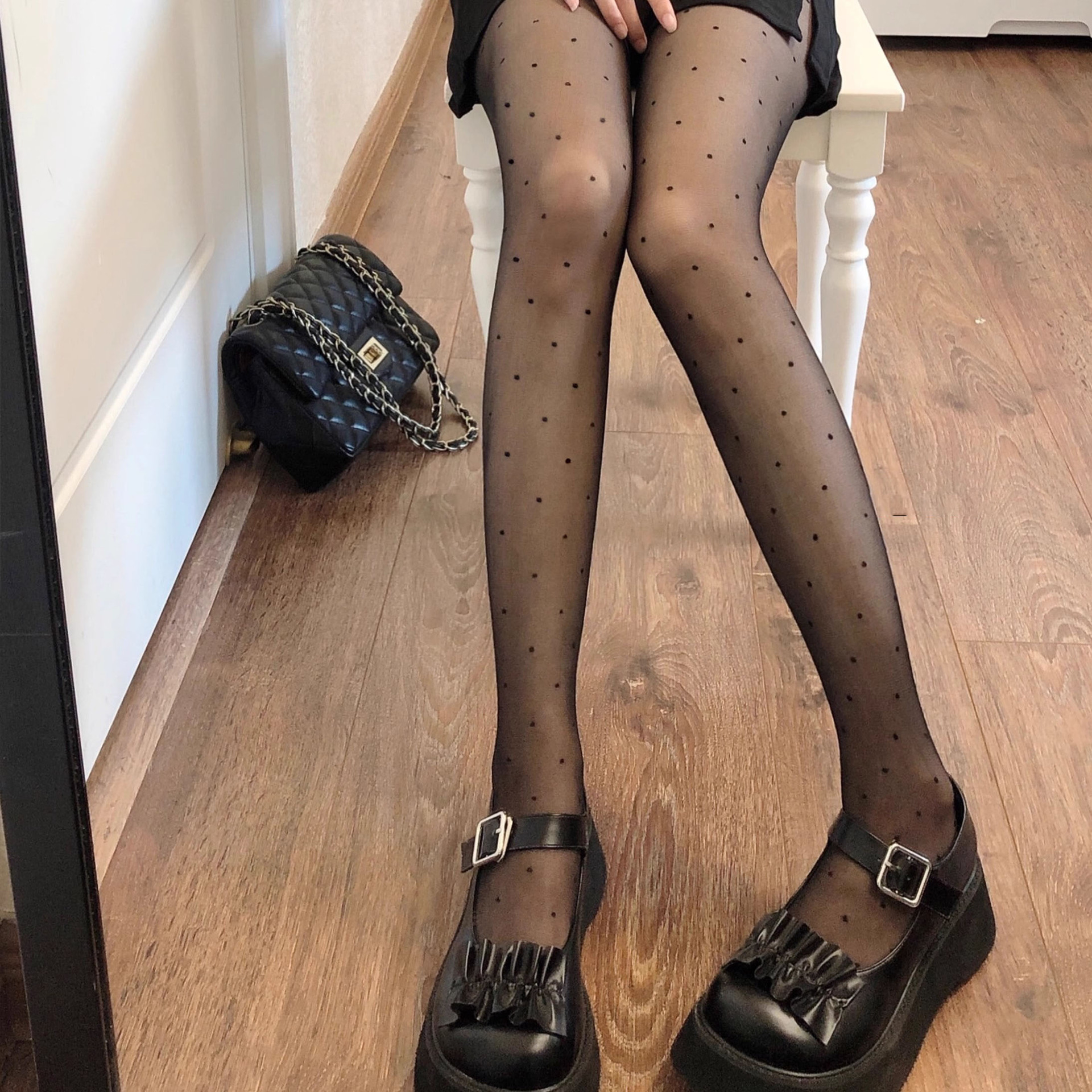 섹시한 JK 웨이브 도트 블랙 실크 스타킹 여성의 봄과 여름 얇은 보텀핑 팬티 스타킹 어린이 일본 화이트 실크 스타킹 순수한 욕망스토어 가기