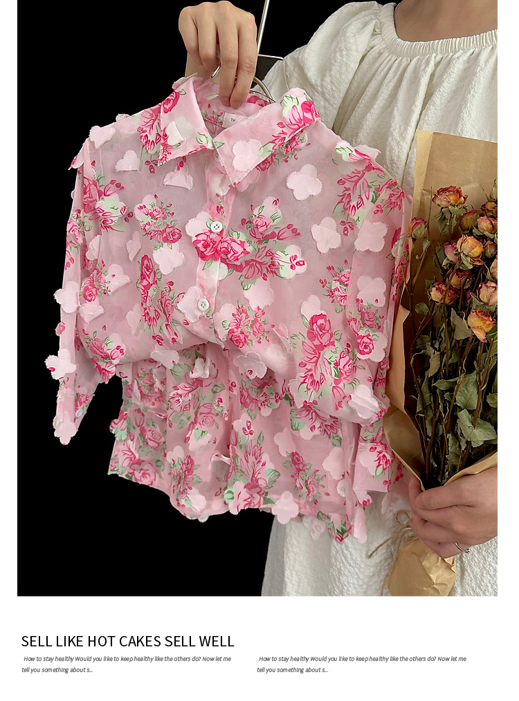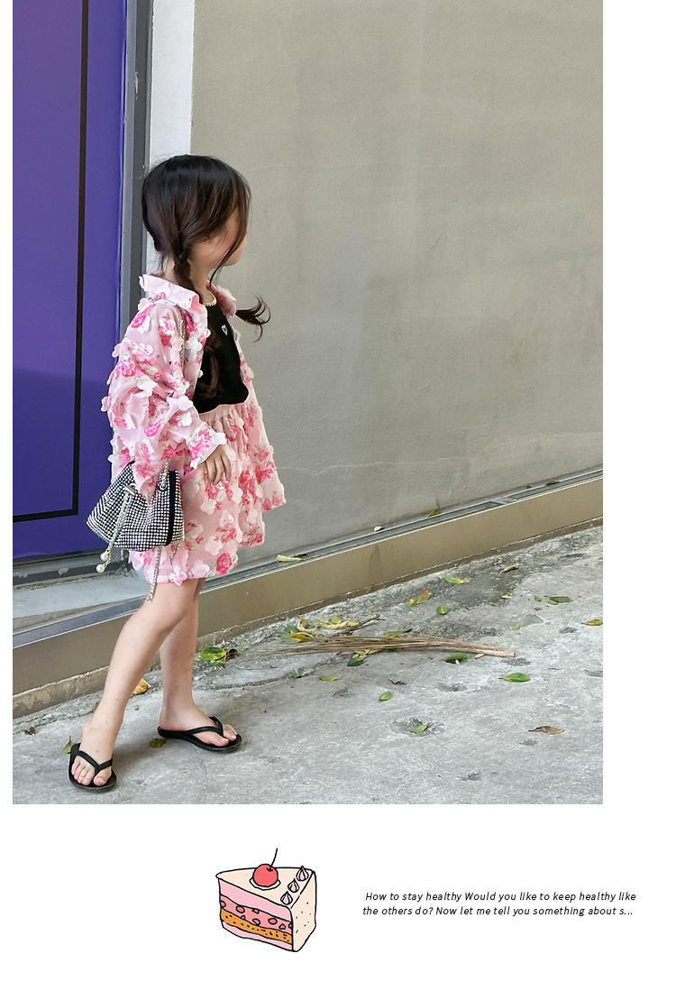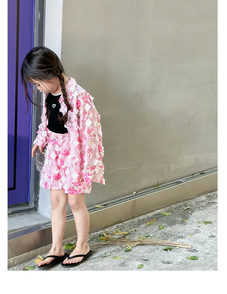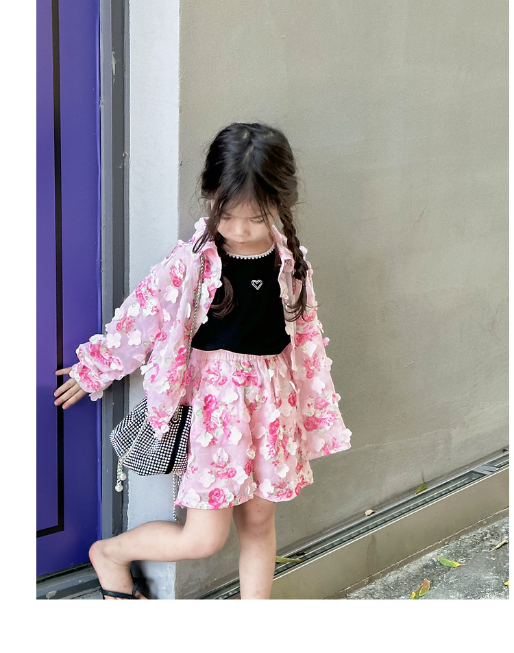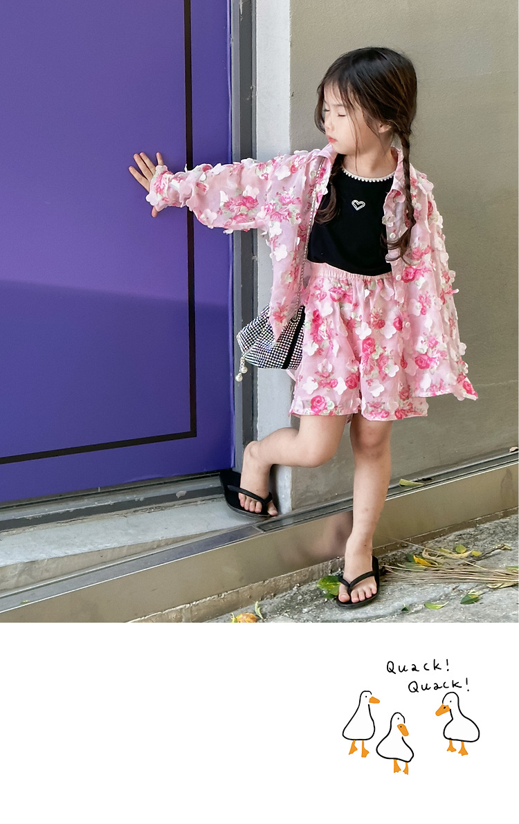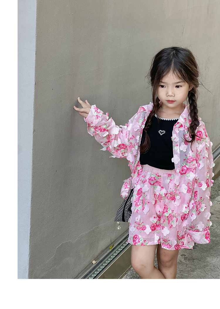 소녀 한국식 꽃 선 스크린 의류 세트 2024 여름 새 아기 긴 소매 셔츠 반바지 투피스 세트스토어 가기