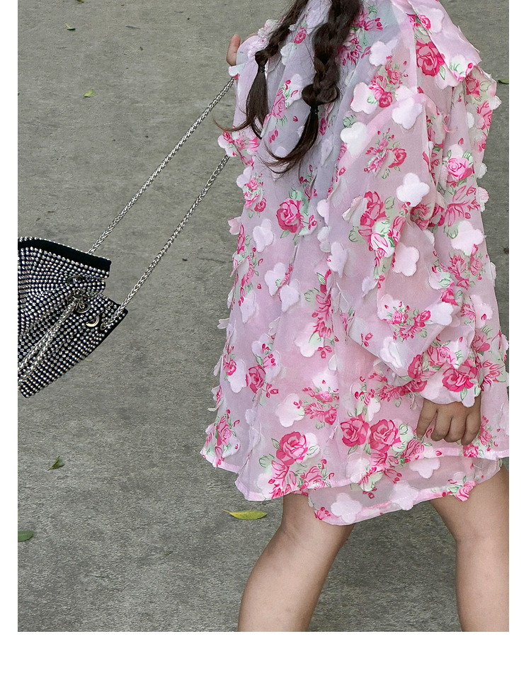 소녀 한국식 꽃 선 스크린 의류 세트 2024 여름 새 아기 긴 소매 셔츠 반바지 투피스 세트