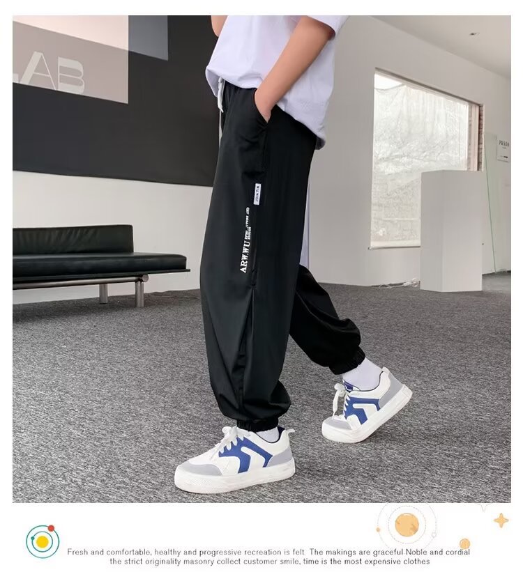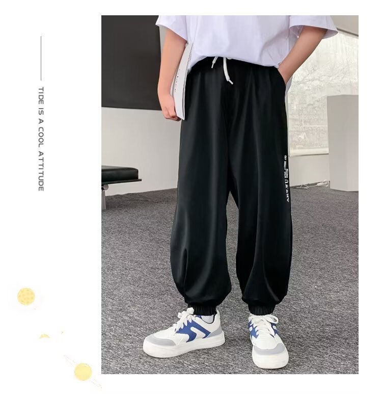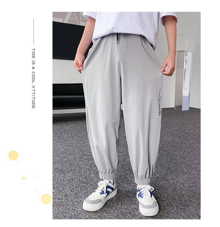 소년 아이스 실크 빠른 건조 바지 어린이 안티 모기 바지 큰 어린이 여름 얇은 바지 소년 캐주얼 느슨한 스포츠 바지