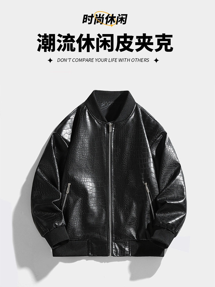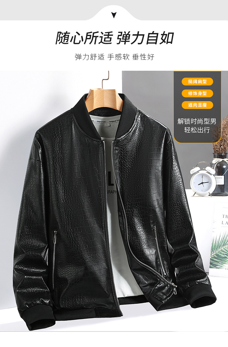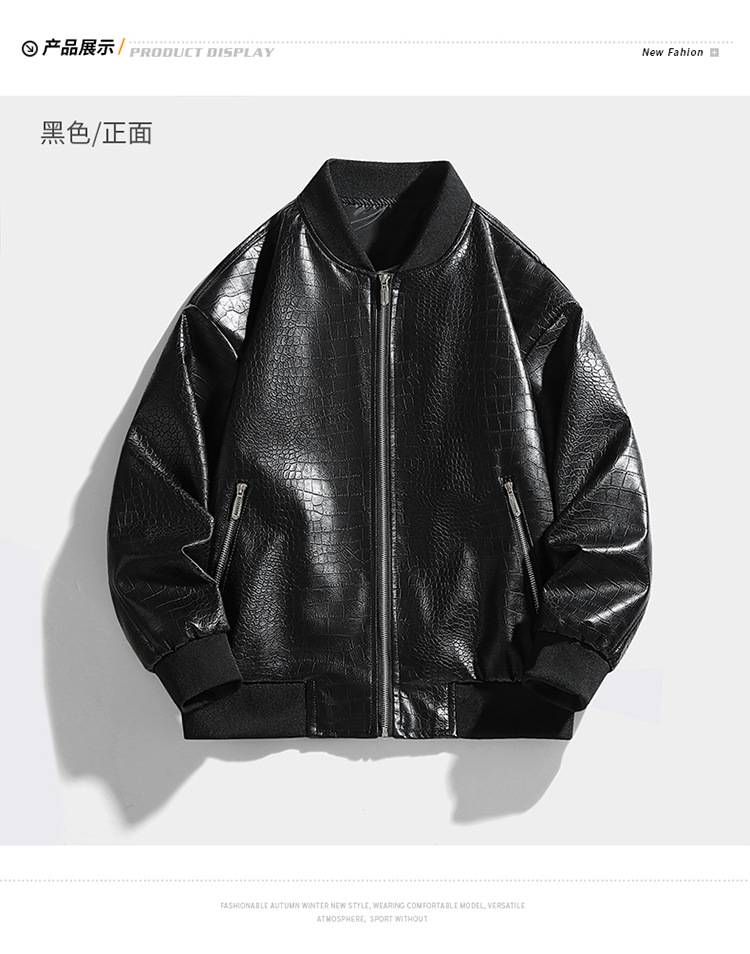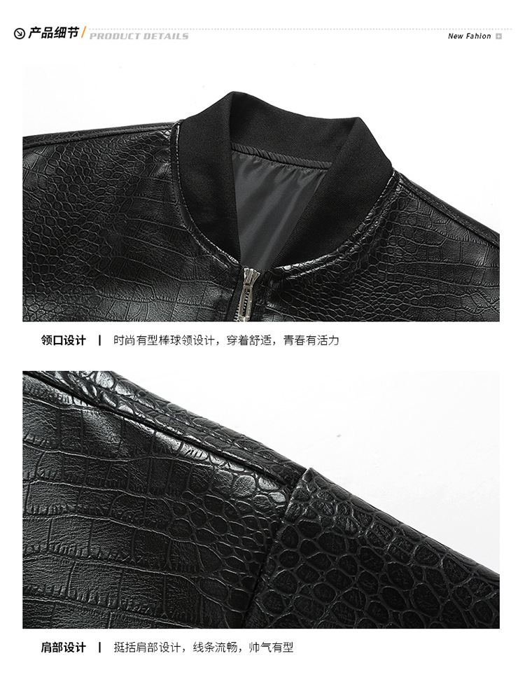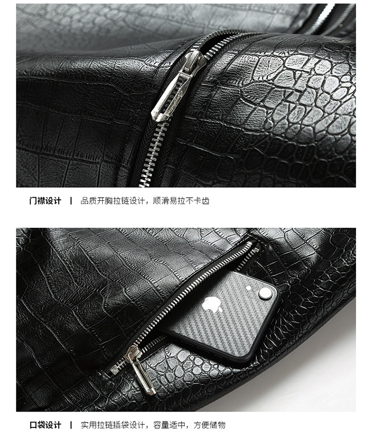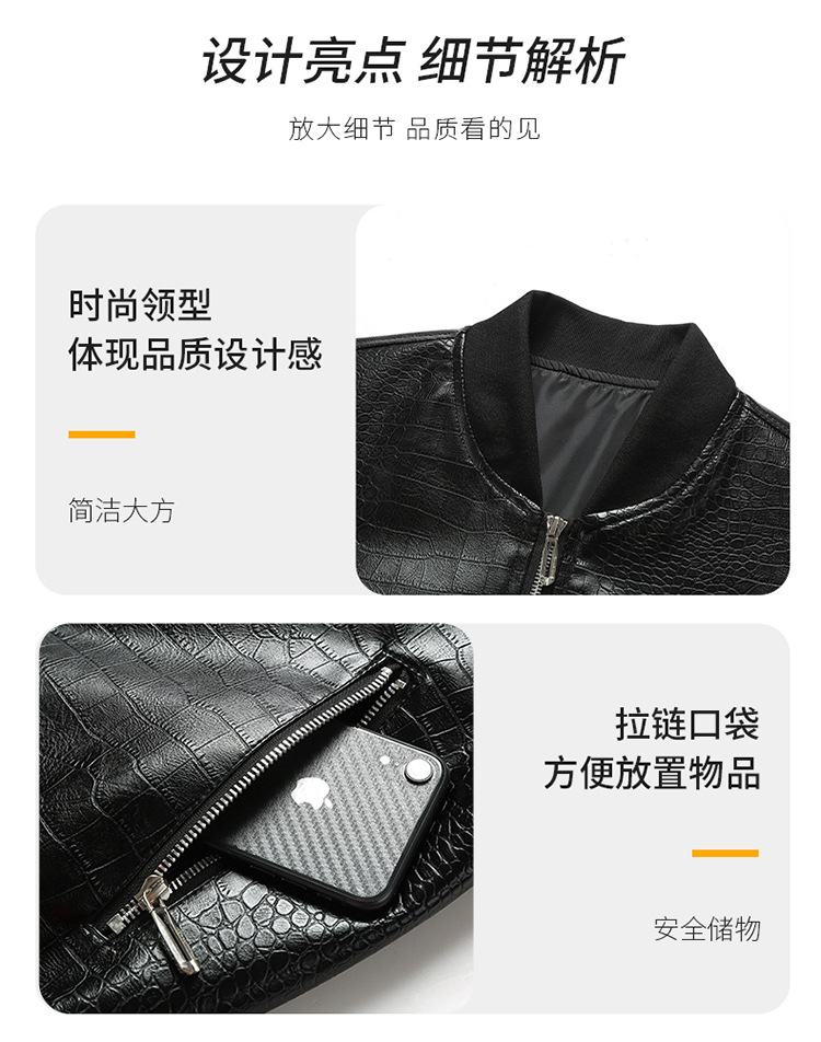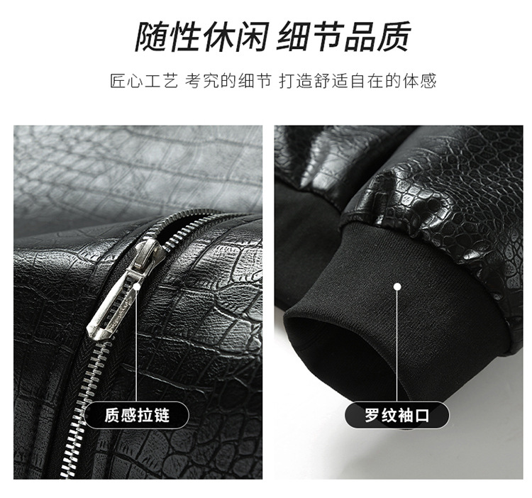 크로스 국경 2023 가을과 겨울 새로운 패션 캐주얼 유행 가죽 자켓 코트 남성 가죽 악어 패턴 가죽 코트 공장스토어 가기