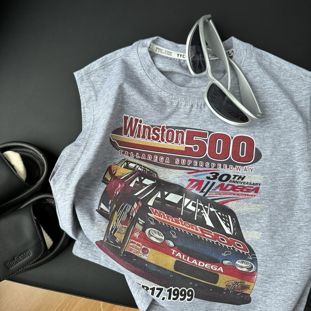 남녀 아동용 아메리칸 레트로 자동차 조끼 2025 여름 신상품 시원한 반팔 상의스토어 가기