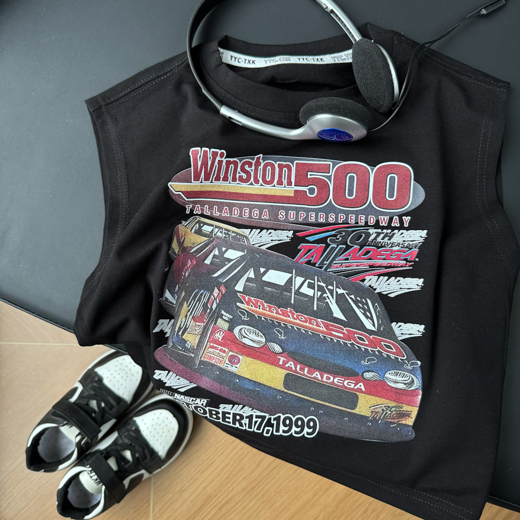 남녀 아동용 아메리칸 레트로 자동차 조끼 2025 여름 신상품 시원한 반팔 상의