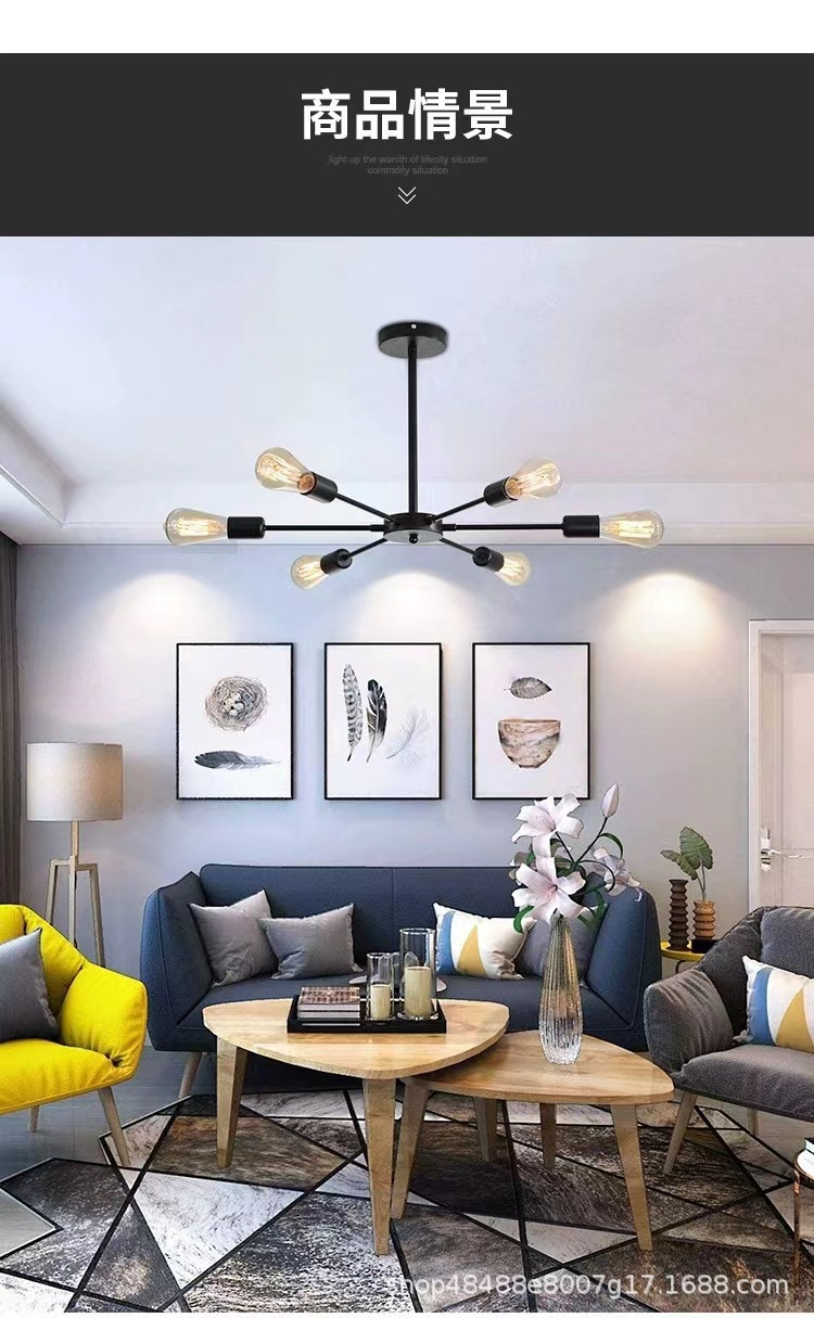 국경 간 미국의 멀티 헤드 샹들리에 북유럽 거실 램프 천장 램프 현대 간단한 침실 조명 레스토랑 아트 램프스토어 가기