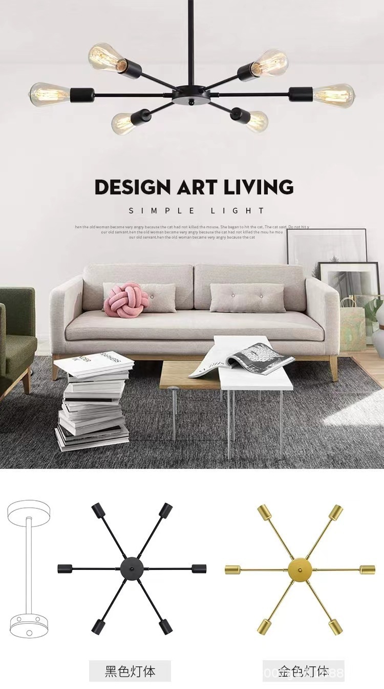 국경 간 미국의 멀티 헤드 샹들리에 북유럽 거실 램프 천장 램프 현대 간단한 침실 조명 레스토랑 아트 램프