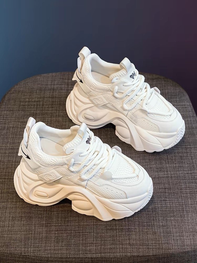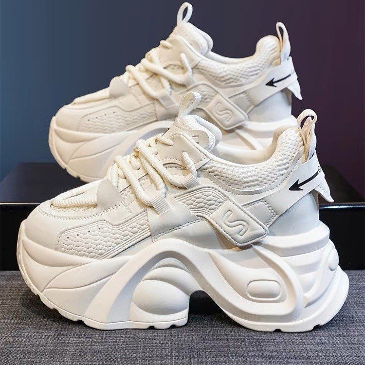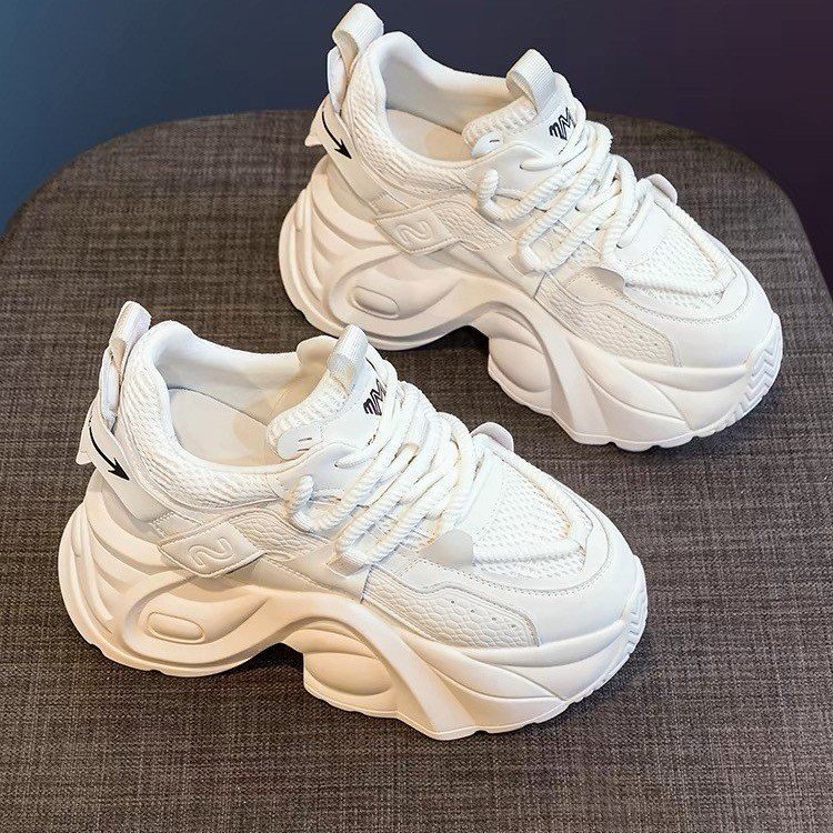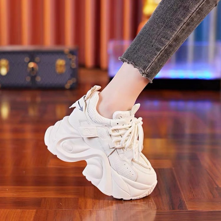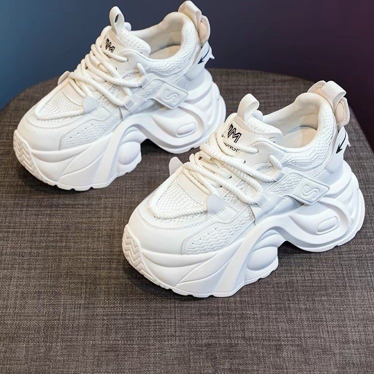 두꺼운 밑창 증가 아빠 신발 여성의 2024 여름 새로운 메쉬 캐주얼 스포츠 신발 폭발 작은 흰색 여성 신발스토어 가기