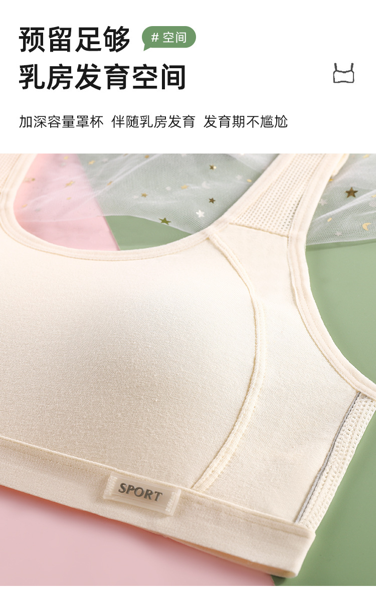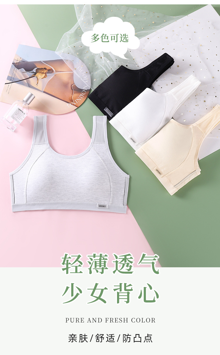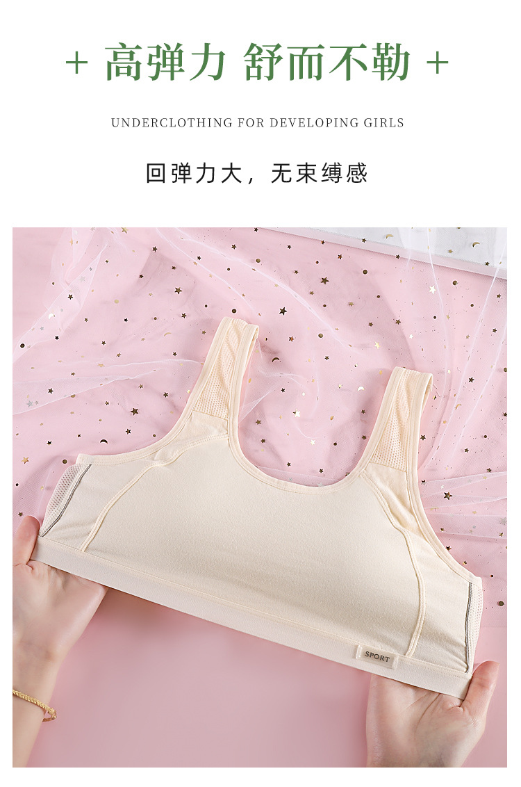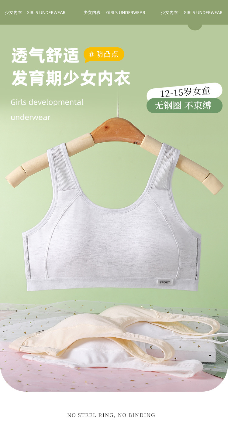 발달기 여아용 스포츠 조끼, 통기성이 뛰어나고 와이어가 없는 초등학생, 중학생 및 고등학생을 위한 노출 방지 가슴 랩 속옷