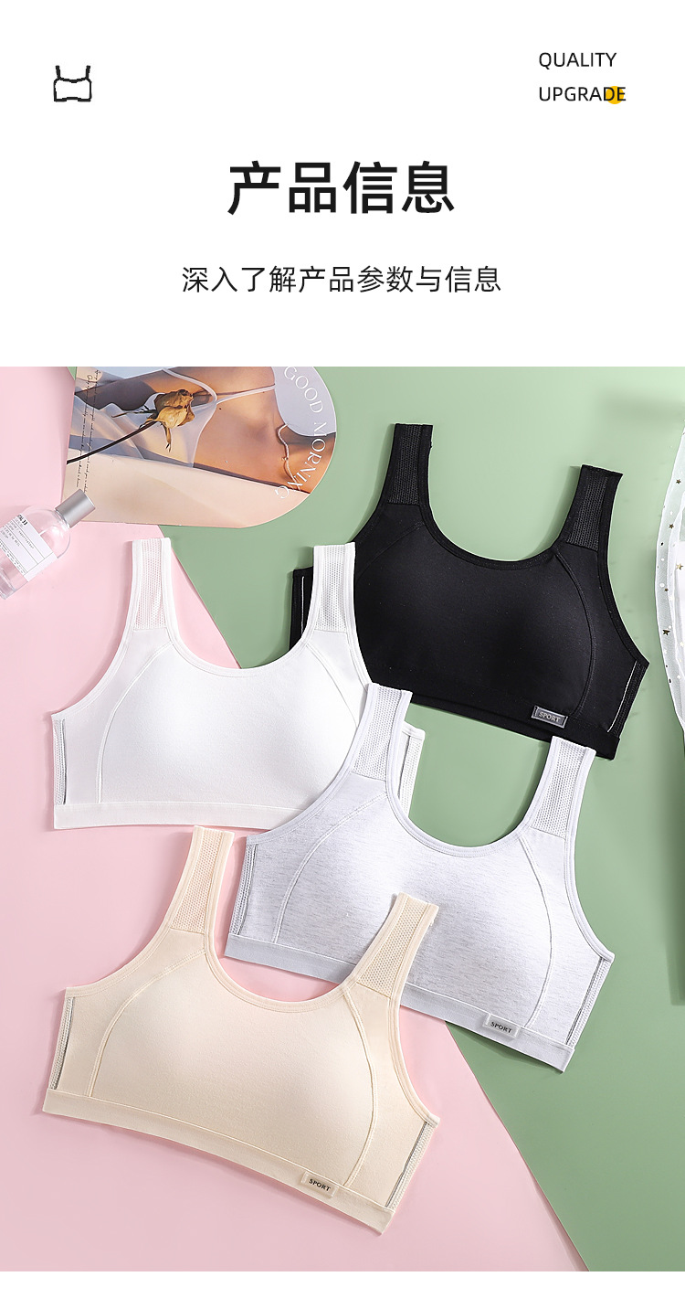 발달기 여아용 스포츠 조끼, 통기성이 뛰어나고 와이어가 없는 초등학생, 중학생 및 고등학생을 위한 노출 방지 가슴 랩 속옷스토어 가기