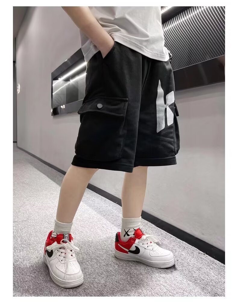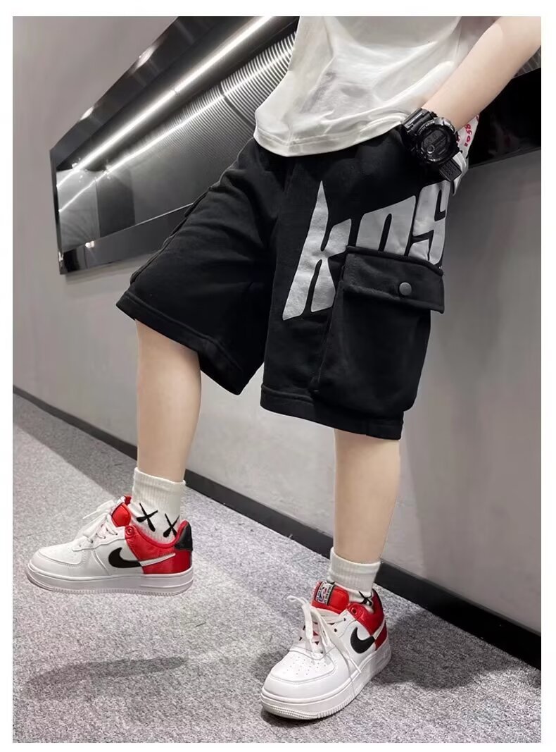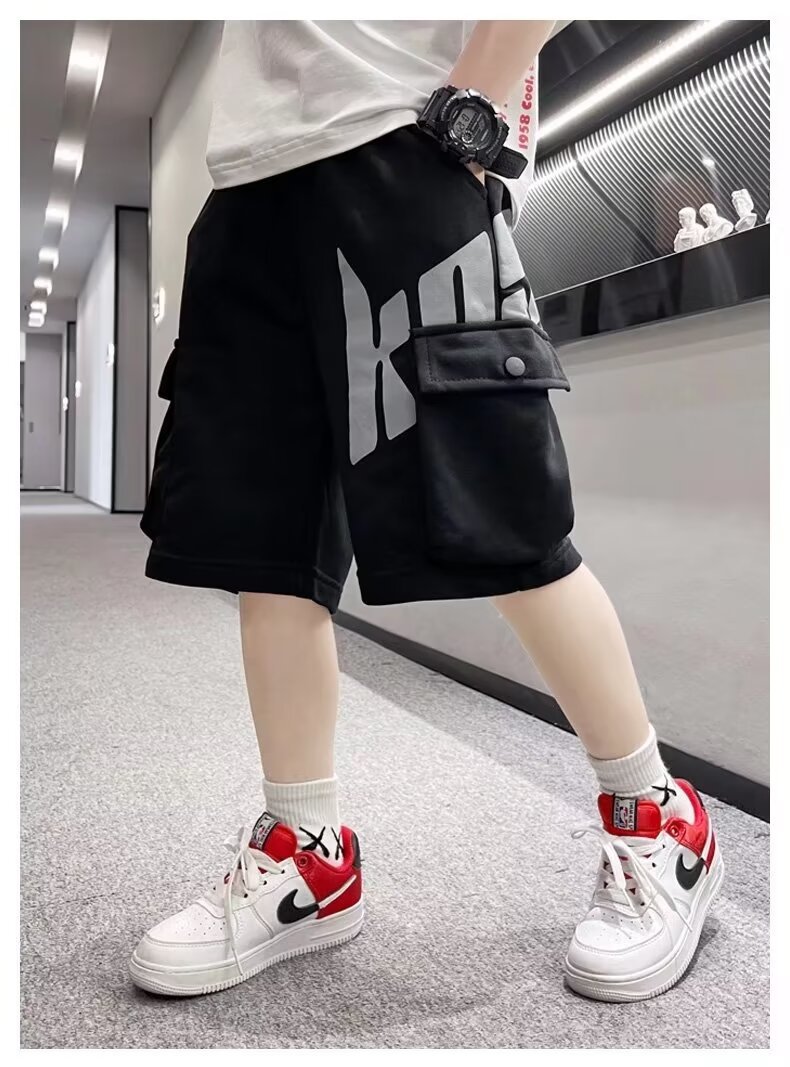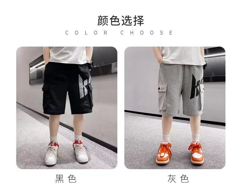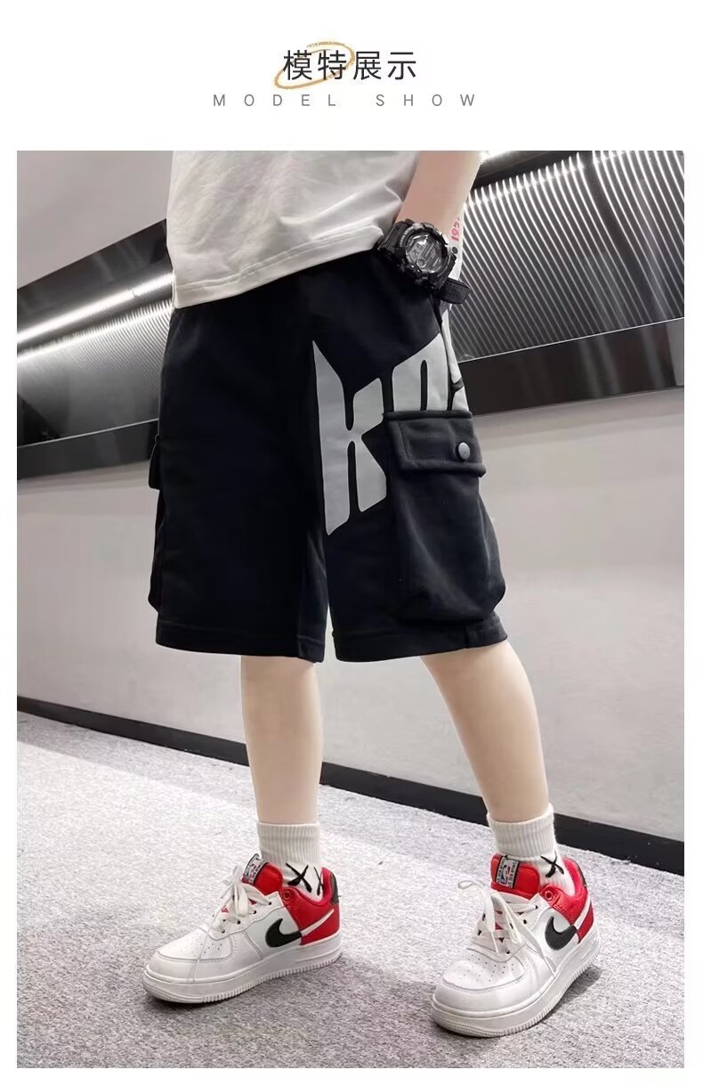 소년 2024 새 반바지 여름 바지 검은 바지 소년 여름 착용 어린이 작업복 바지 얇은스토어 가기