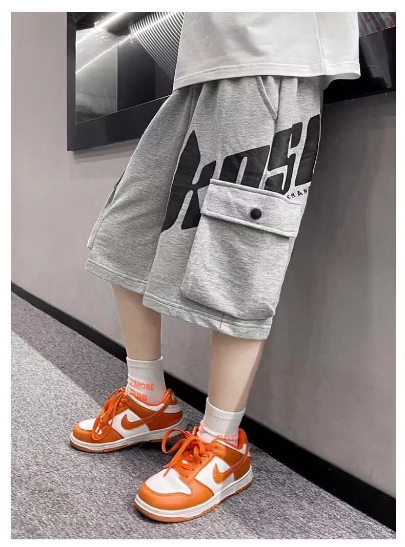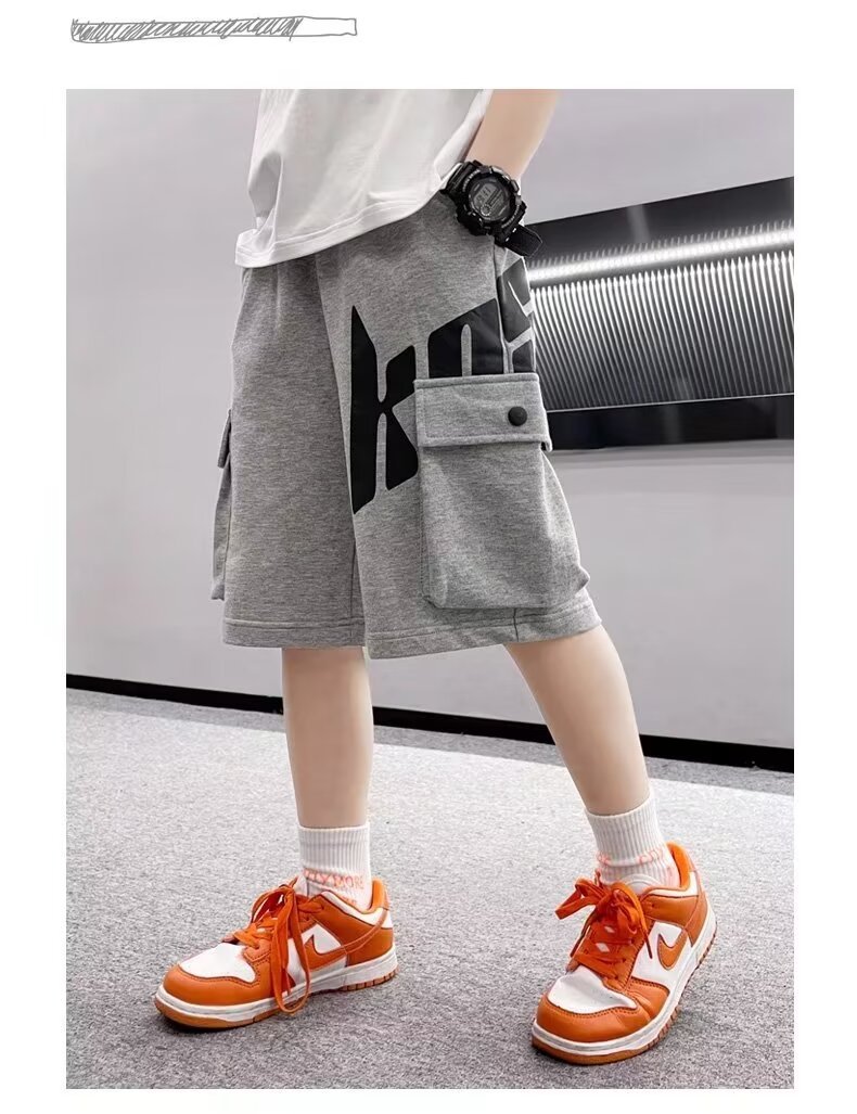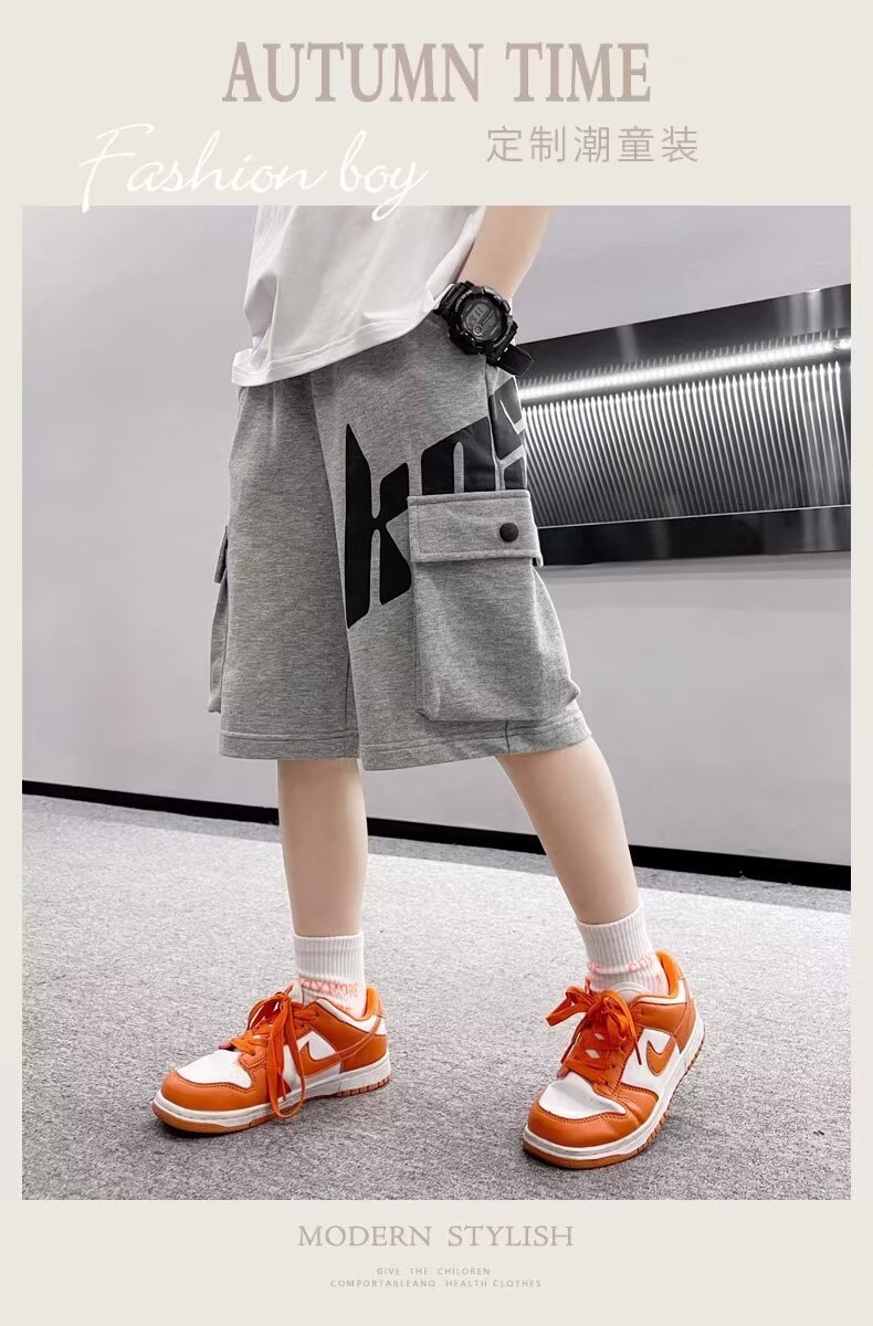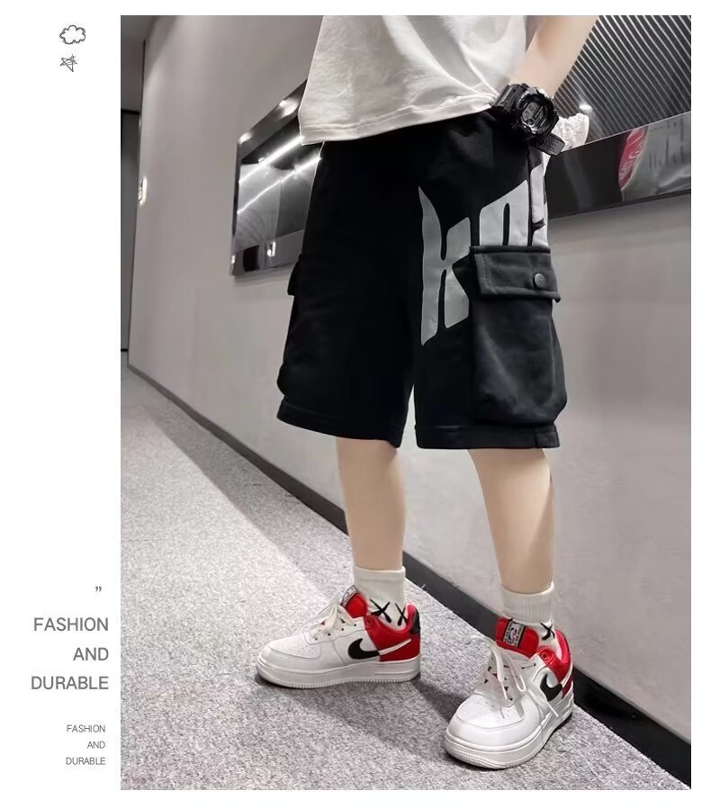 소년 2024 새 반바지 여름 바지 검은 바지 소년 여름 착용 어린이 작업복 바지 얇은스토어 가기