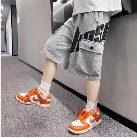 소년 2024 새 반바지 여름 바지 검은 바지 소년 여름 착용 어린이 작업복 바지 얇은