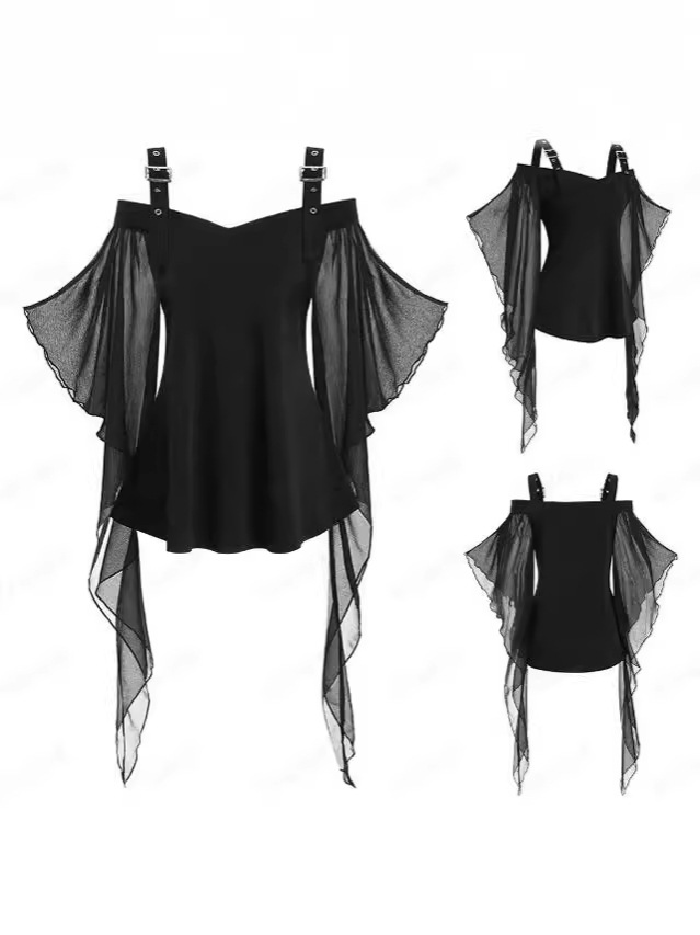 국경 간 유럽과 미국 여성의 할로윈 슬링 쉬폰 슬리브 칼라 티셔츠 탑스토어 가기