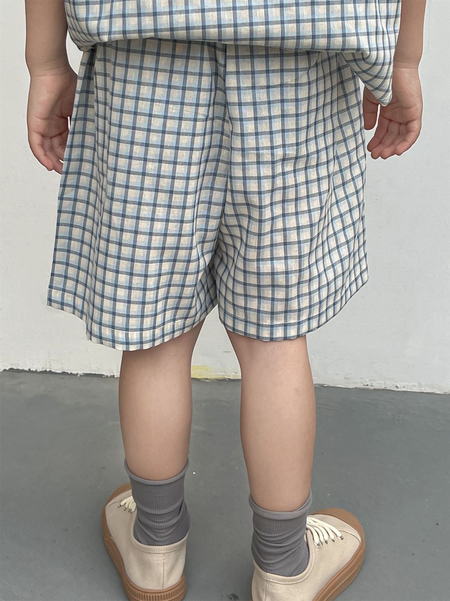 남매 의류 ~ 남학생 여름 문학 스타일 블루 지 민소매 원피스 소년 반팔 짧은 바지 커버 언니와 형제의 옷