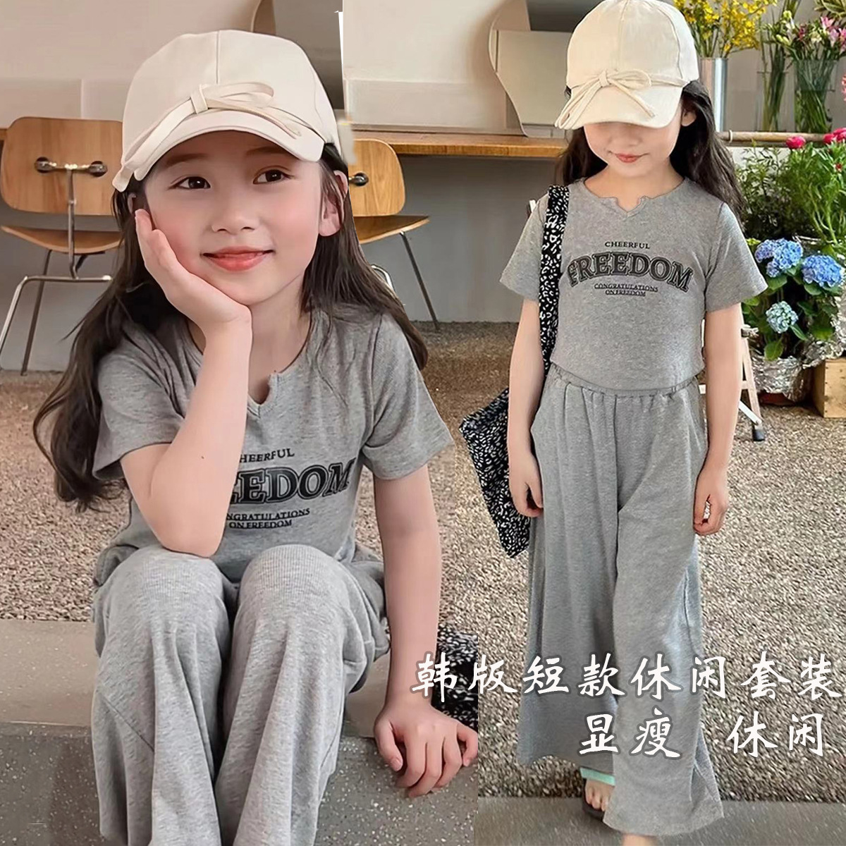소녀 여름 반팔 세트 새로운 어린이 캐주얼 바지 티셔츠 투피스 세트 큰 어린이 스포츠 패션 여름 원피스스토어 가기