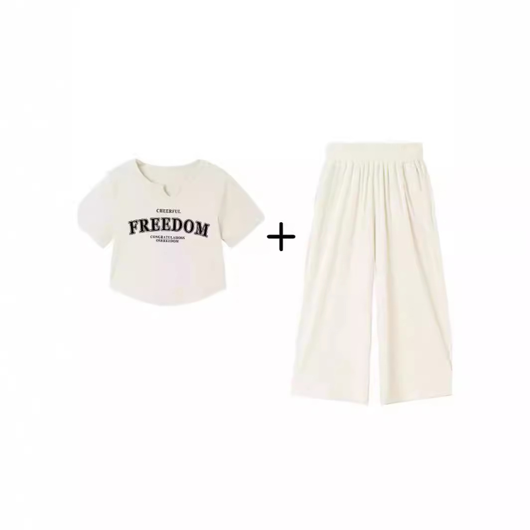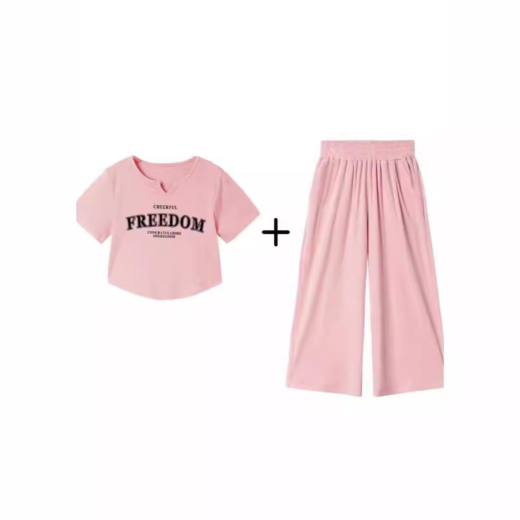 소녀 여름 반팔 세트 새로운 어린이 캐주얼 바지 티셔츠 투피스 세트 큰 어린이 스포츠 패션 여름 원피스