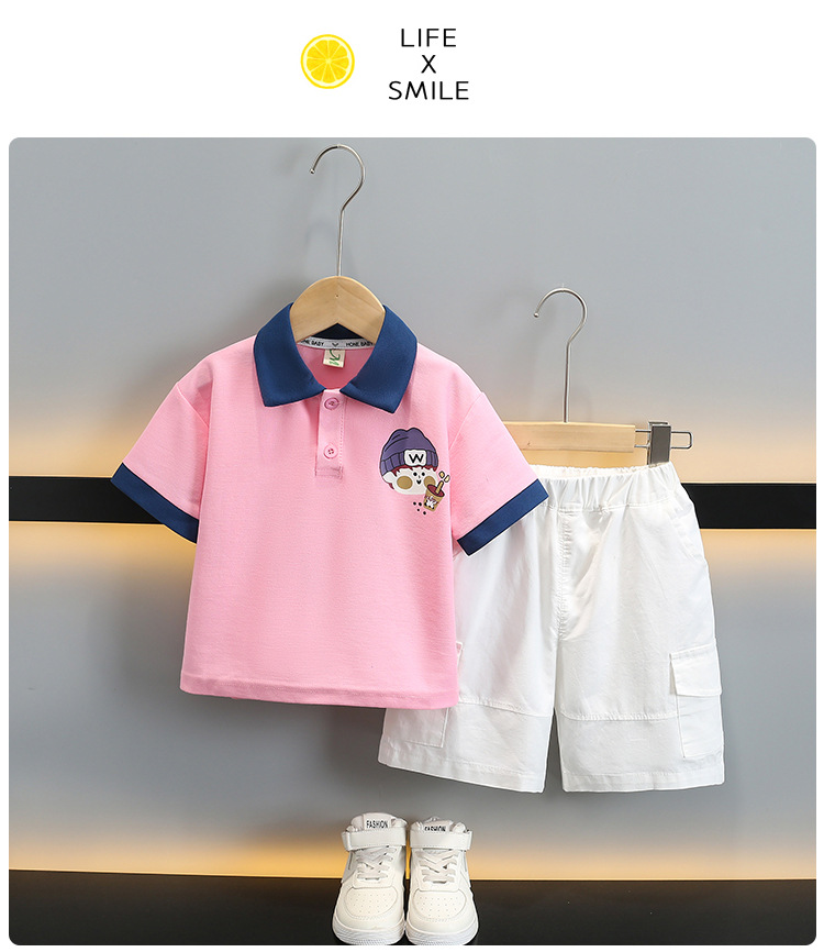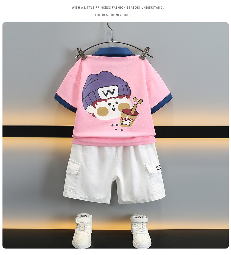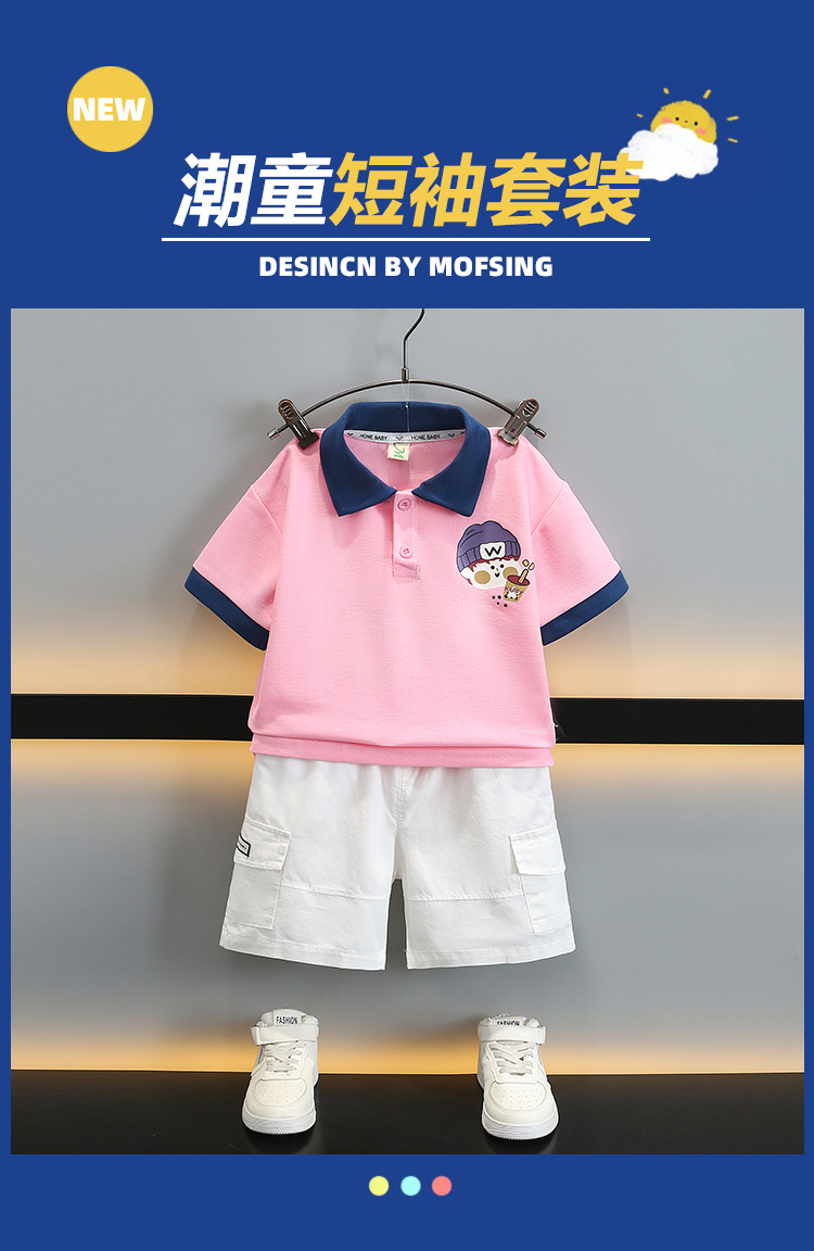 소년 만화 인쇄 세트 여름 서양식 아기의 반팔 폴로 셔츠 어린이 여름 도파민 투피스 유행 세트스토어 가기