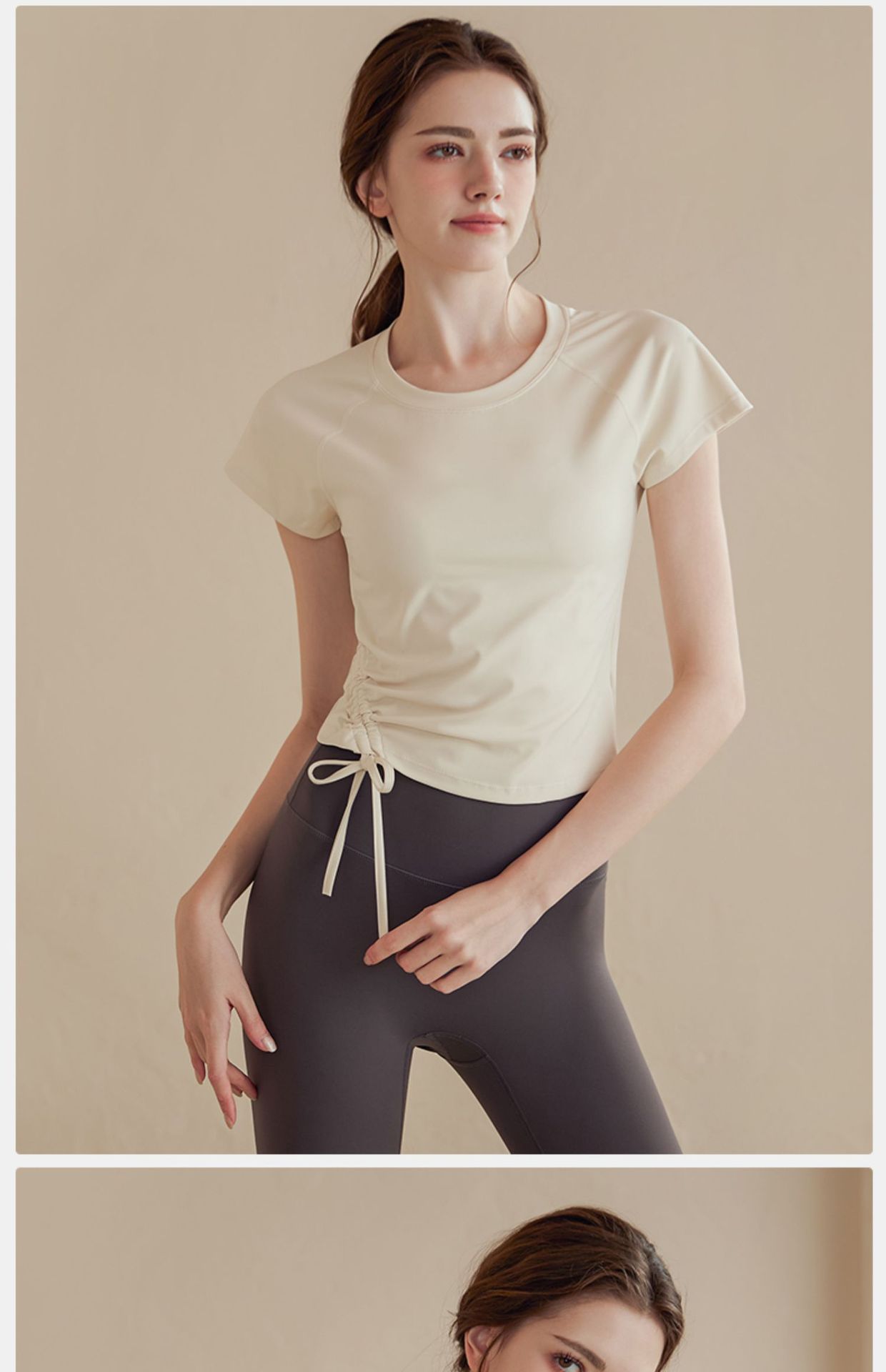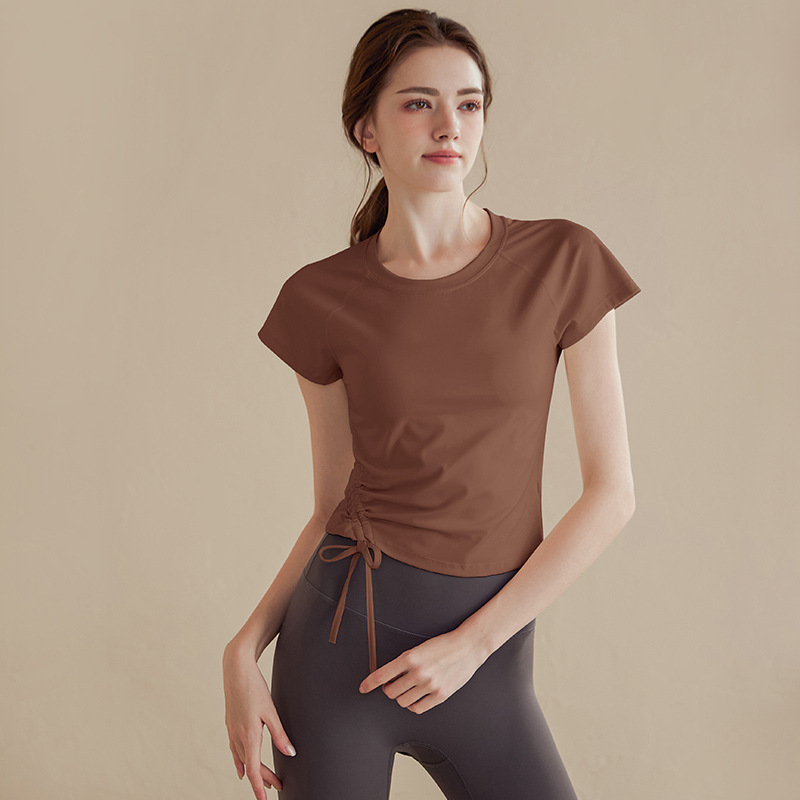 하이 엔드 요가 세트 여성 반팔 타이트 슬림 스포츠 탑 러닝 필라테스 훈련 피트니스 세트 여름스토어 가기