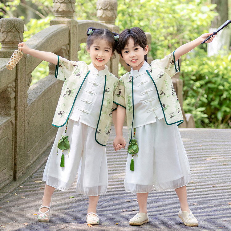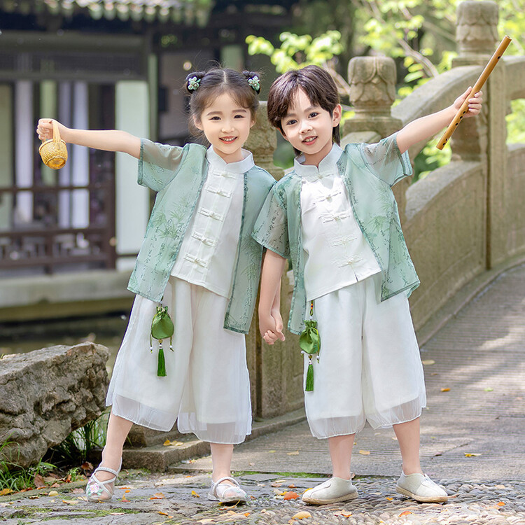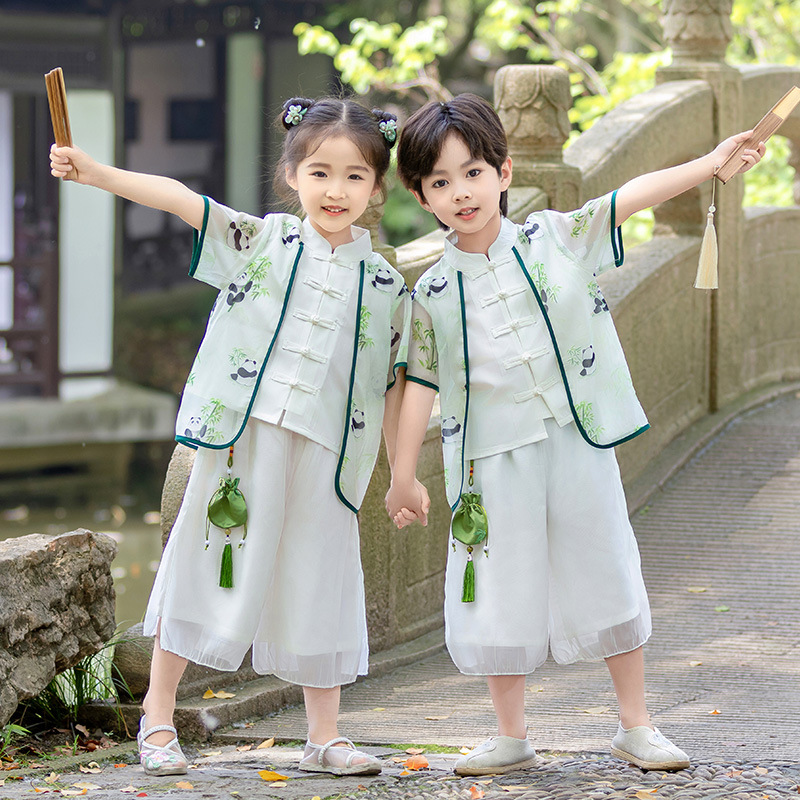 소년 소녀 공연 옷 2024 새로운 스타일 작은 소년 유치원 중국 스타일 고대 옷 한푸 아기 Guoxue 탕 세트 얇은스토어 가기