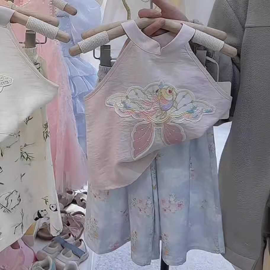 소녀 여름 세트 2025 새로운 도착 소녀 서양식 티셔츠 어린이 모기 방지 바지 발목 길이 바지 캐주얼 투피스 세트스토어 가기